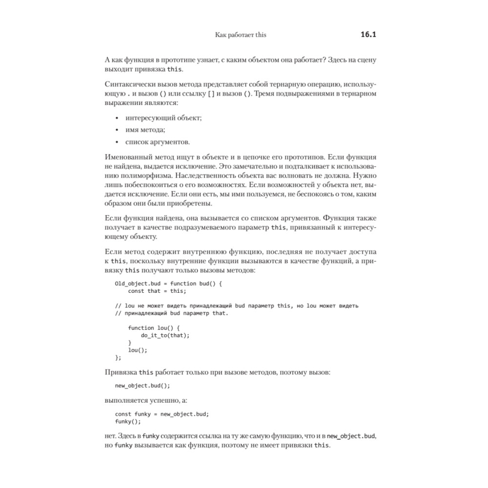 Автор начинает с основ: имен, чисел, логических значений, символов и другой базовой информации. Вы узнаете не только о проблемах и трудностях работы с типами в JavaScript, но и о том как их можно обойти. Затем вы приступите к знакомству со структурами данных и функции, чтобы разобраться с механизмами, лежащими в их основе, и научитесь использовать функции высшего порядка и объектно-ориентированный стиль программирования без классов.