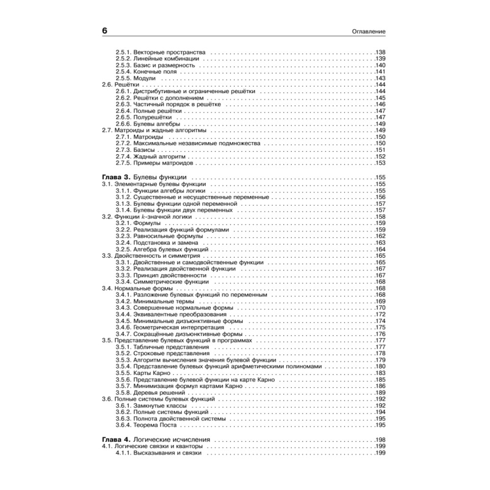 Книга имеет обширный справочный аппарат: указатель обозначений, детальный предметный указатель с переводом всех терминов на английский язык, развернутый библиографический список. Содержание учебника полностью соответствует Федеральному государственному образовательному стандарту высшего профессионального образования. Для студентов вузов, обучающихся по направлениям подготовки «Системный анализ и управление», «Прикладная математика и информатика», «Информатика и вычислительная техника», а также для всех желающих изучить дискретную математику.