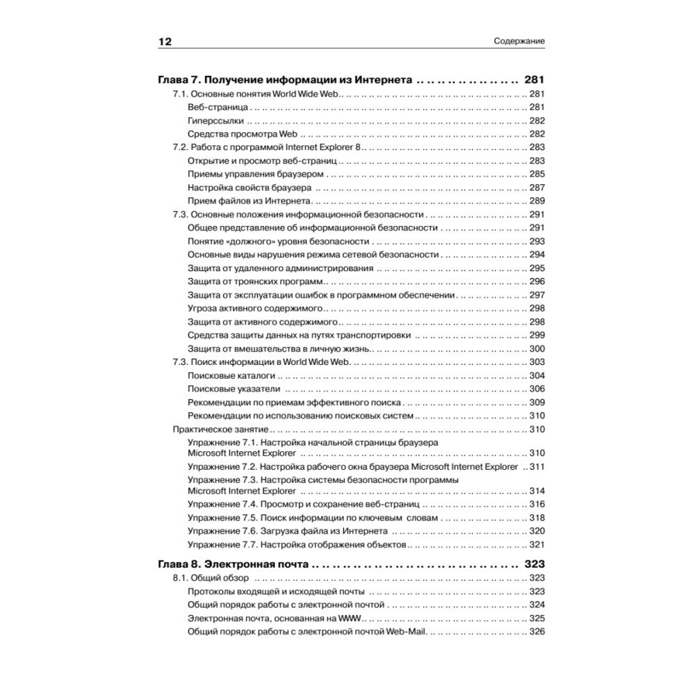 Четкое разделение теоретических и практических компонентов курса позволит преподавателям гибко использовать представленный материал с учетом особенностей конкретных учебных планов и программ, а также принятых форм и методов обучения. Второе издание учебника полностью обновлено в соответствии с современной ситуацией в области аппаратных и программных средств, в частности в книге рассмотрена работа в Microsoft Windows 7 и Office 2010.