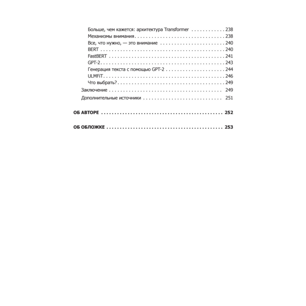 PyTorch – это фреймворк от Facebook с открытым исходным кодом. Узнайте, как использовать его для создания собственных нейронных сетей. Ян Пойнтер поможет разобраться, как настроить PyTorch в облачной среде, как создавать нейронные архитектуры, облегчающие работу с изображениями, звуком и текстом. Книга охватывает важнейшие концепции применения переноса обучения, модели отладки и использования библиотеки PyTorch. Вы научитесь: - Внедрять модели глубокого обучения в работу - Использовать PyTorch в масштабных проектах - Применять перенос обучения - Использовать PyTorch torchaudio и сверточные модели для классификации аудиоданных - Применять самые современные методы NLP, используя модель, обученную на «Википедии» - Выполнять отладку моделей PyTorch с TensorBoard и флеймграф - Развертывать приложения PyTorch в контейнерах «PyTorch –– это одна из самых быстрорастущих библиотек глубокого обучения, соперничающая с гигантом Google — TensorFlow — практически на равных. Книга обязательно должна стать настольной для каждого программиста и разработчика алгоритмов машинного обучения, которые хотят использовать PyTorch в своей работе». Анкур Патель, вице-президент направления Data Science в компании 7Park Data Ян Пойнтер (Ian Pointer) — дата-инженер – создает решения машинного обучения для клиентов из списка Fortune 100. В настоящее время работает в Lucidworks, где занимается разработкой NLP-приложений и проектированием.