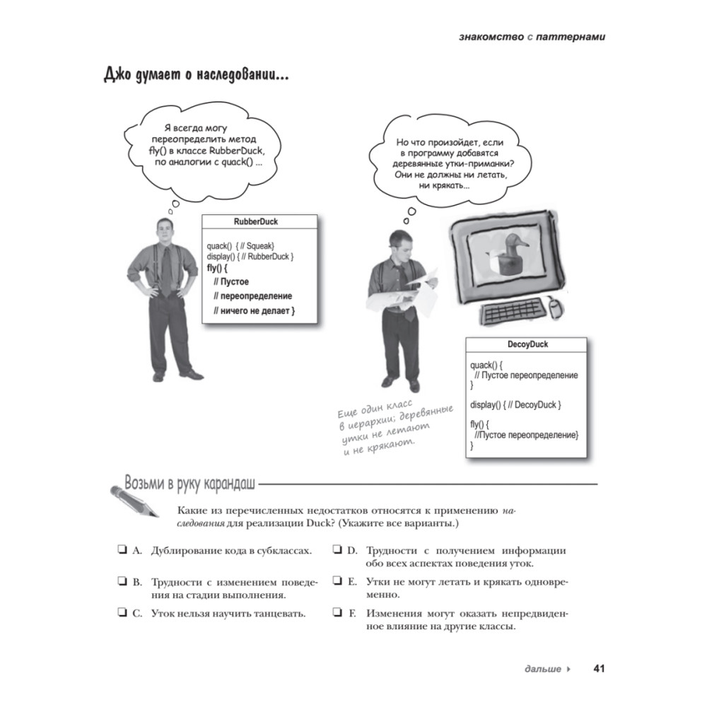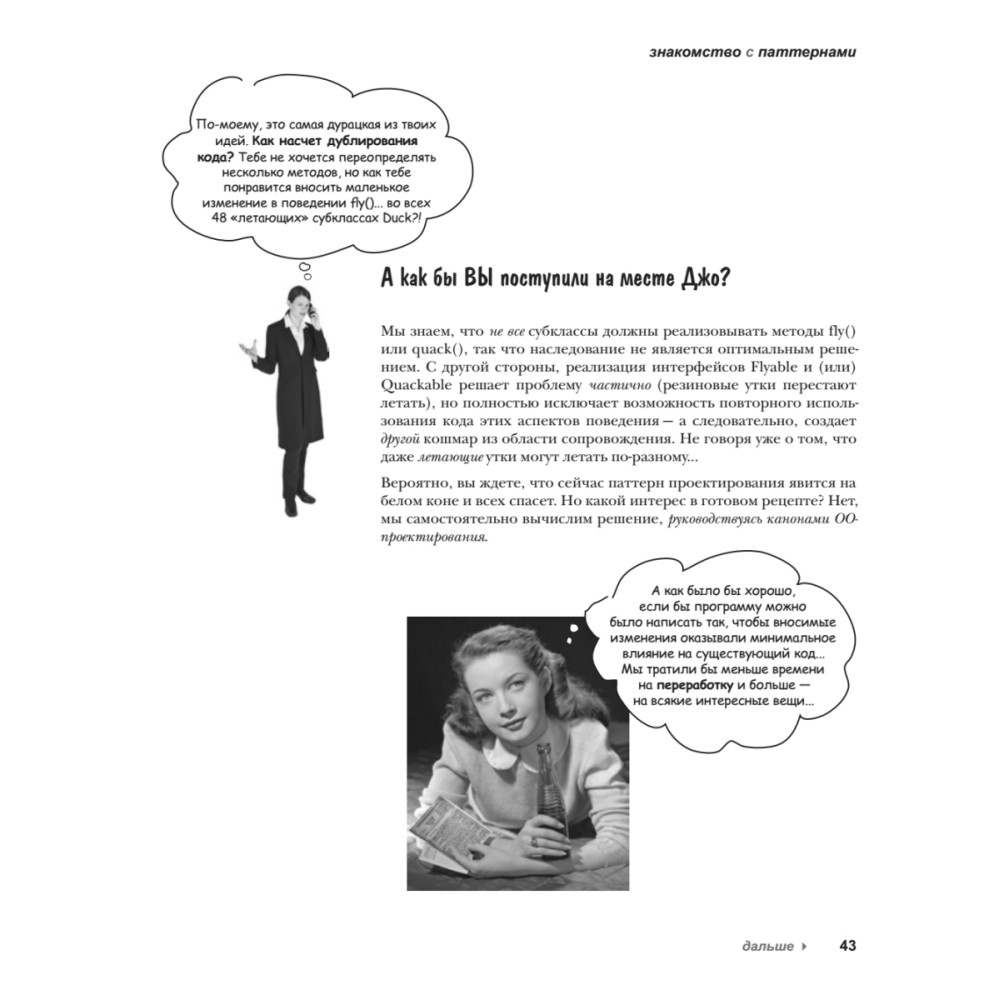 В мире постоянно кто-то сталкивается с такими же проблемами программирования, которые возникают и у вас. Многие разработчики решают совершенно идентичные задачи и находят похожие решения. Если вы не хотите изобретать велосипед, используйте готовые шаблоны (паттерны) проектирования, работе с которыми посвящена эта книга. Паттерны появились, потому что многие разработчики искали пути повышения гибкости и степени повторного использования своих программ. Найденные решения воплощены в краткой и легко применимой на практике форме. Особенностью данного издания является уникальный способ подачи материала, выделяющий серию «Head First» издательства O'Reilly в ряду множества скучных книг, посвященных программированию. Книга будет интересна широкому кругу веб-разработчиков, от начинающих до профессионалов, желающих освоить работу с паттернами проектирования.