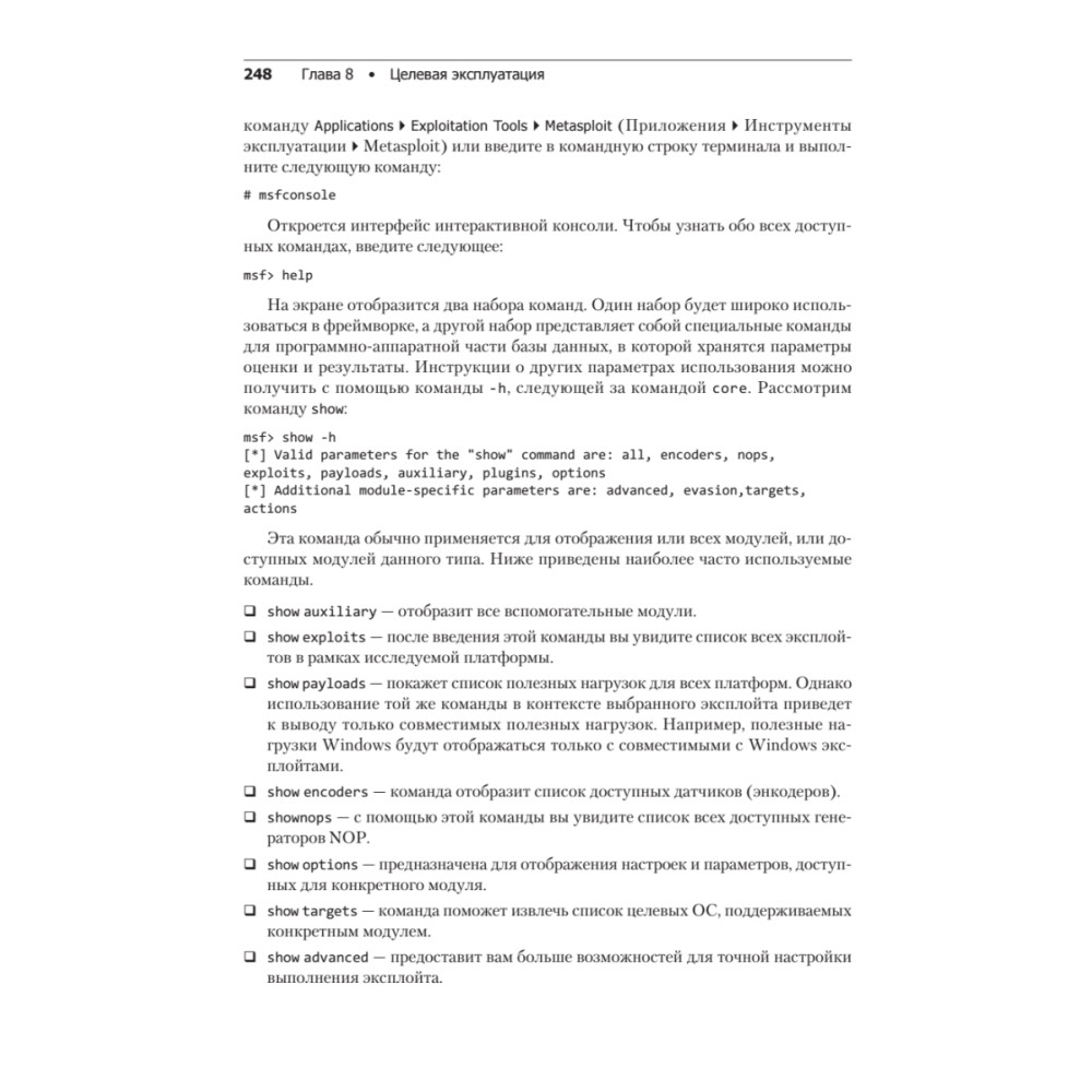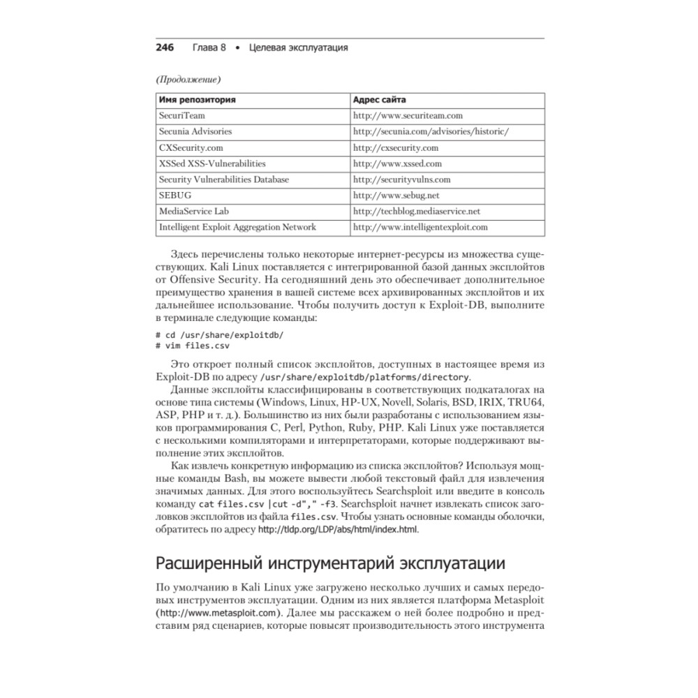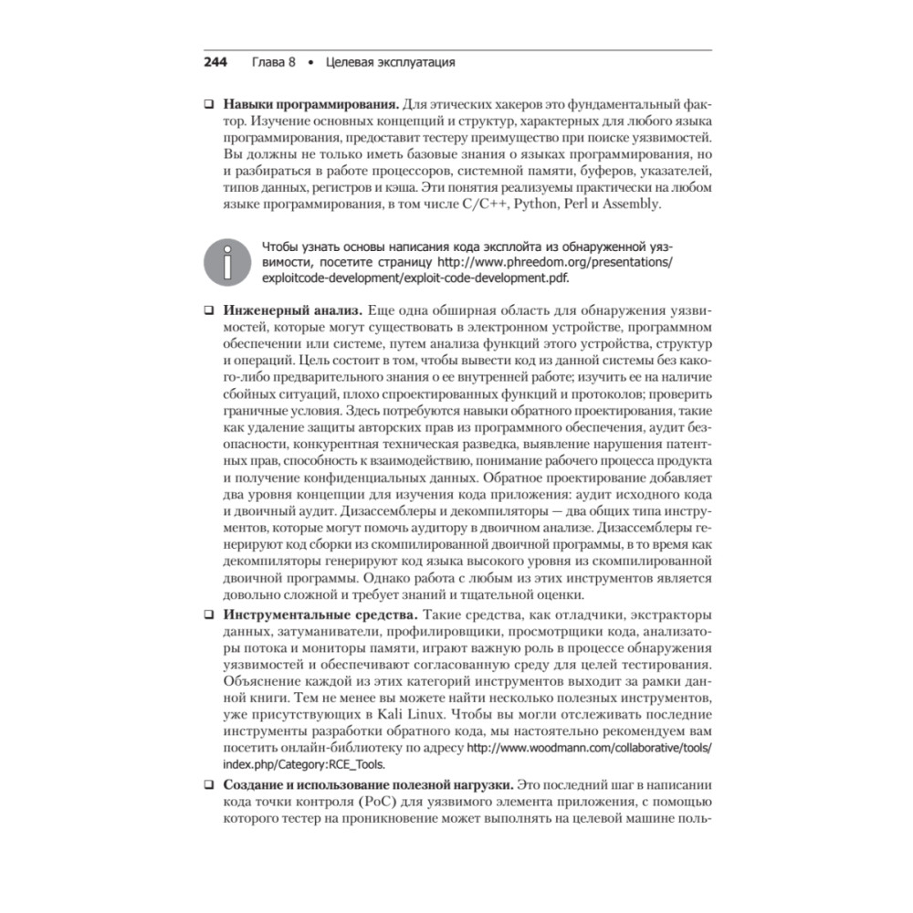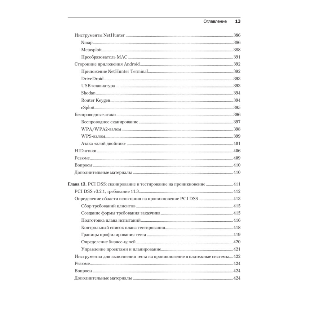 4-е издание Kali Linux 2018: Assuring Security by Penetration Testing предназначено для этических хакеров, пентестеров и специалистов по IT-безопасности. От читателя требуются базовые знания операционных систем Windows и Linux. Знания из области информационной безопасности будут плюсом и помогут вам лучше понять изложенный в книге материал. Чему вы научитесь • Осуществлять начальные этапы тестирования на проникновение, понимать область его применения • Проводить разведку и учет ресурсов в целевых сетях • Получать и взламывать пароли • Использовать Kali Linux NetHunter для тестирования на проникновение беспроводных сетей • Составлять грамотные отчеты о тестировании на проникновение • Ориентироваться в структуре стандарта PCI-DSS и инструментах, используемых для сканирования и тестирования на проникновение