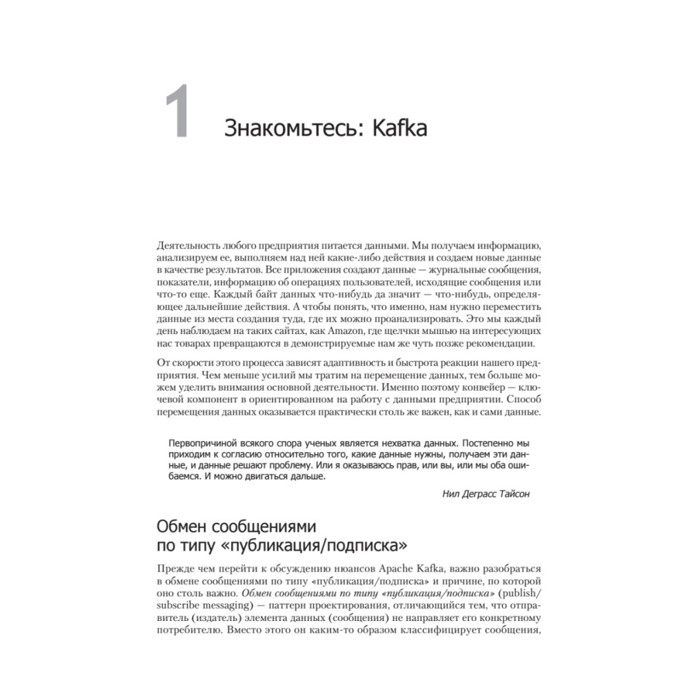При работе любого enterprise-приложения образуются данные: это файлы логов, метрики, информация об активности пользователей, исходящие сообщения и т.п. Правильные манипуляции над всеми этими данными не менее важны, чем сами данные. Если вы – архитектор, разработчик или выпускающий инженер, желающий решать подобные проблемы, но вы пока не знакомы с Apache Kafka, то именно из этой замечательной книги вы узнаете, как работать с этой свободной потоковой платформой, позволяющей обрабатывать очереди данных в реальном времени.