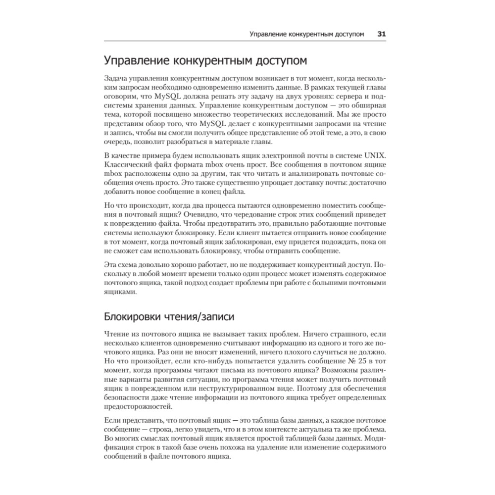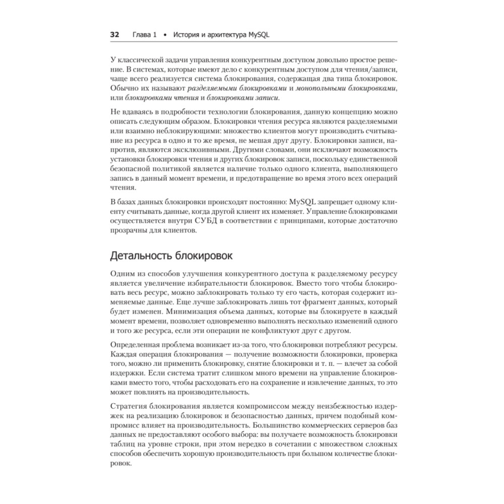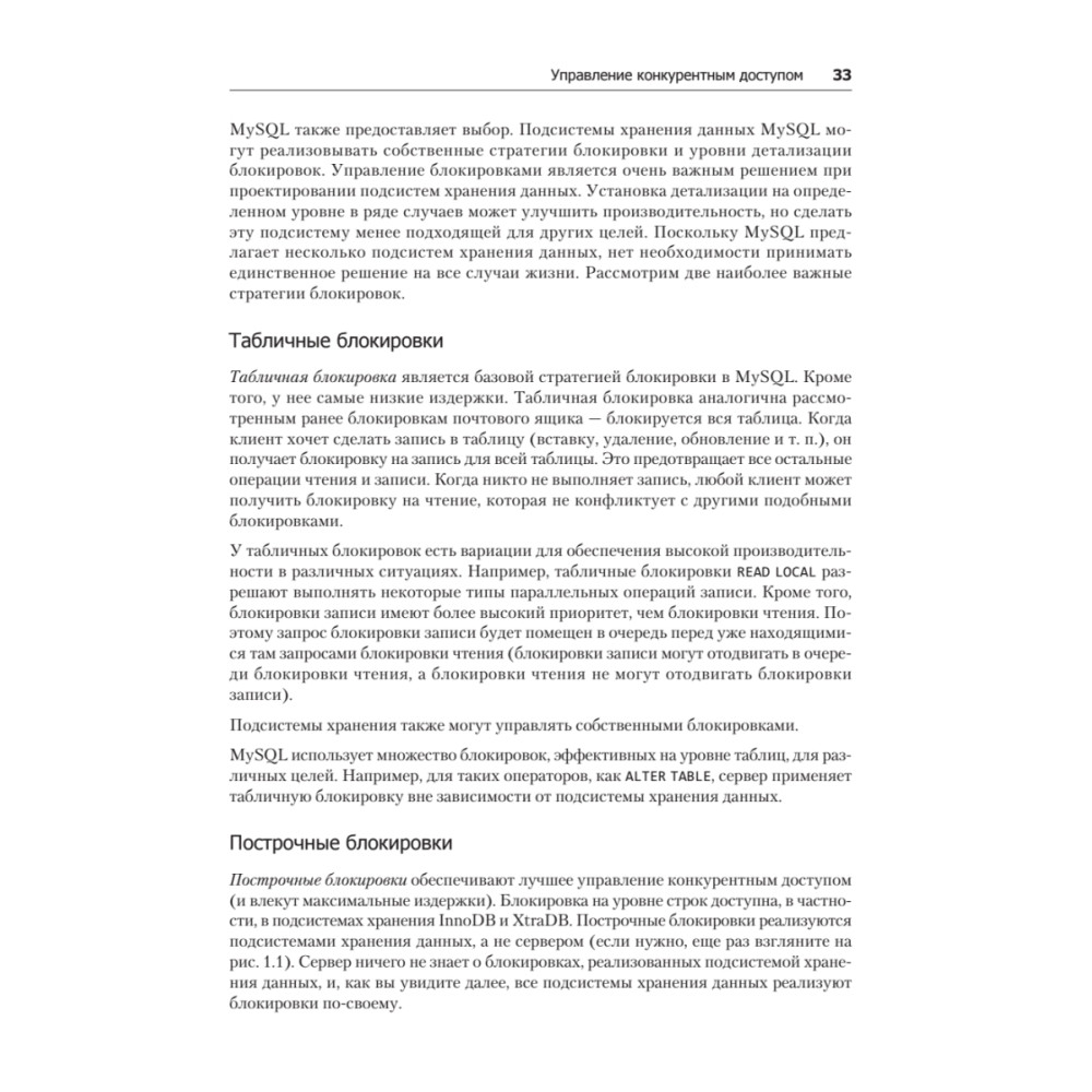 Хотите выжать из MySQL максимум возможностей? Вам поможет уникальная книга, написанная экспертами для экспертов. Познакомьтесь с продвинутыми приемами работы с MySQL: разработкой схем, индексов и запросов для настройки сервера, операционной системы и аппаратной части, способами масштабирования приложений и репликацией, балансировкой нагрузки, обеспечением доступности и восстановлением после отказов. Прочитав эту книгу, вы узнаете, почему MySQL устроена именно так, познакомитесь с разбором практичных кейсов, научитесь мыслить на одном языке с вашей базой данных. Бестселлер Шварца, Зайцева и Ткаченко - книга, необходимая любому профессионалу и способная превратить самую страшную "нештатную ситуацию" в легко преодолимый "рабочий момент". Читайте и совершенствуйтесь!