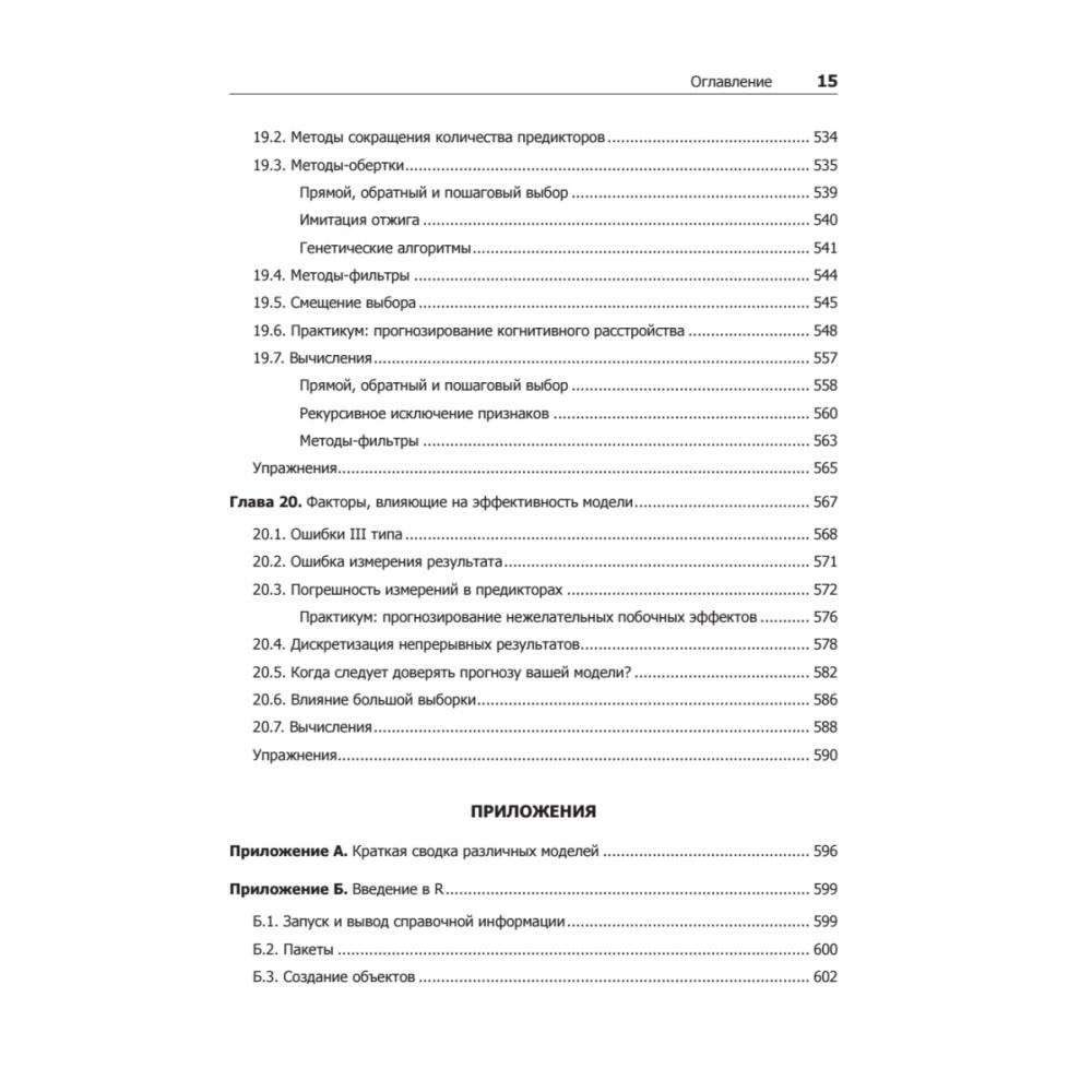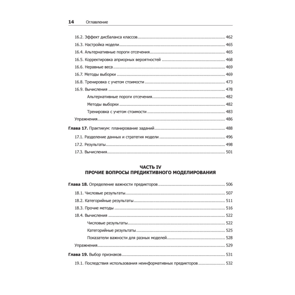 «Предиктивное моделирование на практике» охватывает все аспекты прогнозирования, начиная с ключевых этапов предварительной обработки данных, разбиения данных и основных принципов настройки модели. Все этапы моделирования рассматриваются на практических примерах из реальной жизни, в каждой главе дается подробный код на языке R. Эта книга может использоваться как введение в предиктивные модели и руководство по их применению. Читатели, не обладающие математической подготовкой, оценят интуитивно понятные объяснения конкретных методов, а внимание, уделяемое решению актуальных задач с реальными данными, поможет специалистам, желающим повысить свою квалификацию. Авторы постарались избежать сложных формул, для усвоения основного материала достаточно понимания основных статистических концепций, таких как корреляция и линейный регрессионный анализ, но для изучения углубленных тем понадобится математическая подготовка. Для работы с книгой нужно иметь базовые знания о языке R. Премия Zecgel Technometrics 2014