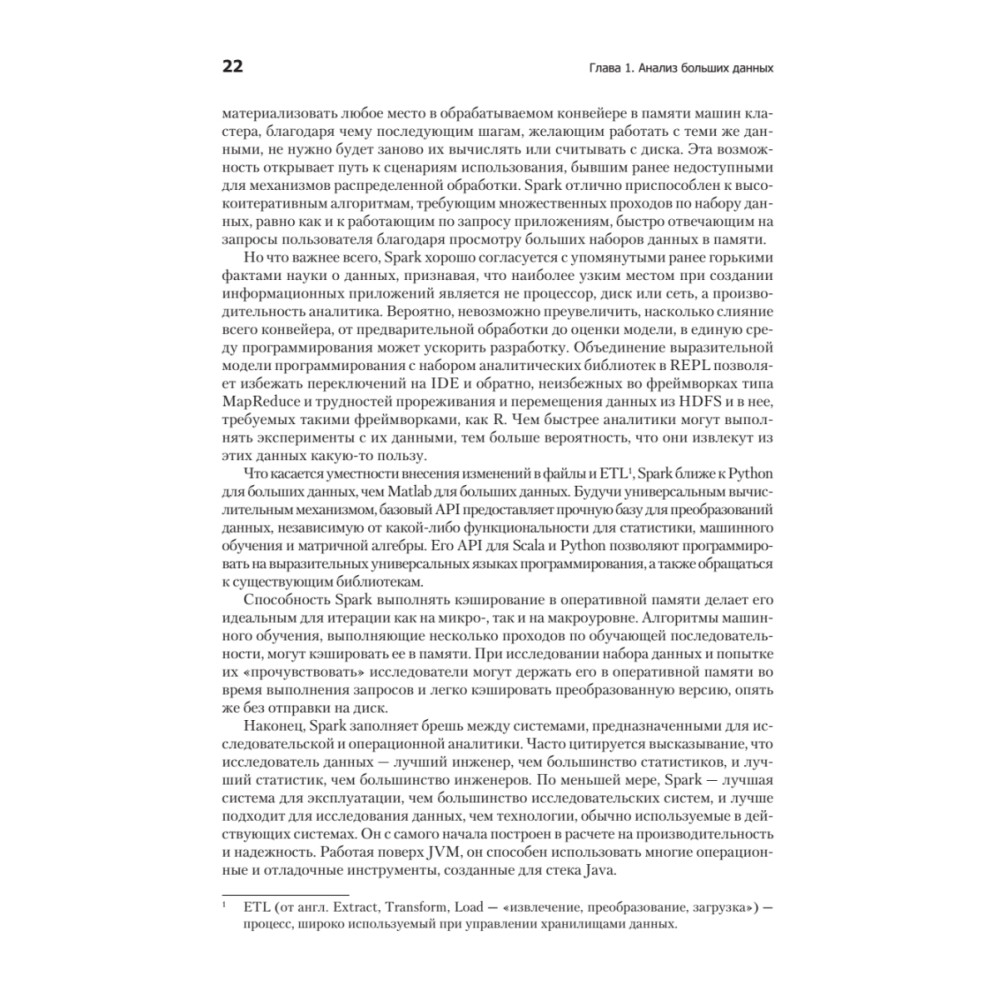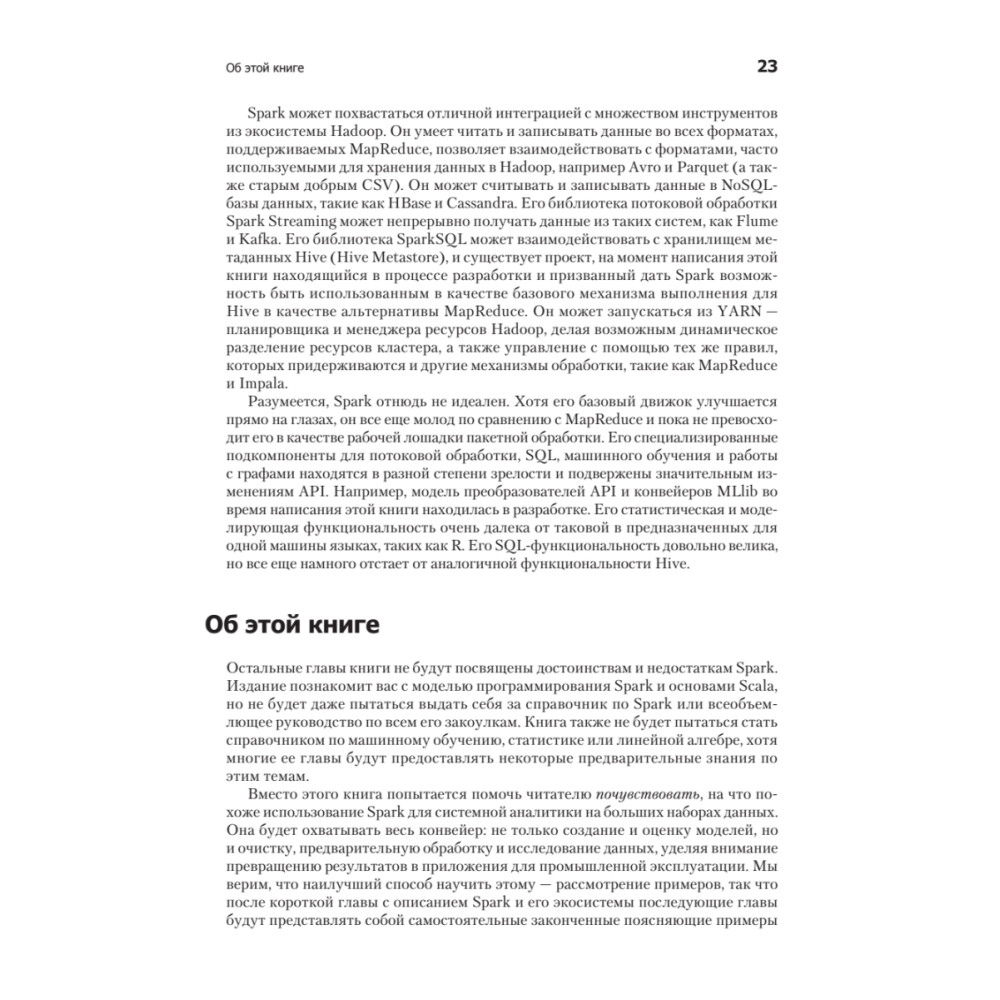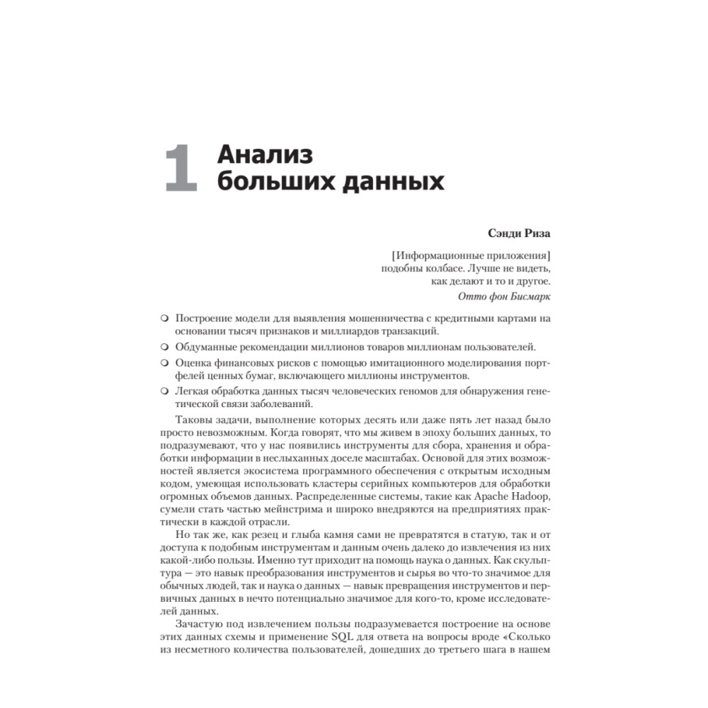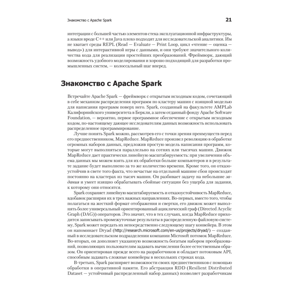 В этой практичной книге четверо специалистов Cloudera по анализу данных описывают самодостаточные паттерны для выполнения крупномасштабного анализа данных при помощи Spark. Авторы комплексно рассматривают Spark, статистические методы и множества данных, собранные в реальных условиях, и на этих примерах демонстрируют решения распространенных аналитических проблем.