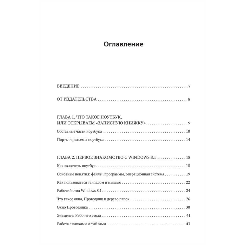 Благодаря этому самоучителю вы поймете, что ноутбук — вещь не только полезная, но и очень простая в использовании. В книге содержится вся необходимая информация, начиная с самых азов компьютерной грамотности. Вы узнаете, как включить и выключить ноутбук, как пользоваться мышью и клавиатурой, изучите последнюю версию операционной системы Windows 8.1, новый пользовательский интерфейс и самые полезные программы, узнаете, как работать с текстом, просматривать картинки, видео и слушать музыку на компьютере. Кроме того, книга познакомит вас с глобальной сетью Интернет, электронной почтой, программой Skypе и другими интересными и полезными темами. Самоучитель написан по принципу «просто и ничего лишнего» и доступен самому широкому кругу читателей.