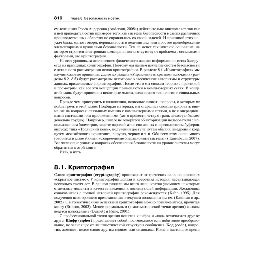 Перед вами — очередное, пятое издание самой авторитетной книги по современным сетевым технологиям, написанной признанным экспертом в этой области Эндрю Таненбаумом в соавторстве с профессором Вашингтонского университета Дэвидом Уэзероллом. Первая версия этого классического труда появилась на свет в далеком 1980 году, и с тех пор каждое издание книги неизменно становилось бестселлером и использовалось в качестве базового учебника в ведущих технических вузах. В книге последовательно изложены основные концепции, определяющие современное состояние и тенденции развития компьютерных сетей. Авторы подробнейшим образом объясняют устройство и принципы работы аппаратного и программного обеспечения, рассматривают все аспекты и уровни организации сетей — от физического до уровня прикладных программ. Изложение теоретических принципов дополняется яркими, показательными примерами функционирования Интернета и компьютерных сетей различного типа. Пятое издание полностью переработано с учетом изменений, происшедших в сфере сетевых технологий за последние годы и, в частности, освещает такие аспекты, как беспроводные сети стандарта 802.12 и 802.16, сети 3G, технология RFID, инфраструктура доставки контента CDN, пиринговые сети, потоковое вещание, интернет-телефония и многое другое.