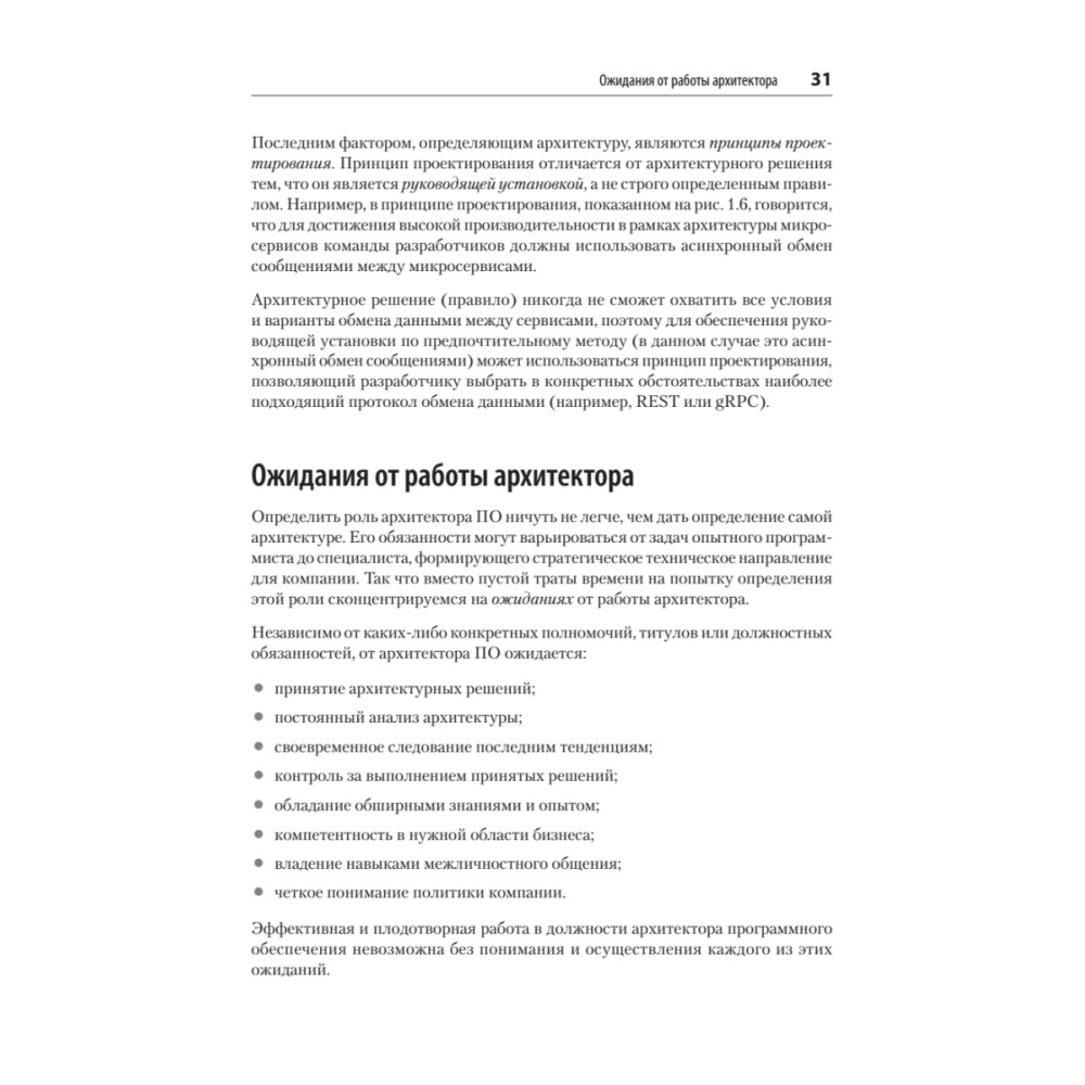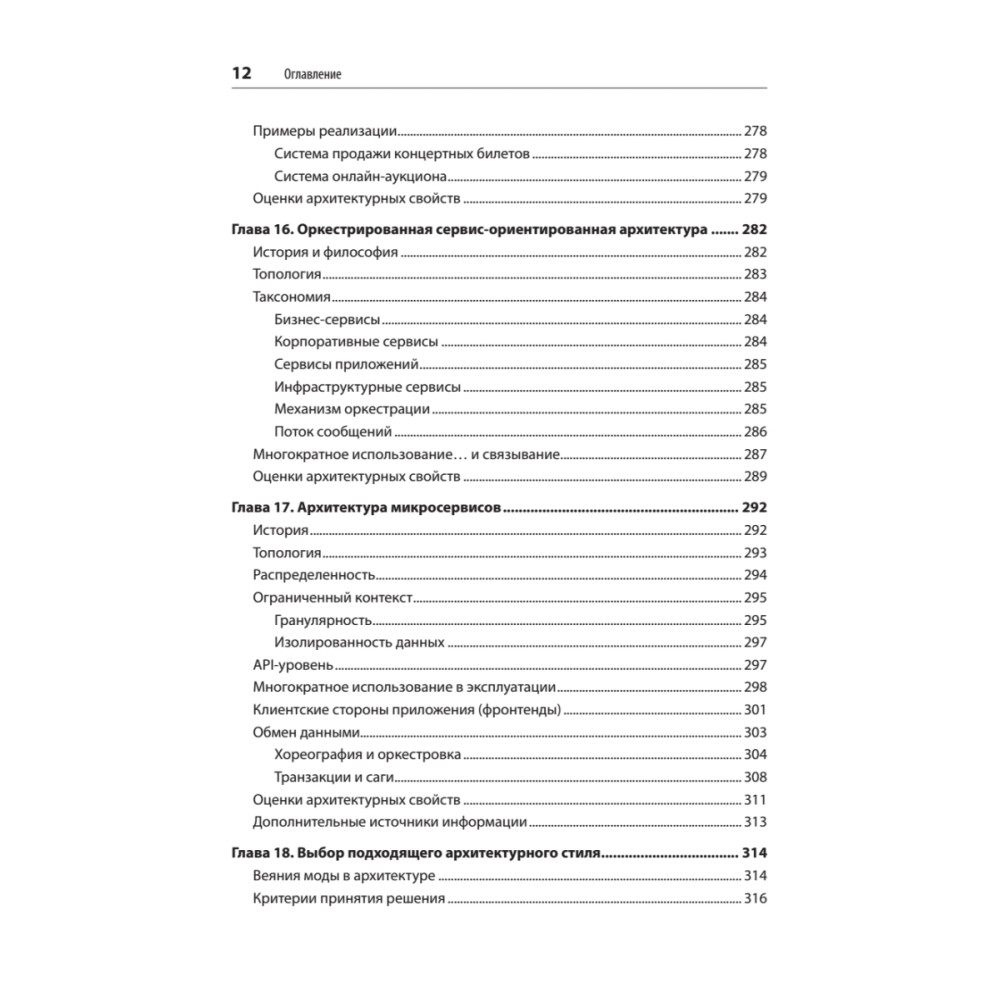 Архитекторы ПО стабильно входят в десятку самых высокооплачиваемых профессий. Но до сих пор не было реального руководства, которое позволило бы разработчикам стать архитекторами. И вот наконец появилась книга, в которой дается всеобъемлющий обзор разнообразных аспектов архитектуры программного обеспечения. Начинающие и уже состоявшиеся архитекторы найдут в ней паттерны архитектур, определения компонентов, приемы построения эволюционных архитектур и множество других тем. Марк Ричардс и Нил Форд обладают бесценным практическим опытом, профессионально занимаются этой темой, уделяя особое внимание принципам построения архитектуры, применимым ко всем технологическим стекам. Они предлагают современный взгляд на архитектуру ПО с учетом всех нововведений последнего десятилетия.