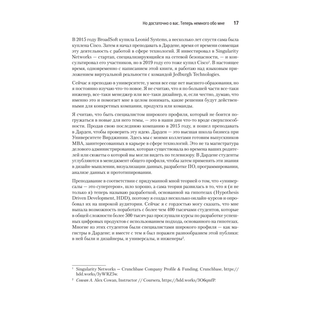 Алекс Коуэн подчеркивает важность проверки гипотез на всех этапах жизненного цикла продукта и дает практические советы по применению подхода. Вы узнаете, как применять HDD на разных стадиях процесса разработки продукта: от идеи до проектирования, от проектирования до написания кода, от написания кода до развертывания и от релиза до проверки гипотез. Книга будет полезна всем, кто стремится разрабатывать продукты, которые действительно нужны рынку, минимизировать риски и принимать стратегические решения на основе данных, а не предположений.
