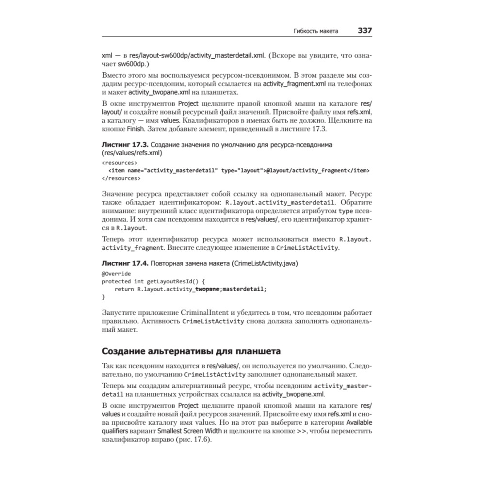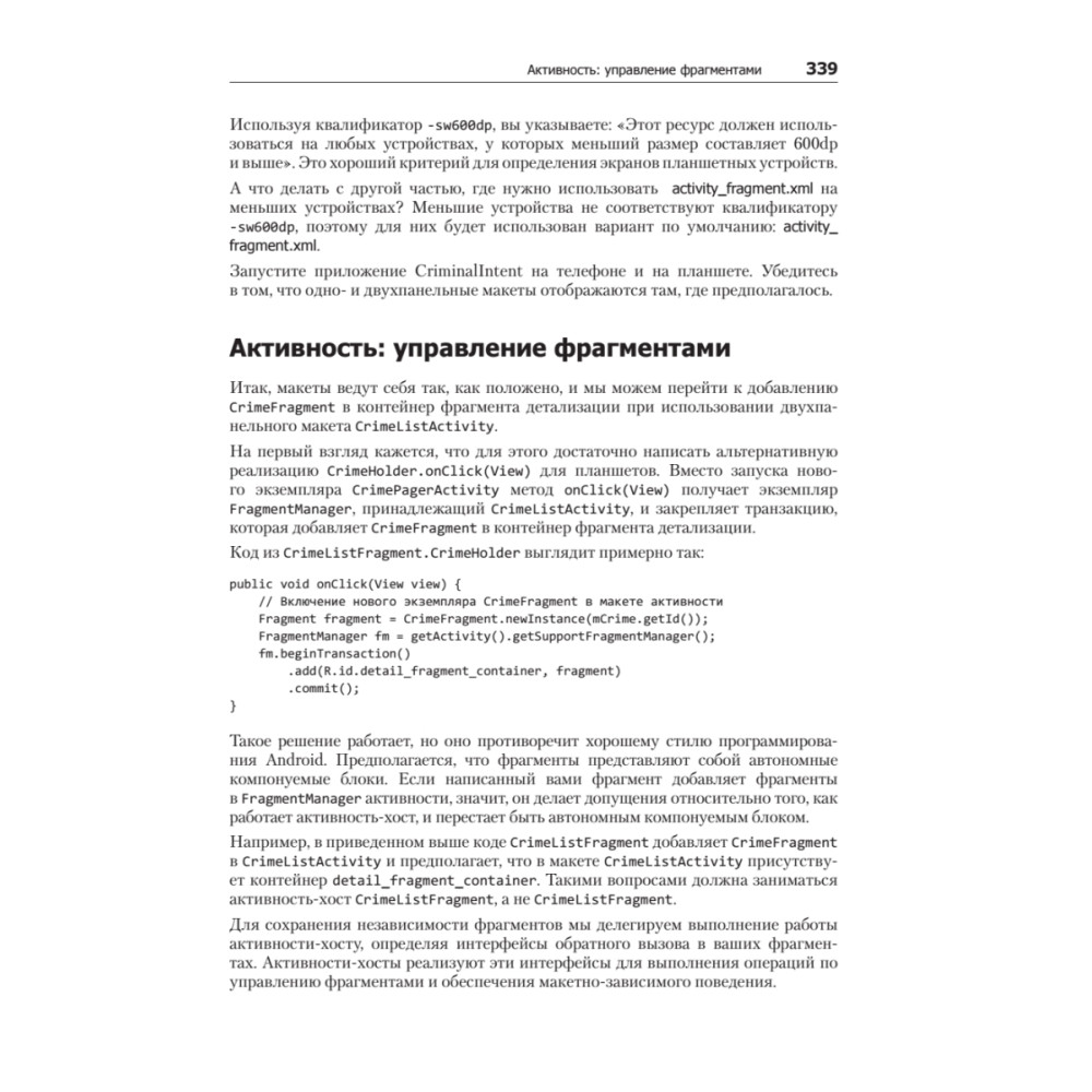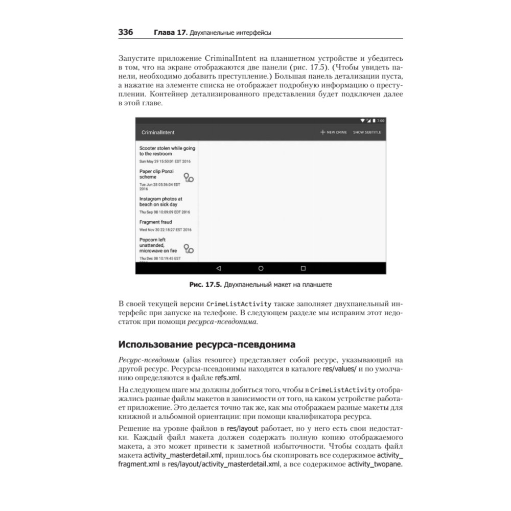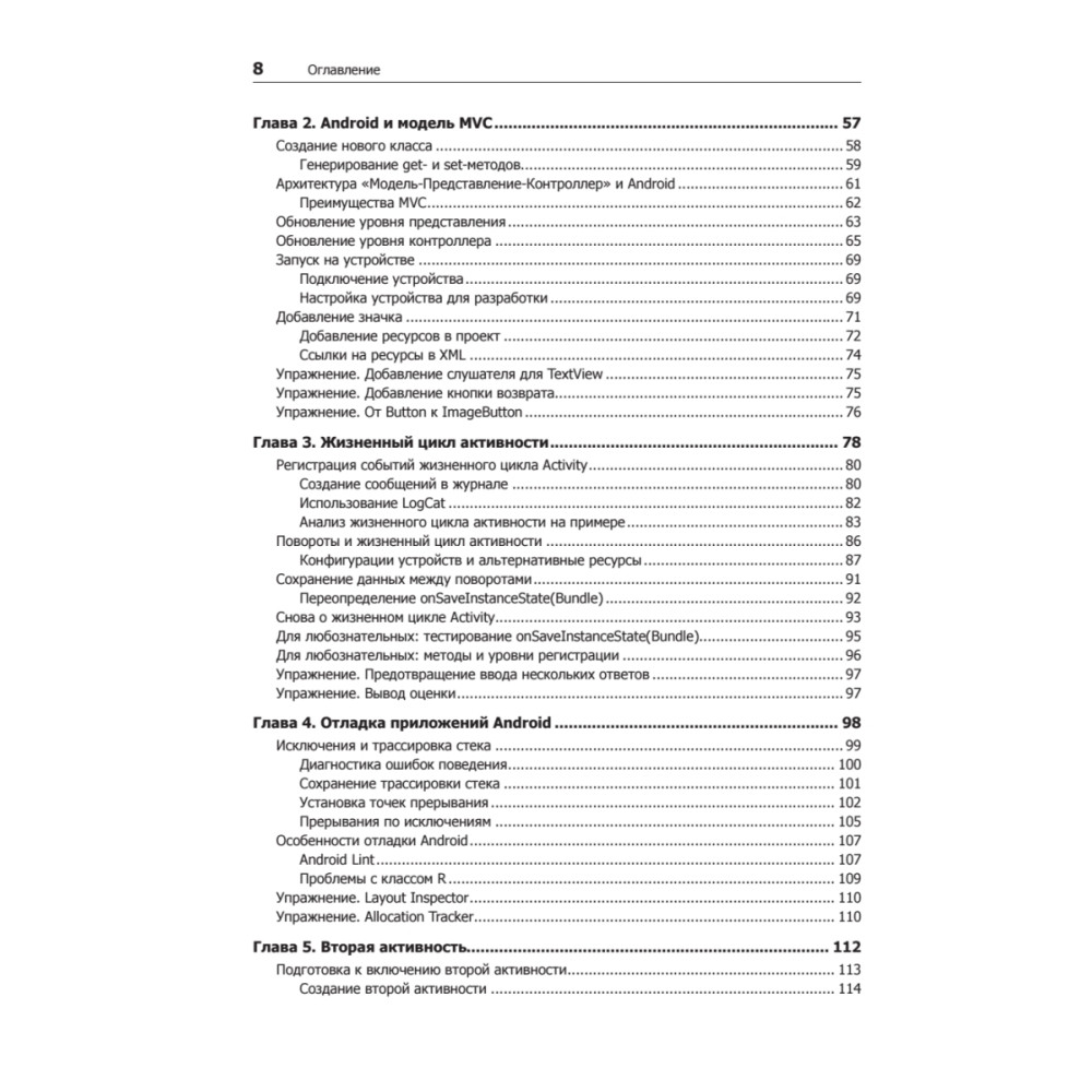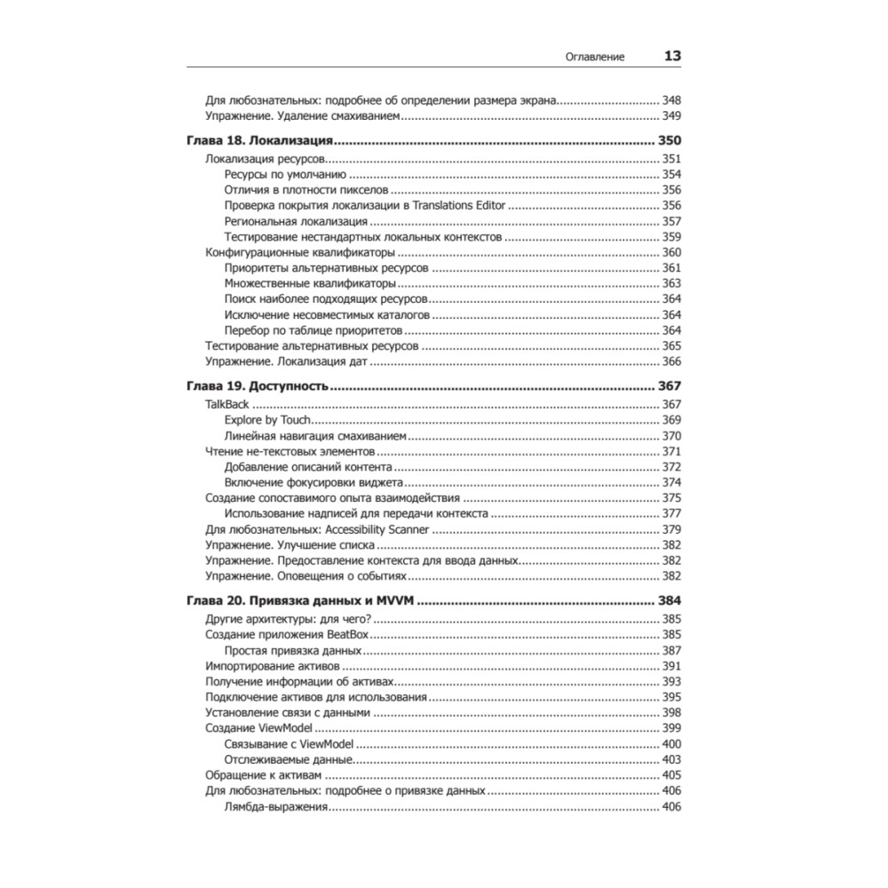 Когда вы приступаете к разработке приложений для Android — вы как будто оказываетесь в чужой стране: даже зная местный язык, на первых порах всё равно чувствуете себя некомфортно. Такое впечатление, что все окружающие знают что-то такое, чего вы никак не понимаете. И даже то, что вам уже известно, в новом контексте оказывается попросту неправильным. Третье издание познакомит вас с интегрированной средой Android Studio, которая сильно облегчает разработку приложений. Вы не только изучите основы программирования, но и узнаете о возможностях самых распространенных версий Android; новых инструментах, таких как макеты с ограничениями и связывание данных; модульном тестировании; средствах доступности; архитектурном стиле MVVM; локализации; новой системе разрешений времени выполнения. Все учебные приложения были спроектированы таким образом, чтобы продемонстрировать важные концепции и приемы программирования под Android и дать опыт их практического применения.
