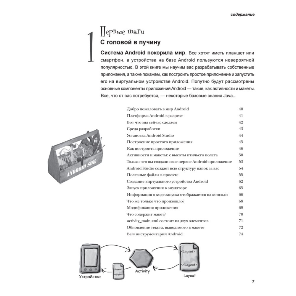 Вы научитесь правильно формировать структуру приложений, проектировать гибкие и интерактивные интерфейсы, запускать службы в фоновом режиме, обеспечивать работу на разных устройствах и многое другое.