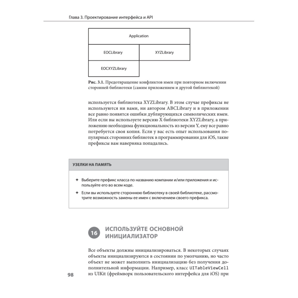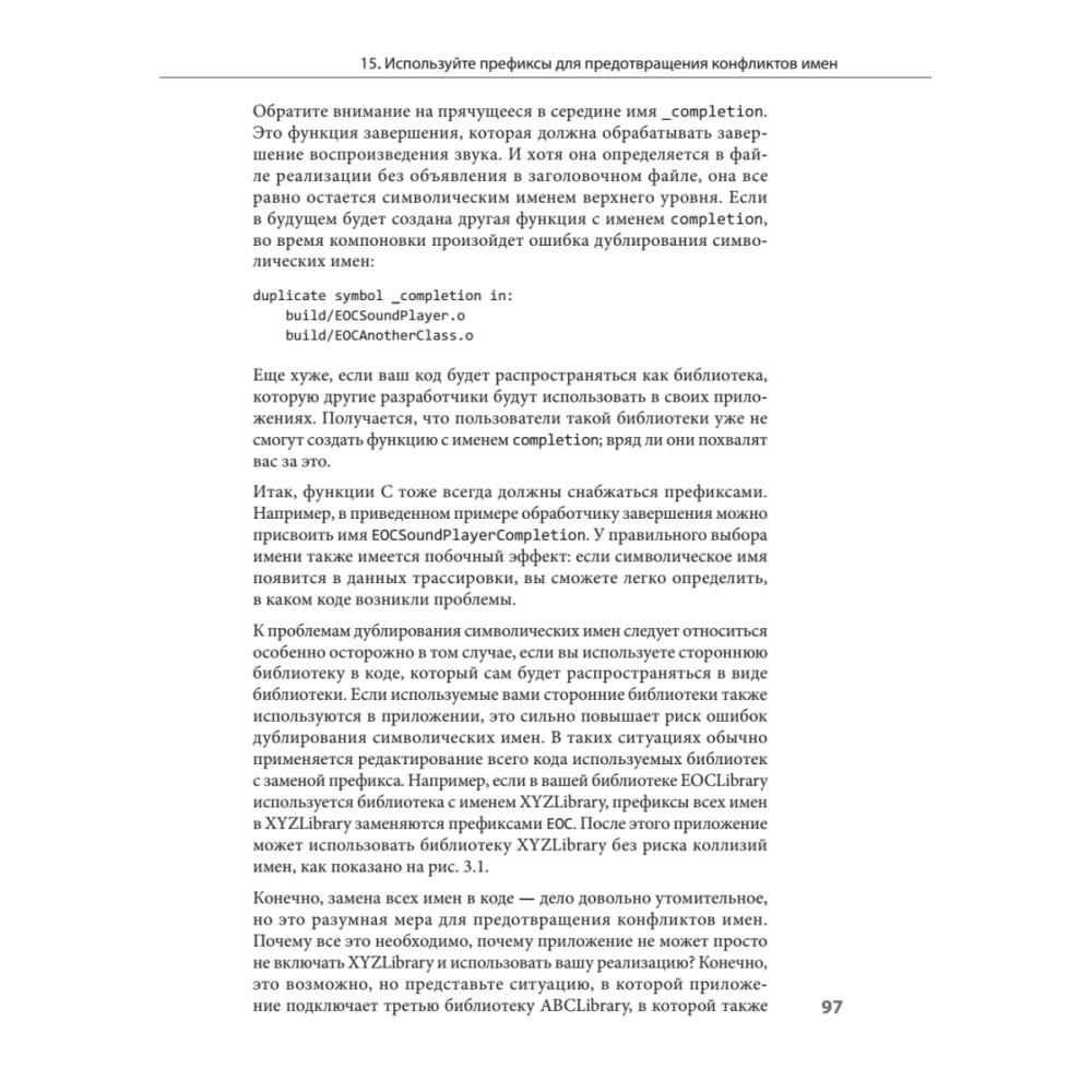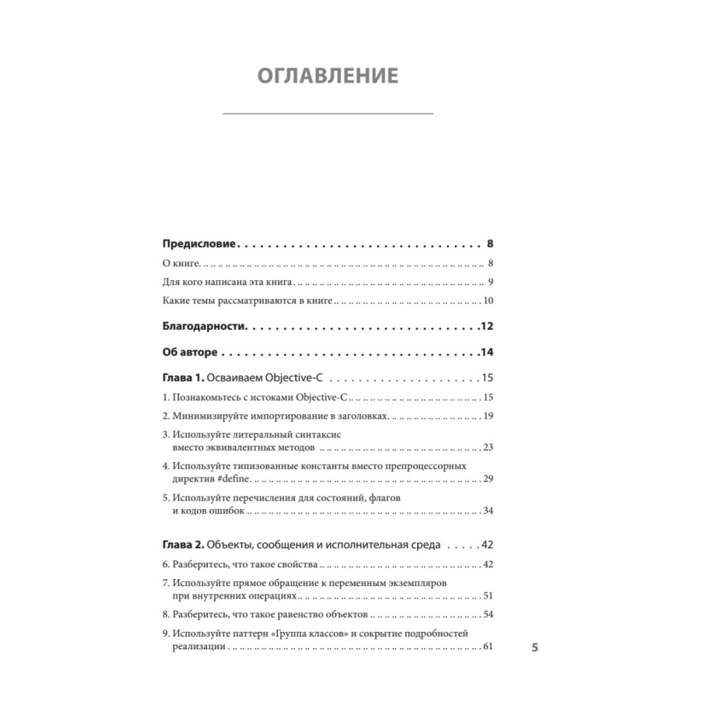 В книге содержится 52 проверенных подхода для написания «чистого» и работающего кода на Objective-C, которые можно легко использовать на практике. Автор рассматривает такие темы, как проектирование интерфейсов и API, управление памятью, блоки и GCD, системные фреймворки и другие аспекты программирования на Objective-C, понимание которых поможет в эффективной разработке приложений для iOS или OS X.