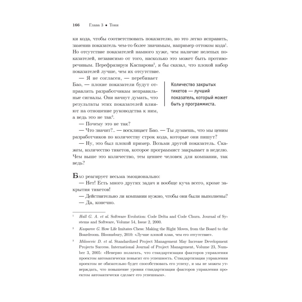 Успех программного проекта зависит от умных инженеров, которые зачастую ленивы, невежественны, эгоистичны, раздражительны и попросту несчастны. Успех зависит от людей, которые нередко не умеют общаться, делиться знаниями, руководить и подчиняться, а также следовать указаниям. Он зависит от нашей способности формировать команды и участвовать в их деятельности. А еще от наших социальных навыков — порой в гораздо большей степени, нежели от навыков технических.