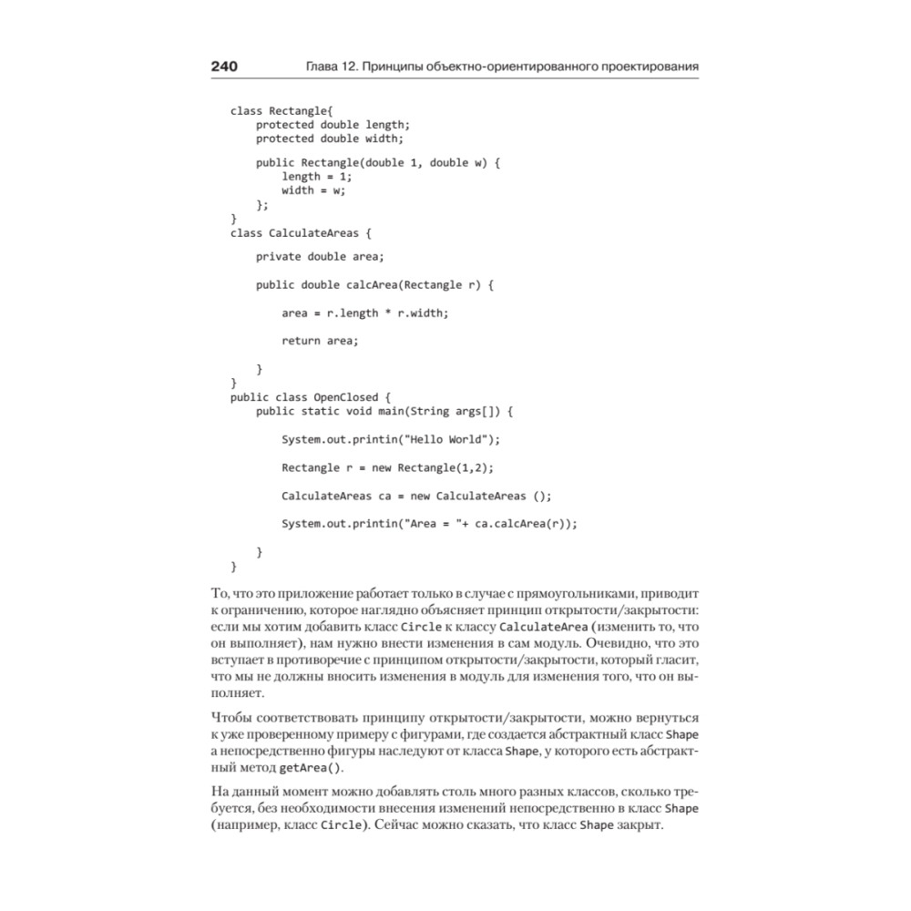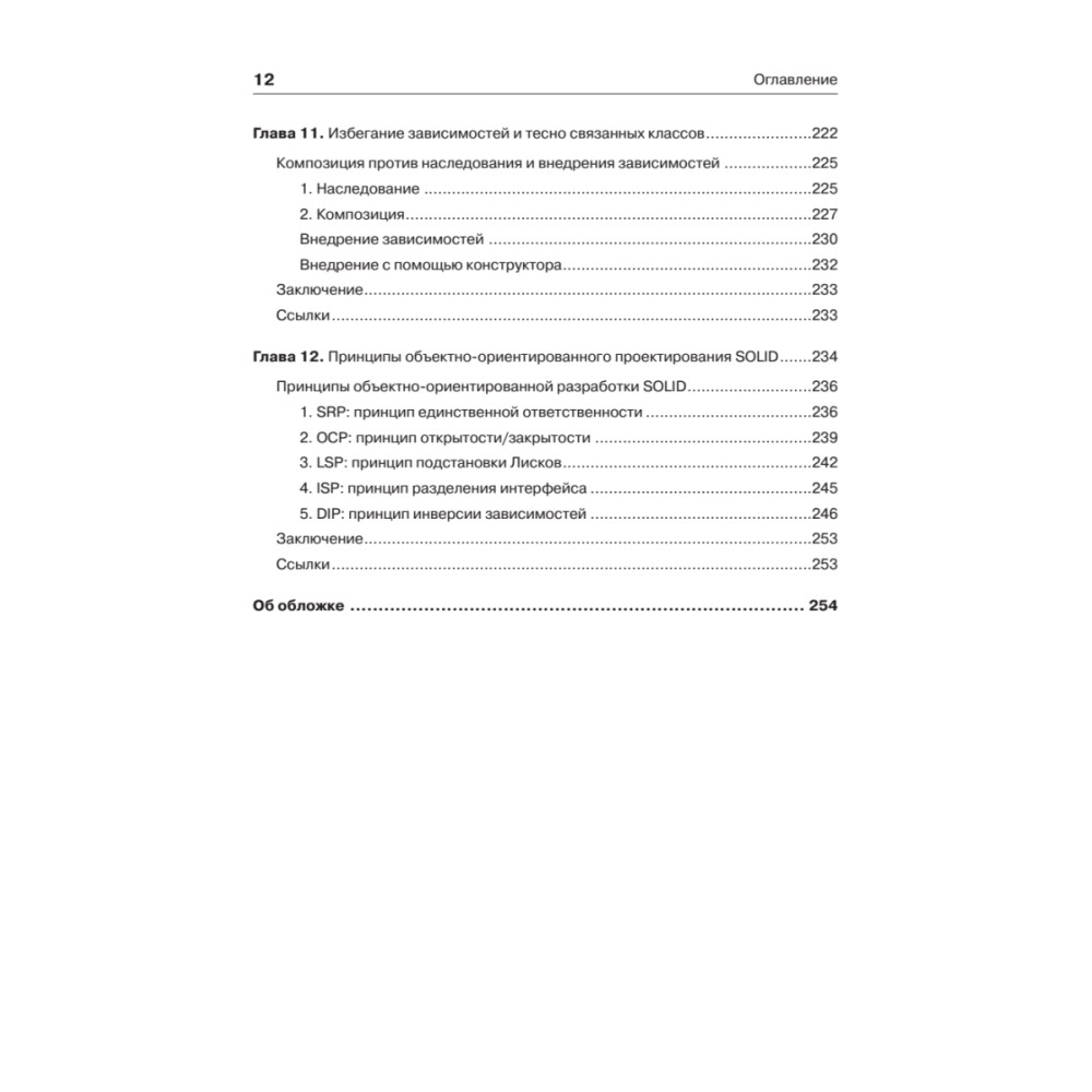 Объектно-ориентированное программирование (ООП) лежит в основе языков C++, Java, C#, Visual Basic .NET, Ruby, Objective-C и даже Swift. Не могут обойтись без объектов веб-технологии, ведь они используют JavaScript, Python и PHP. Именно поэтому Мэтт Вайсфельд советует выработать объектно-ориентированное мышление и только потом приступать к объектно-ориентированной разработке на конкретном языке программирования. Эта книга написана разработчиком для разработчиков, и позволяет выбрать оптимальные подходы для решения конкретных задач. Вы узнаете, как правильно применять наследование и композицию, поймете разницу между агрегацией и ассоциацией и перестанете путать интерфейс и реализацию. Технологии программирования непрерывно меняются и развиваются, но объектно-ориентированные концепции не зависят от платформы и остаются неизменно эффективными. В этом издании основное внимание уделяется фундаментальным основам ООП: паттернам проектирования, зависимостям и принципам SOLID, которые сделают ваш код понятным, гибким и хорошо сопровождаемым.