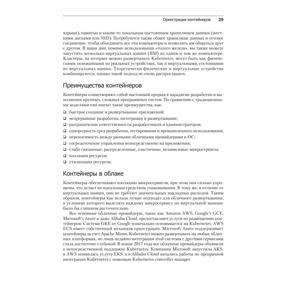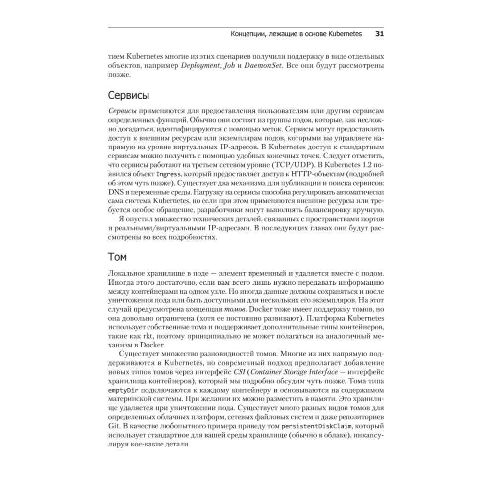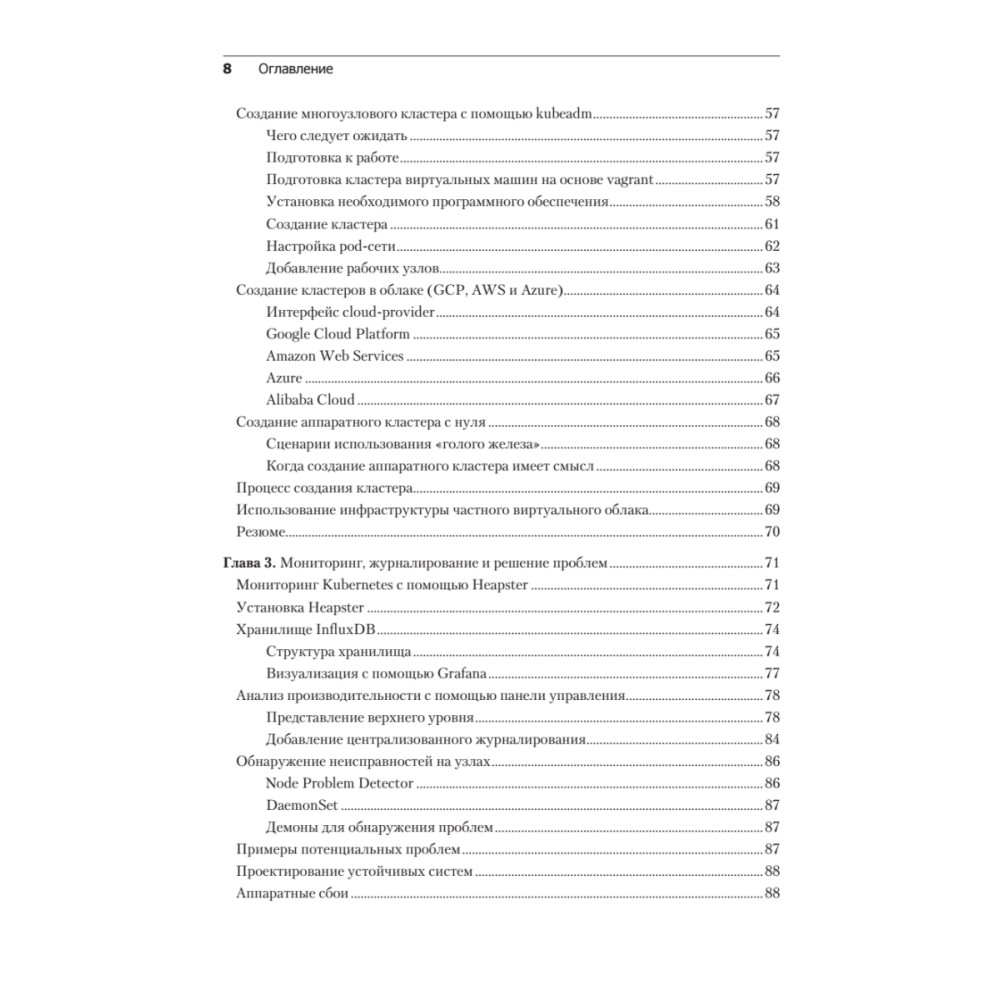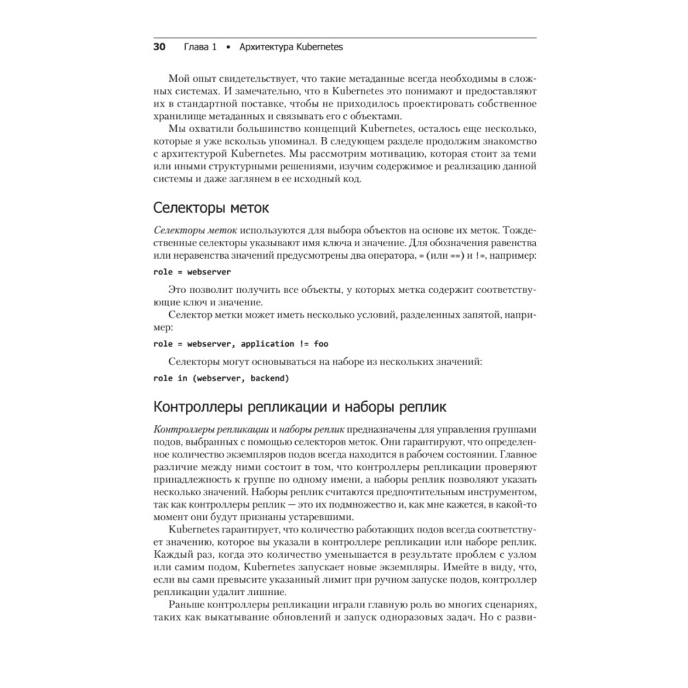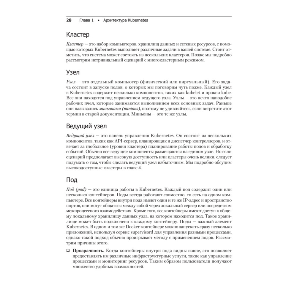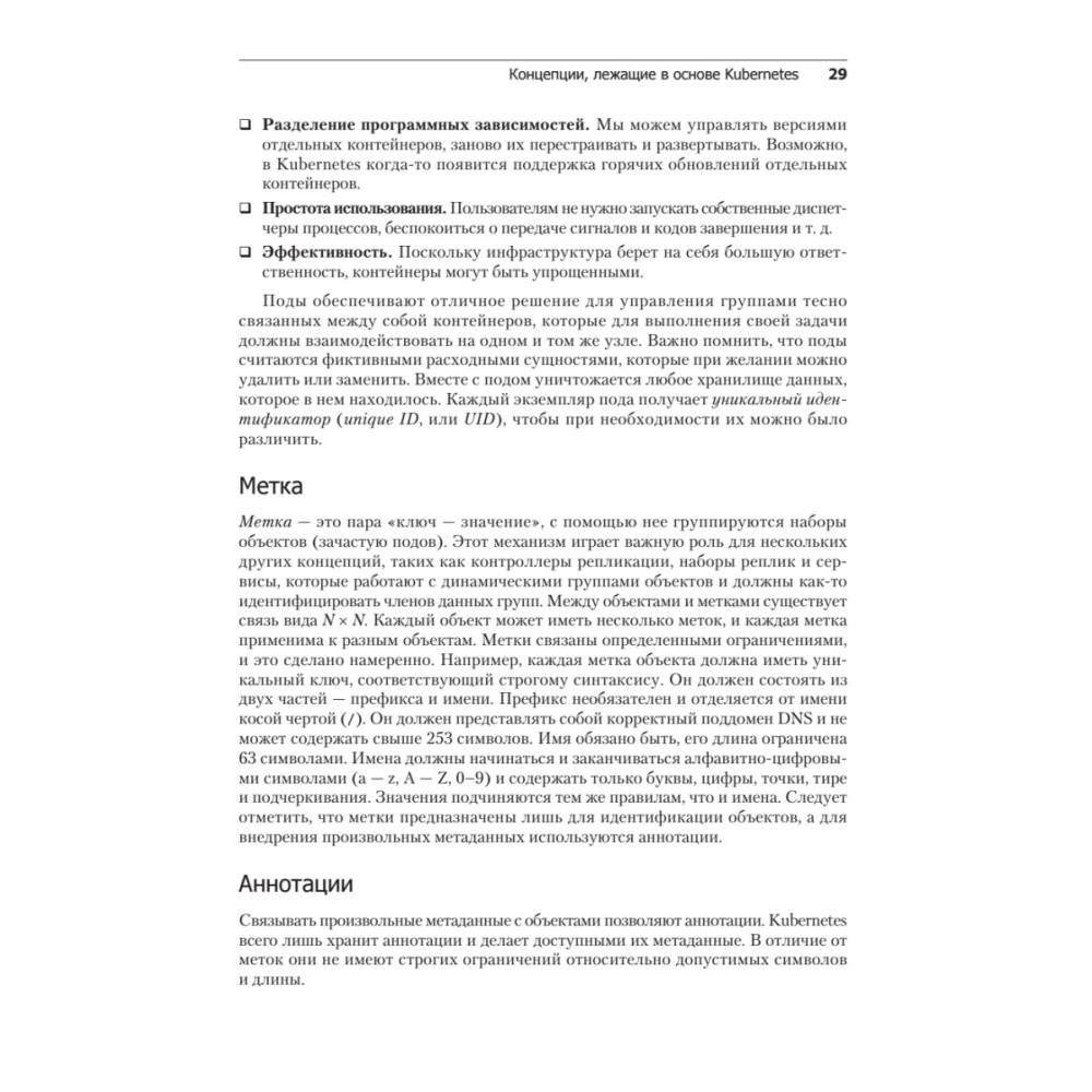 В книге рассмотрена новейшая версия Kubernetes 1.10. Kubernetes – это система с открытым кодом, предназначенная для работы с контейнерными приложениями, их развертывания, масштабирования, управления ими. Если вы хотите запустить дополнительные контейнеры или автоматизировать управление, то вам не обойтись без Kubernetes. Книга начинается с изучения основ Kubernetes, архитектуры и компоновки этой системы. Вы научитесь создавать микросервисы с сохранением состояния, ознакомитесь с такими продвинутыми возможностями, как горизонтальное автомасштабирование подов, выкатывание обновлений, квотирование ресурсов, обустроите долговременное хранилище на бэкенде. На реальных примерах вы исследуете возможности сетевой конфигурации, подключение и настройку плагинов. Эта книга поможет вам стать искусным дирижером и обращаться с контейнерными системами любой сложности.