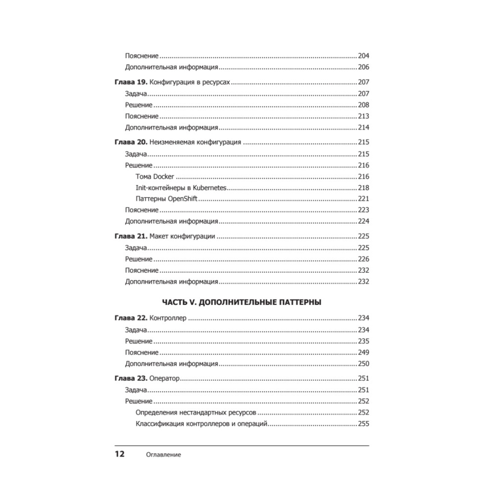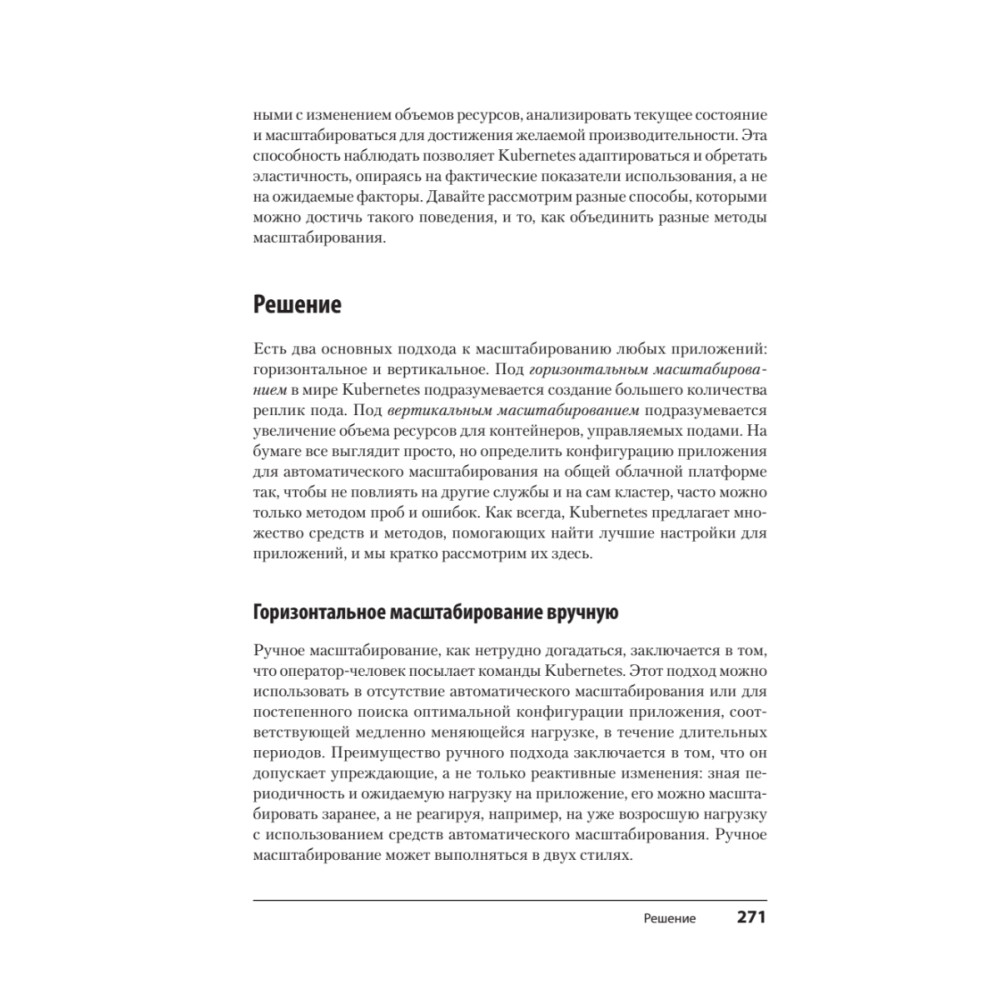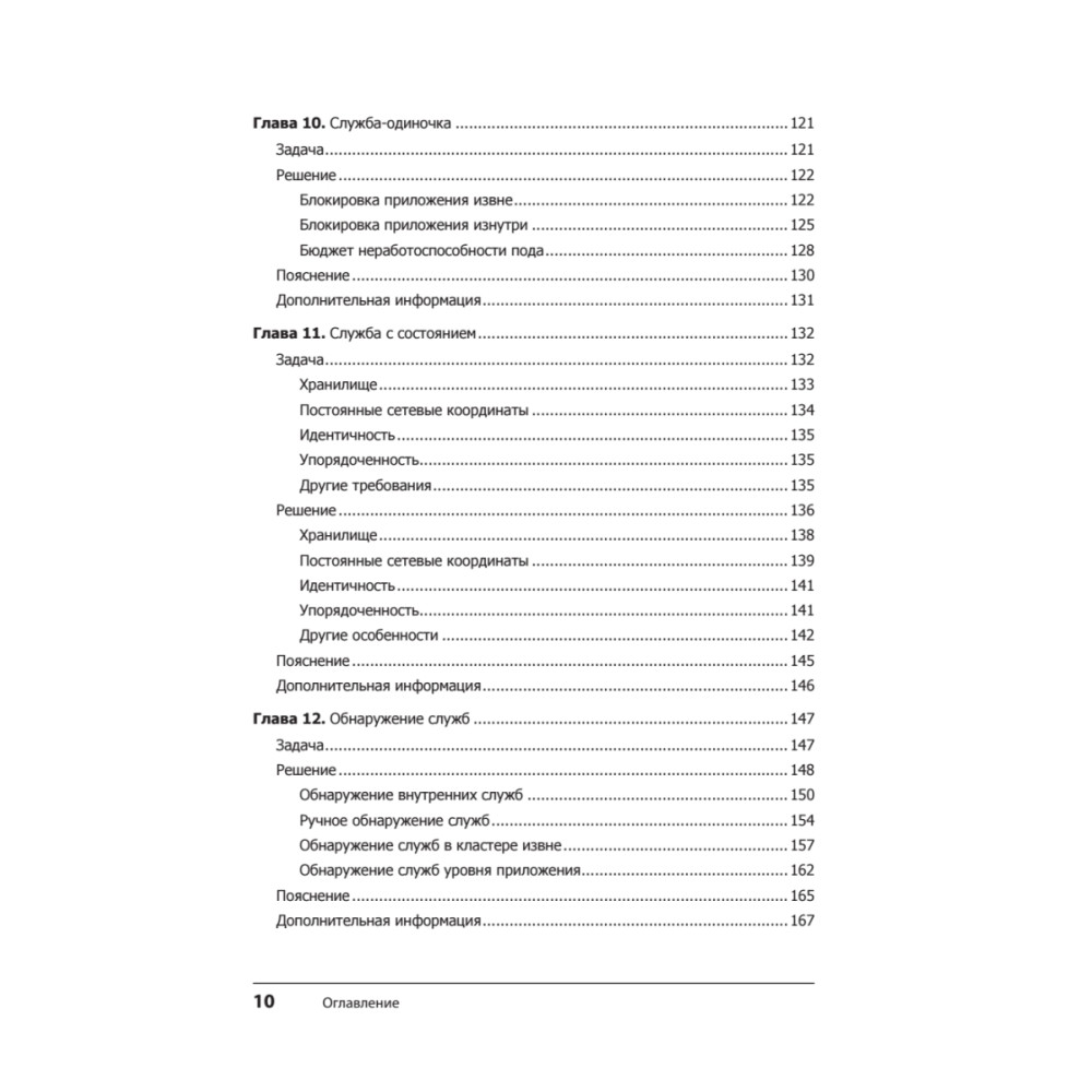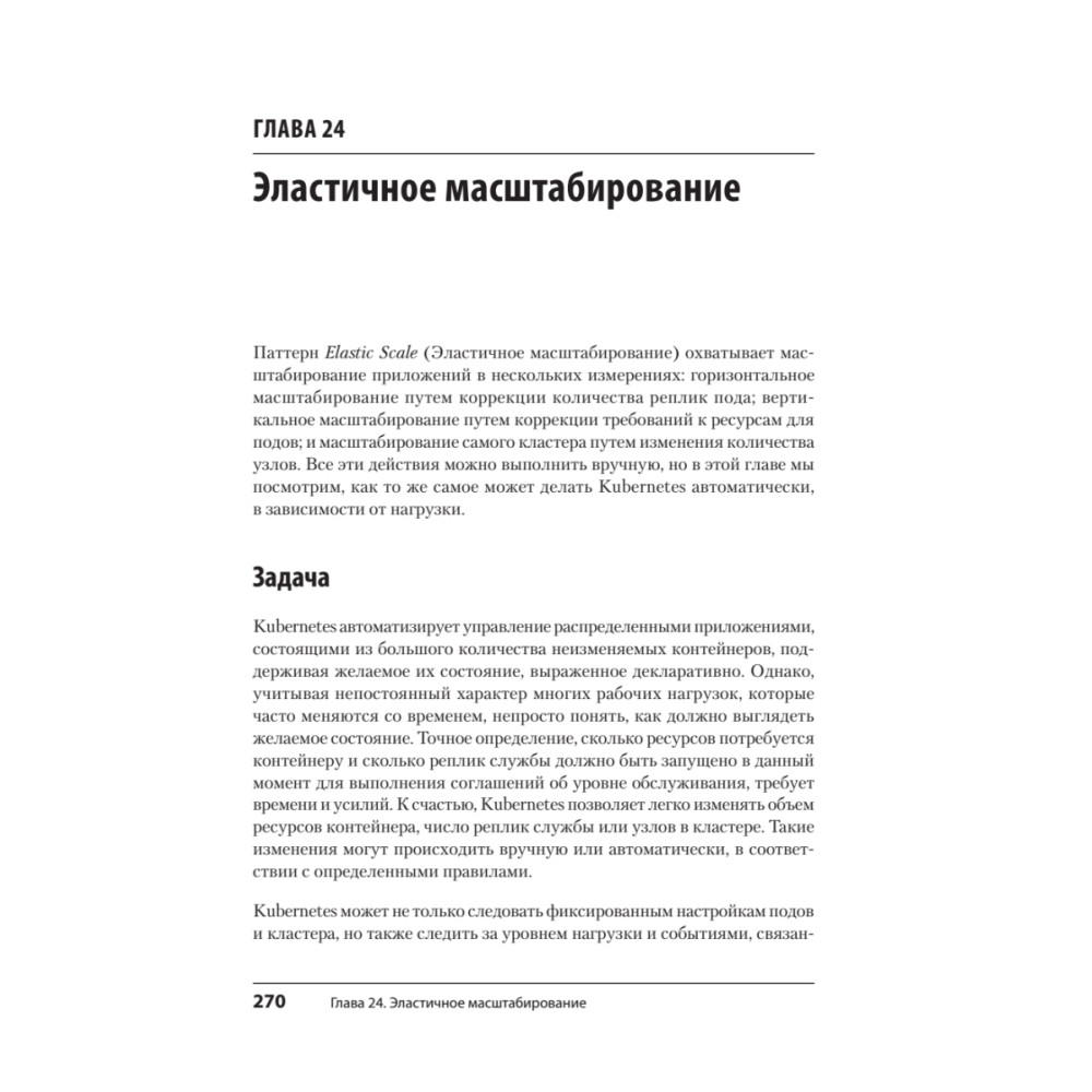 С развитием микросервисов и контейнеров изменились подходы к проектированию, созданию и запуску программного обеспечения. Познакомьтесь с новыми паттернами и принципами разработки, которые нужны для реализации облачных приложений в Kubernetes. Эта книга адресована разработчикам, желающим проектировать и разрабатывать облачные приложения для платформы Kubernetes. Наибольшую пользу из нее извлекут читатели, которые хотя бы немного знакомы с контейнерами и хотят подняться на новый уровень. Каждый паттерн проектирования представляет собой описание реальной задачи, а решение поддерживается и иллюстрируется конкретными примерами кода. Вы узнаете о следующих категориях паттернов: • Основные паттерны охватывают базовые принципы и практики создания приложений на основе контейнеров. • Поведенческие паттерны предназначены для управления взаимодействиями контейнеров и платформ. • Структурные паттерны помогают организовать контейнеры в поды. • Конфигурационные паттерны позволяют разобраться в настройке приложений. • Дополнительные паттерны охватывают более сложные темы: операторы и автоматическое масштабирование. «Прочитав эту книгу, вы узнаете не только о паттернах Kubernetes, но и о том, зачем они нужны и как их использовать». Брендан Бернс, Kubernetes «Уникальный подход, который знакомит с ключевыми концепциями Kubernetes, чтобы каждый разработчик смог понять и быстро реализовать их на практике». Эндрю Блок, главный консультант, Red Hat «Отличная книга, в которой объясняется как решать реальные задачи». Майкл Хюттерманн, главный консультант по DevOps, Huettermann.net