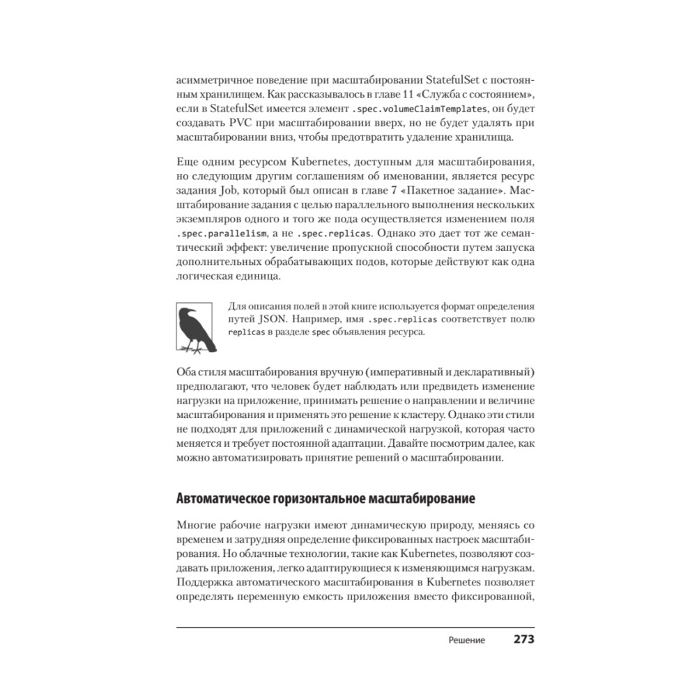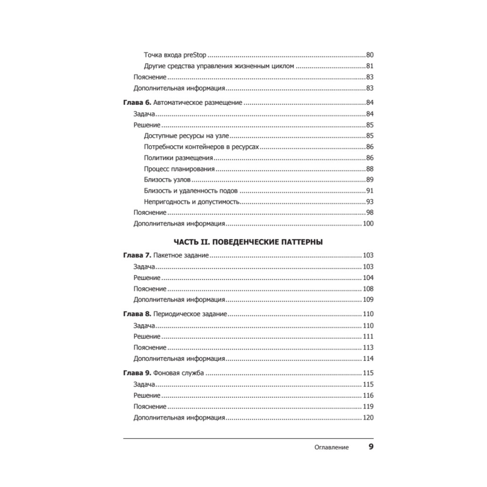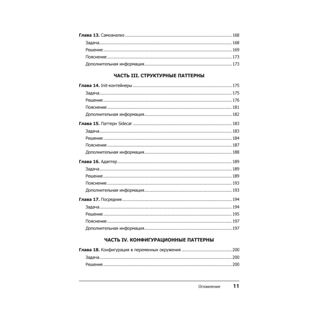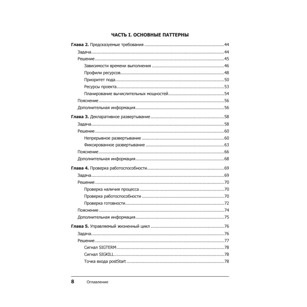 С развитием микросервисов и контейнеров изменились подходы к проектированию, созданию и запуску программного обеспечения. Познакомьтесь с новыми паттернами и принципами разработки, которые нужны для реализации облачных приложений в Kubernetes. Эта книга адресована разработчикам, желающим проектировать и разрабатывать облачные приложения для платформы Kubernetes. Наибольшую пользу из нее извлекут читатели, которые хотя бы немного знакомы с контейнерами и хотят подняться на новый уровень. Каждый паттерн проектирования представляет собой описание реальной задачи, а решение поддерживается и иллюстрируется конкретными примерами кода. Вы узнаете о следующих категориях паттернов: • Основные паттерны охватывают базовые принципы и практики создания приложений на основе контейнеров. • Поведенческие паттерны предназначены для управления взаимодействиями контейнеров и платформ. • Структурные паттерны помогают организовать контейнеры в поды. • Конфигурационные паттерны позволяют разобраться в настройке приложений. • Дополнительные паттерны охватывают более сложные темы: операторы и автоматическое масштабирование. «Прочитав эту книгу, вы узнаете не только о паттернах Kubernetes, но и о том, зачем они нужны и как их использовать». Брендан Бернс, Kubernetes «Уникальный подход, который знакомит с ключевыми концепциями Kubernetes, чтобы каждый разработчик смог понять и быстро реализовать их на практике». Эндрю Блок, главный консультант, Red Hat «Отличная книга, в которой объясняется как решать реальные задачи». Майкл Хюттерманн, главный консультант по DevOps, Huettermann.net