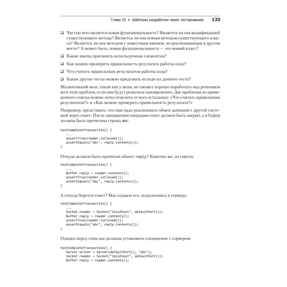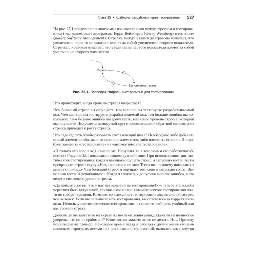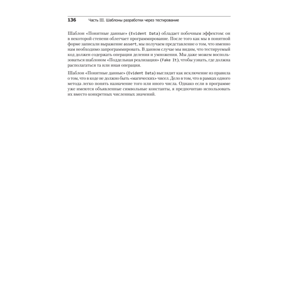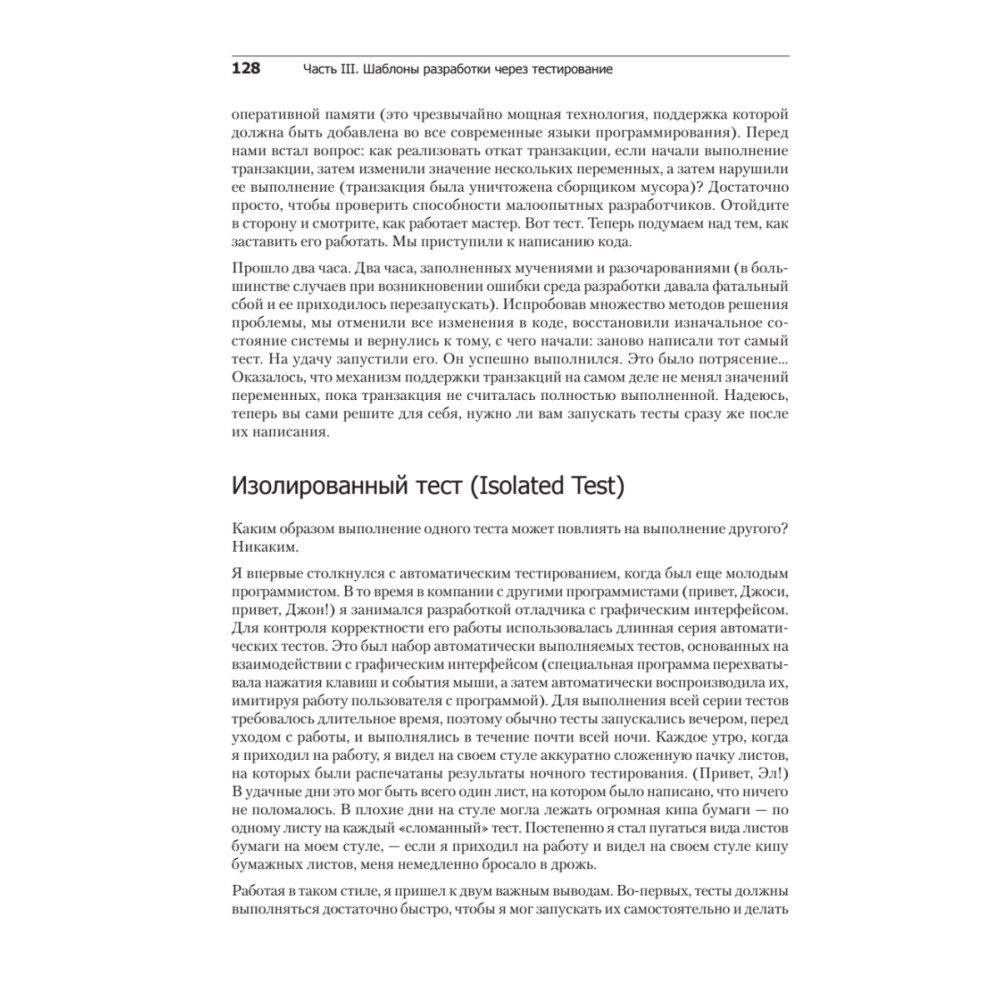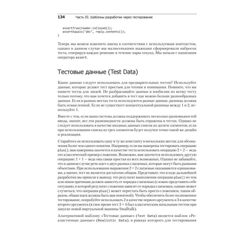 Возвращение знаменитого бестселлера. Изящный, гибкий и понятный код, который легко модифицировать, который корректно работает и который не подкидывает своим создателям неприятных сюрпризов. Неужели подобное возможно? Чтобы достичь цели, попробуйте тестировать программу еще до того, как она написана. Именно такая парадоксальная идея положена в основу методики TDD (Test-Driven-Development — разработка, основанная на тестировании). Бессмыслица? Не спешите делать скороспелые выводы. Рассматривая применение TDD на примере разработки реального программного кода, автор демонстрирует простоту и мощь этой методики. В книге приведены два программных проекта, целиком и полностью реализованных с использованием TDD. За рассмотрением примеров следует обширный каталог приемов работы в стиле TDD, а также паттернов и рефакторингов, имеющих отношение к TDD. Книга будет полезна для любого программиста, желающего повысить производительность своей работы и получить удовольствие от программирования.