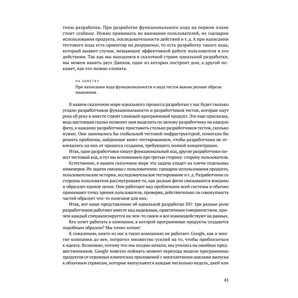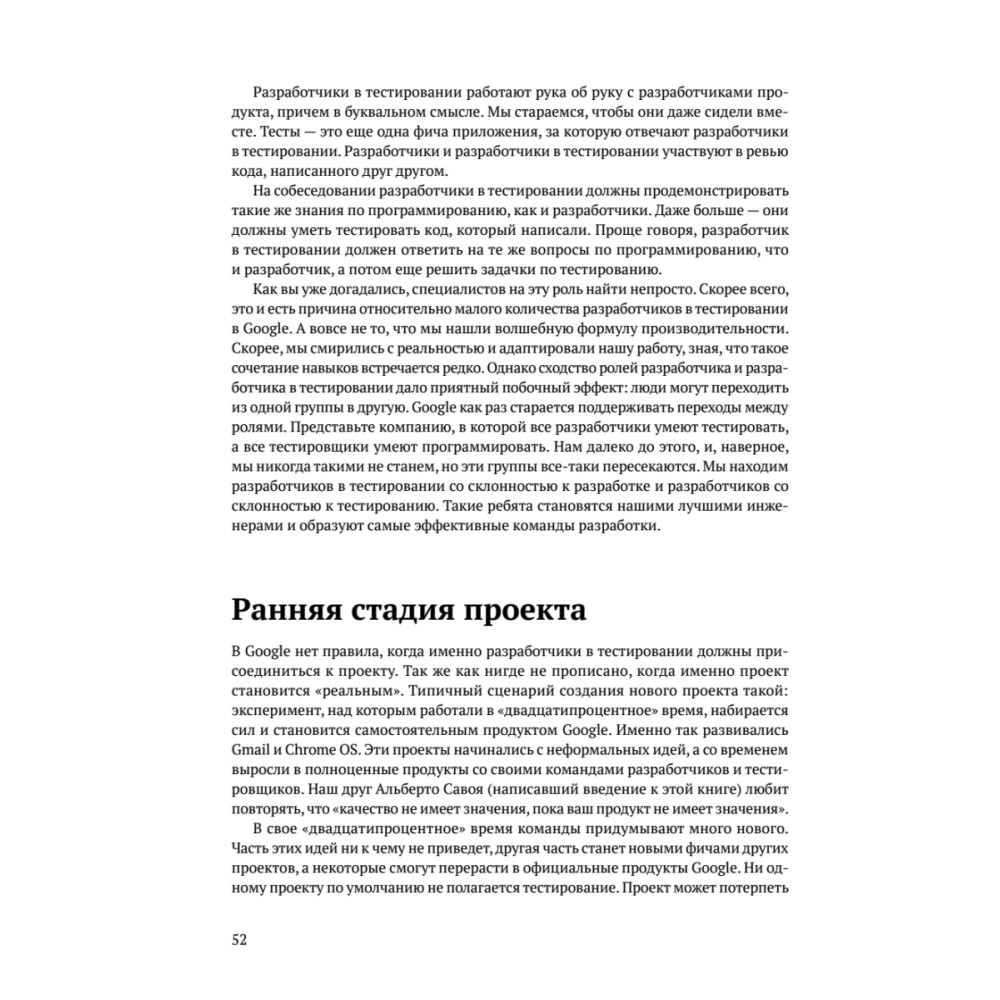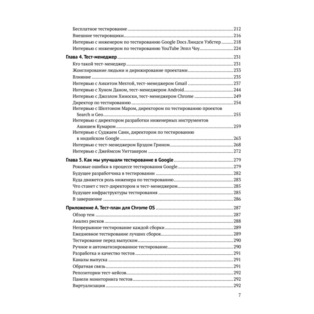 В книге описано тестирование программных продуктов в Google: как устроены процессы, как организованы команды, какие техники используются, кто ответственен за качество. Принципы, на которых построено тестирование в Google, применимы в проектах и компаниях любого размера. Авторы книги сами работали над продуктами Google, создавая инструменты тестирования, настраивая процессы и занимаясь непосредственно тестированием.