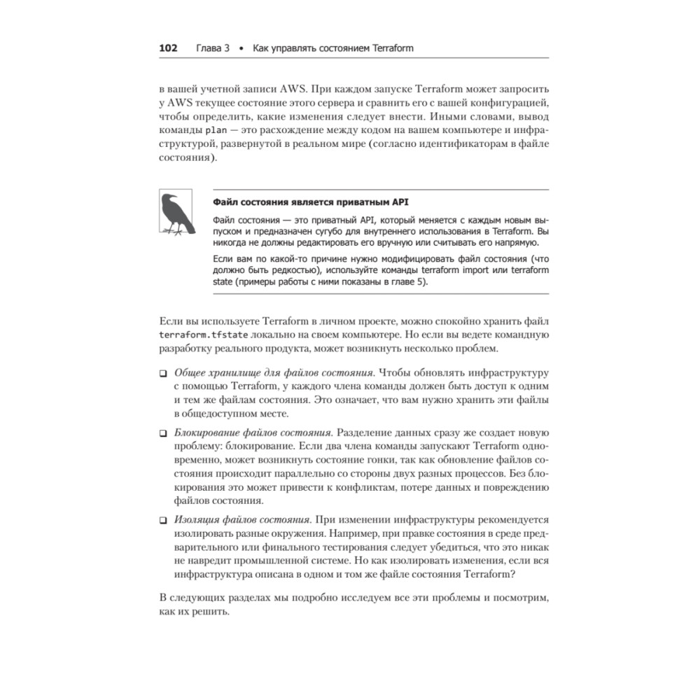 Евгений Брикман приводит простые и лаконичные примеры кода, который используется в Terraform для развертывания инфраструктуры и управления ею. Бывалые сисадмины, DevOps-инженеры и разработчики-новички быстро перейдут от основ Terraform к работе с полным стеком, способным поддерживать большие объемы трафика, и гарантируют стабильные условия для работы большой команды специалистов.