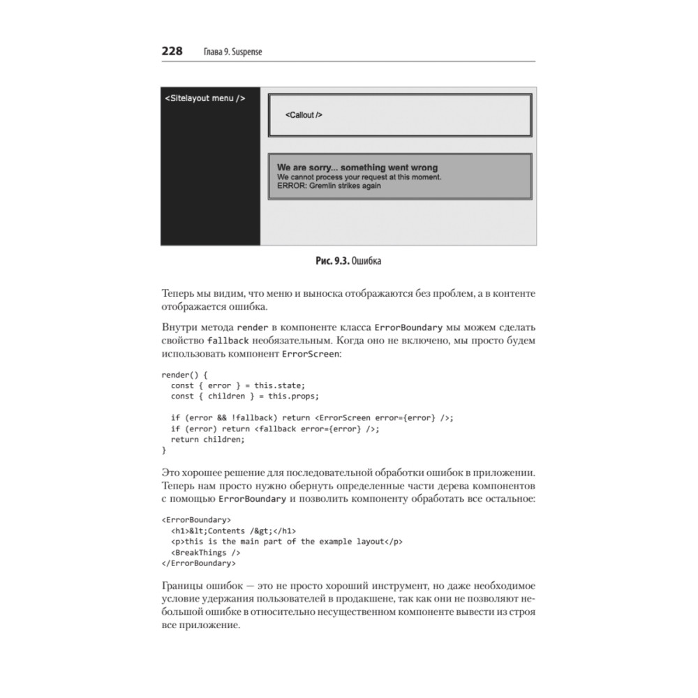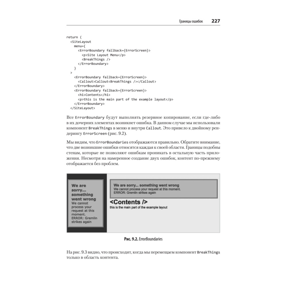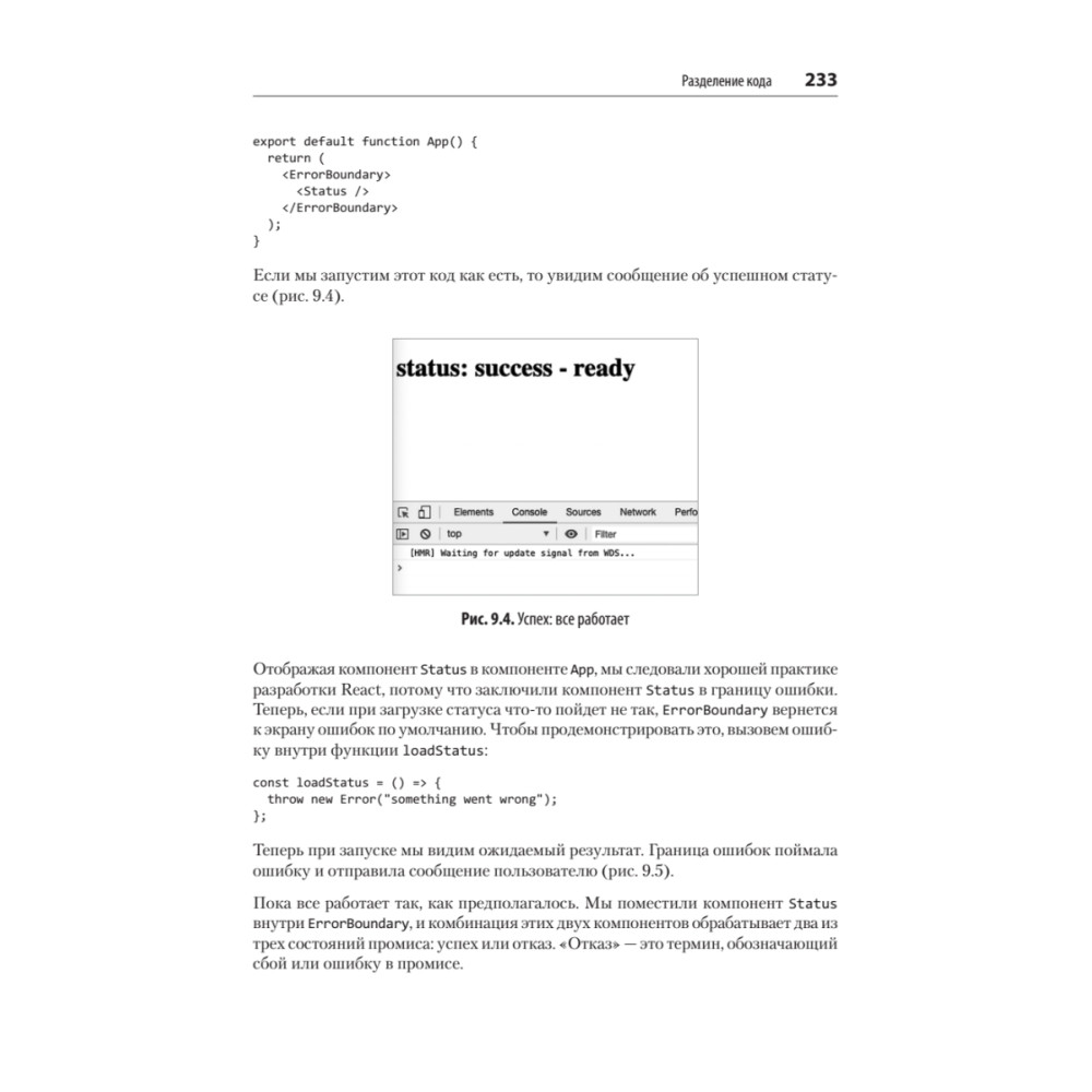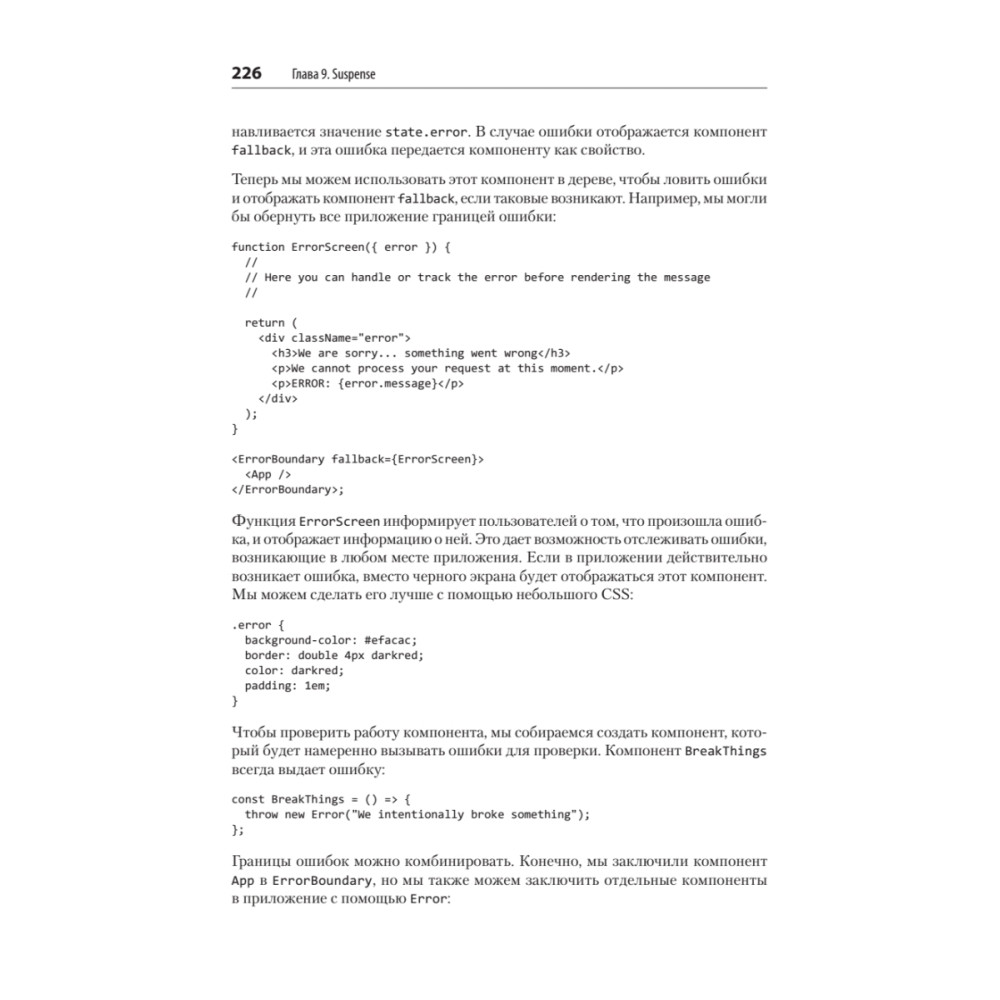 Хотите создавать эффективные приложения с помощью React? Тогда эта книга написана для вас. Познакомьтесь c лучшими практиками и шаблонами создания современного кода. Вам не потребуются глубокие знания React или функционала JavaScript — достаточно знакомства с принципами работы JavaScript, CSS и HTML. Алекс Бэнкс и Ева Порселло научат вас создавать пользовательские интерфейсы, которые будут динамически отображать изменения без необходимости перезагрузки страницы даже на крупномасштабных сайтах, работающих с огромными массивами данных. В этой книге вы: • Разберетесь с ключевыми аспектами функционального программирования на JavaScript. • Узнаете, как устроена работа React в браузере. • Создадите слои представления приложения с помощью компонентов React. • Научитесь управлять данными и тратить меньше времени на отладку. • Внедрите в проект хуки React для управления состояниями и перехвата данных. • Используете маршрутизатор для полноценной работы с одностраничными приложениями. • Научитесь структурировать приложения React с учетом особенности работы сервера.