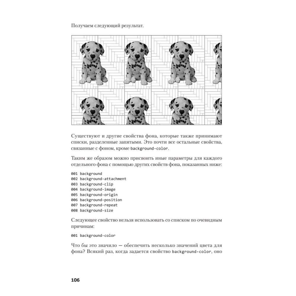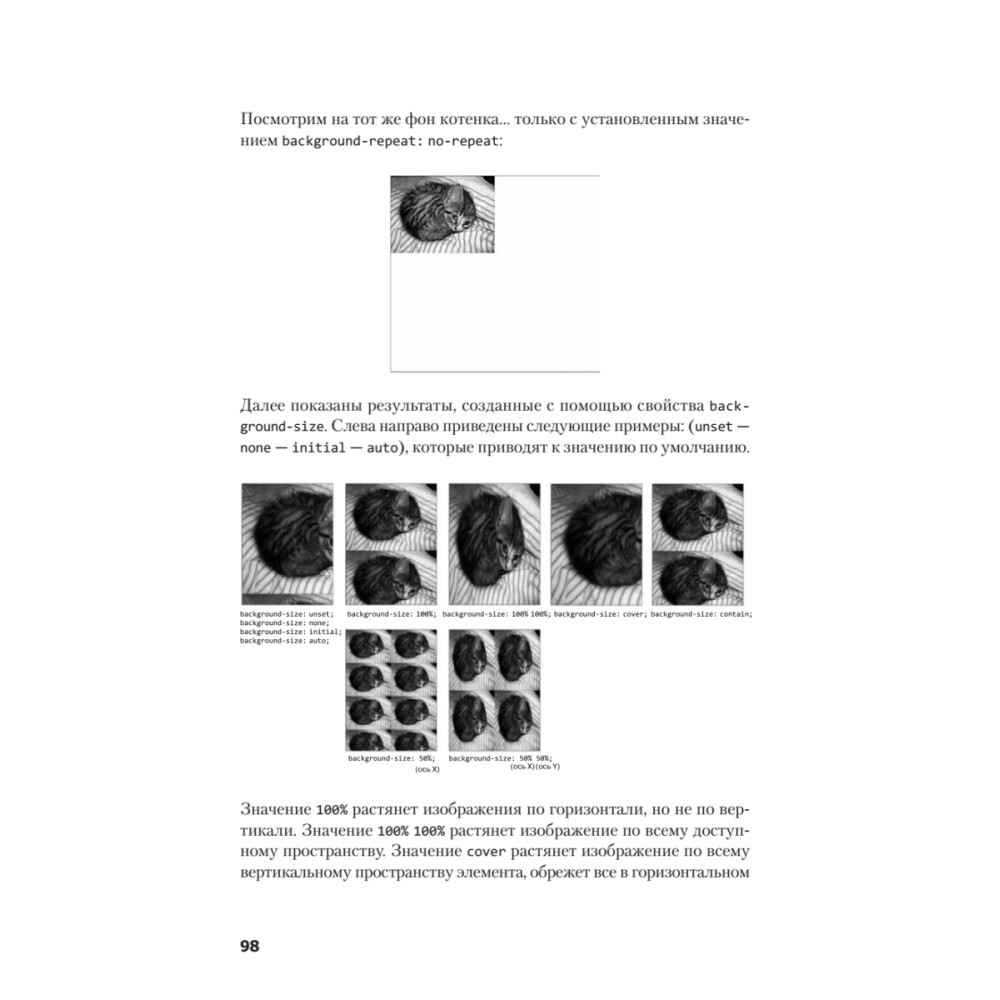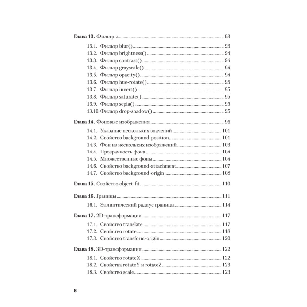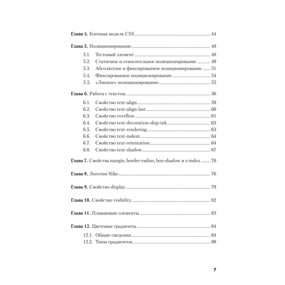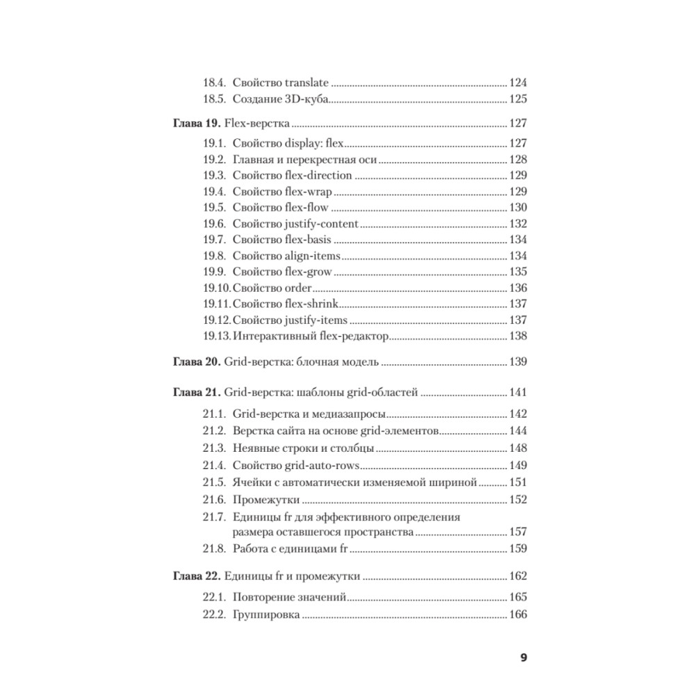 На 1 июня 2018 года CSS содержал 415 уникальных свойств, относящихся к объекту style в любом элементе браузера Chrome. Сколько свойств доступно в вашем браузере на сегодняшний день? Наверняка уже почти шесть сотен. Наиболее важные из них мы и рассмотрим. Грег Сидельников упорядочил свойства по основной категории (положение, размерность, макеты, CSS-анимация и т. д.) и визуализировал их работу. Вместо бесконечных томов документации – две с половиной сотни иллюстраций помогут вам разобраться во всех тонкостях работы CSS. Эта книга станет вашим настольным справочником, позволяя мгновенно перевести пожелания заказчика и собственное видение в компьютерный код!