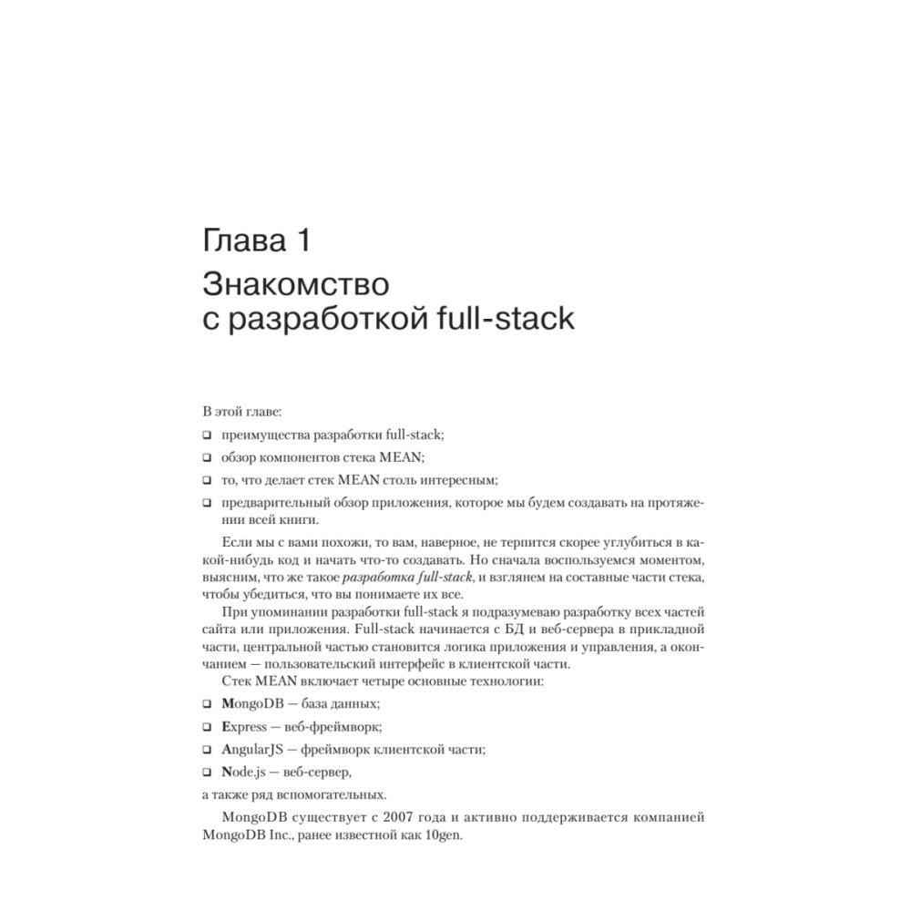 Обычно при веб-разработке на всех уровнях стека используются разные языки программирования. База данных MongoDB, фреймворки Express и AngularJS и технология Node.js вместе образуют стек MEAN — мощную платформу, на всех уровнях которой применяется всего один язык: JavaScript. Стек MEAN привлекателен для разработчиков и бизнеса благодаря простоте и экономичности, а конечные пользователи любят MEAN-приложения за их скорость и отзывчивость.