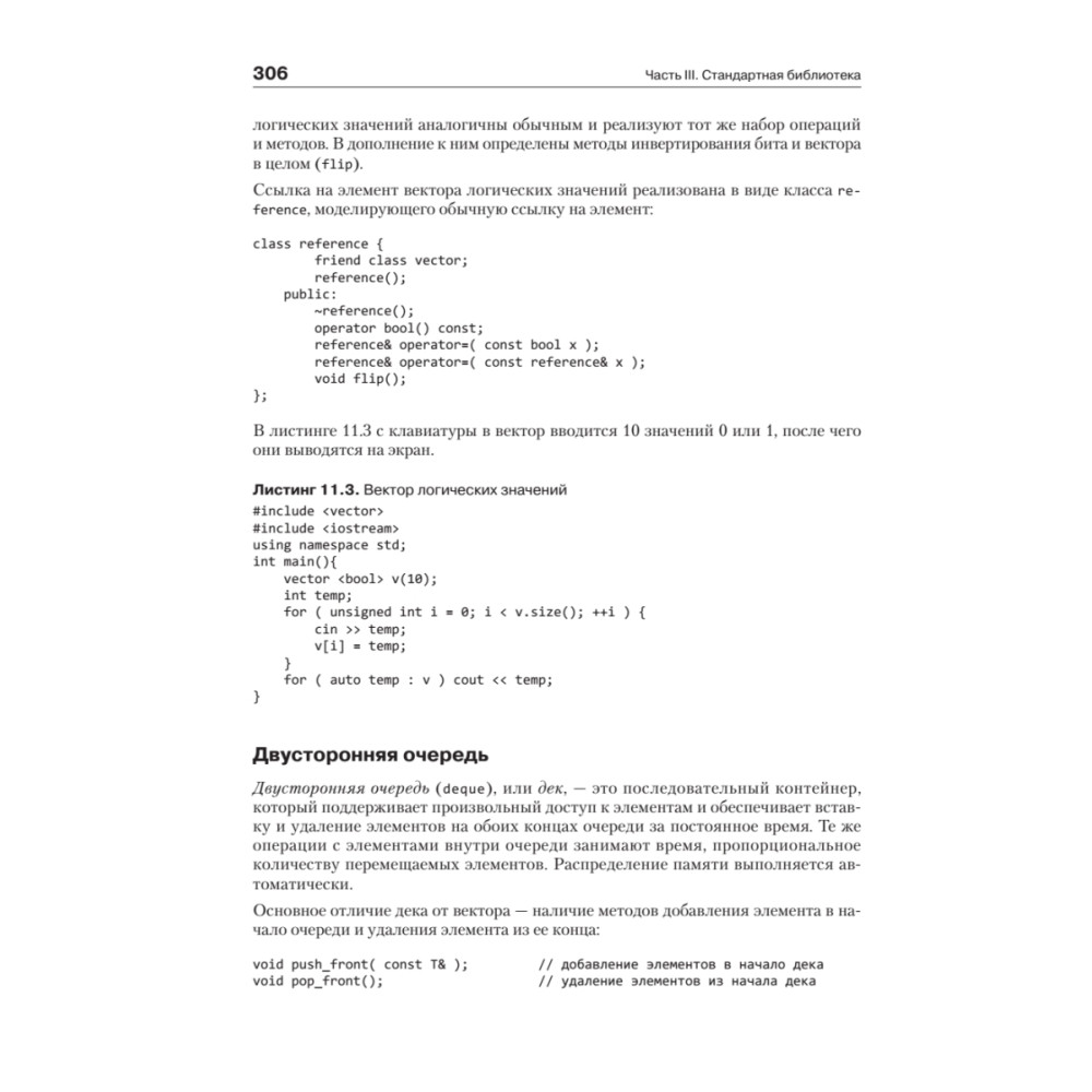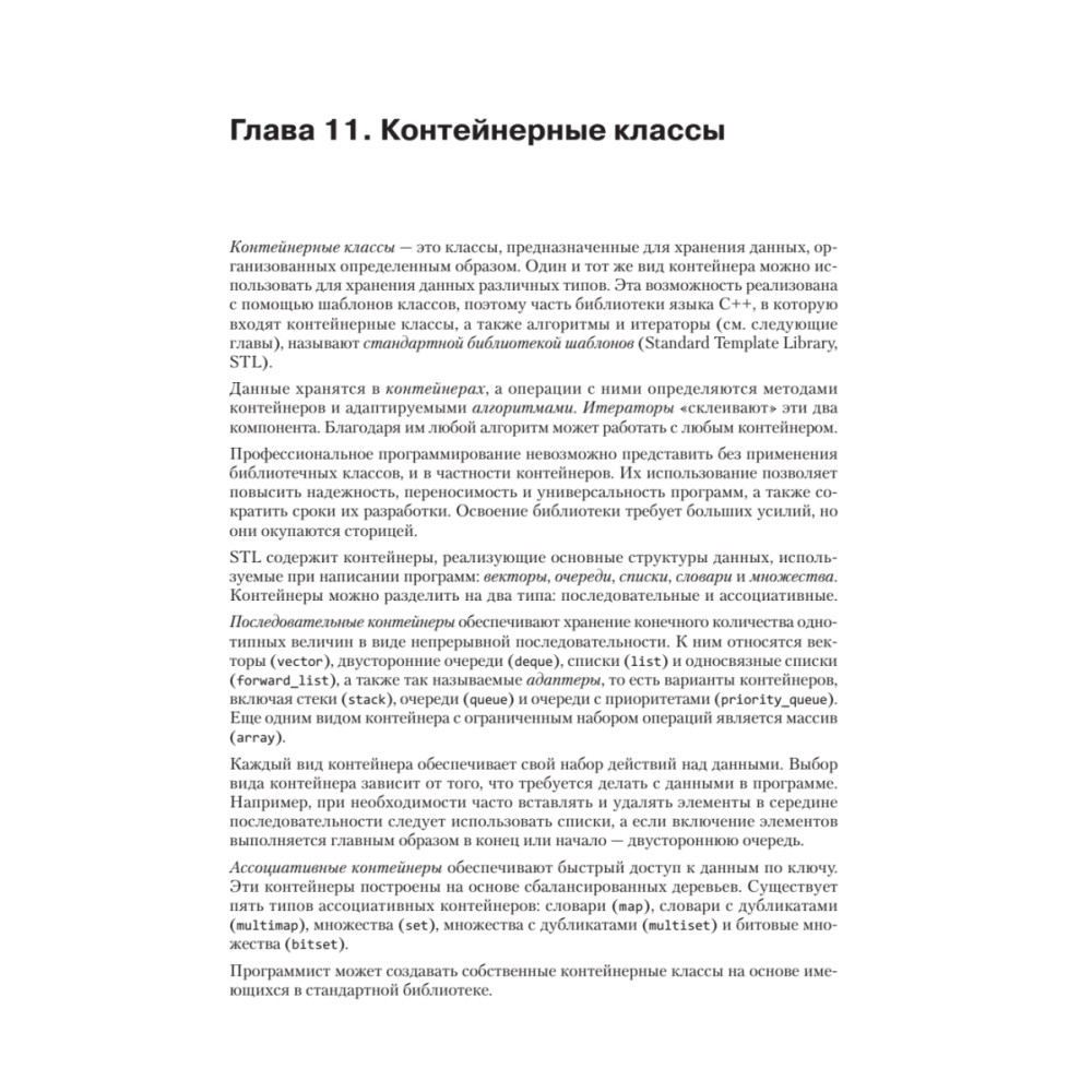 В новом издании учебника излагается язык программирования С++ в соответствии со стандартом ISO/IEC 14882 и новым образовательным стандартом. Учебник предназначен в первую очередь для студентов, изучающих язык с нуля, но и более искушенные в программировании специалисты найдут в нем немало полезной информации. В книге рассматриваются принципы объектно-ориентированного программирования и их реализация на C++, средства, возможности и конструкции языка, приводятся практические примеры, дается толчок к дальнейшему изучению этого и других языков программирования.