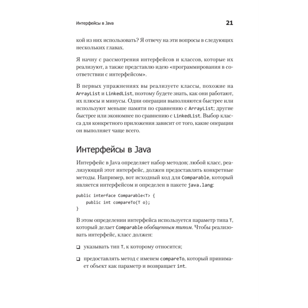 Изучите, как следует реализовывать эффективные алгоритмы на основе важнейших структур данных на языке Java, а также как измерять производительность этих алгоритмов. Каждая глава сопровождается упражнениями, помогающими закрепить материал. • Научитесь работать со структурами данных, например, со списками и словарями, разберитесь, как они работают • Напишите приложение, которое читает страницы Википедии, выполняет синтаксический разбор и обеспечивает навигацию по полученному дереву данных • Анализируйте код и учитесь прогнозировать, как быстро он будет работать и сколько памяти при этом потреблять • Пишите классы, реализующие интерфейс Map, пользуйтесь при этом хеш-таблицей и двоичным деревом поиска • Создайте простой веб-поисковик с собственным поисковым роботом: он будет индексировать веб-страницы, сохранять их содержимое и возвращать нужные результаты