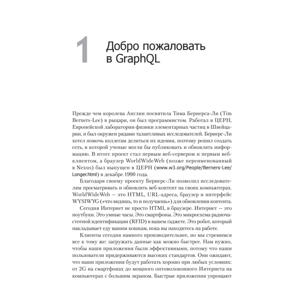 GraphQL – это язык запросов, альтернативный REST и ситуативным архитектурам веб-сервисов, самая революционная технология извлечения данных со времен Ajax. Точно как React изменил взгляд веб-разработчика на создание пользовательских интерфейсов, GraphQL полностью изменит практику передачи данных по HTTP. Это практическое руководство поможет вам приступить к работе с языком GraphQL.
