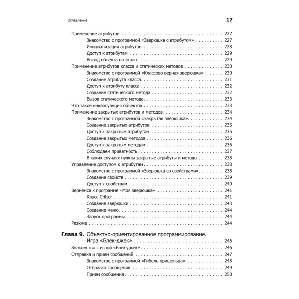 Эта книга — идеальное пособие для начинающих изучать Python. Руководство, написанное опытным разработчиком и преподавателем, научит фундаментальным принципам программирования на примере создания простых игр. Вы приобретете необходимые навыки для разработки приложений на Python и узнаете, как их применять в реальной практике.