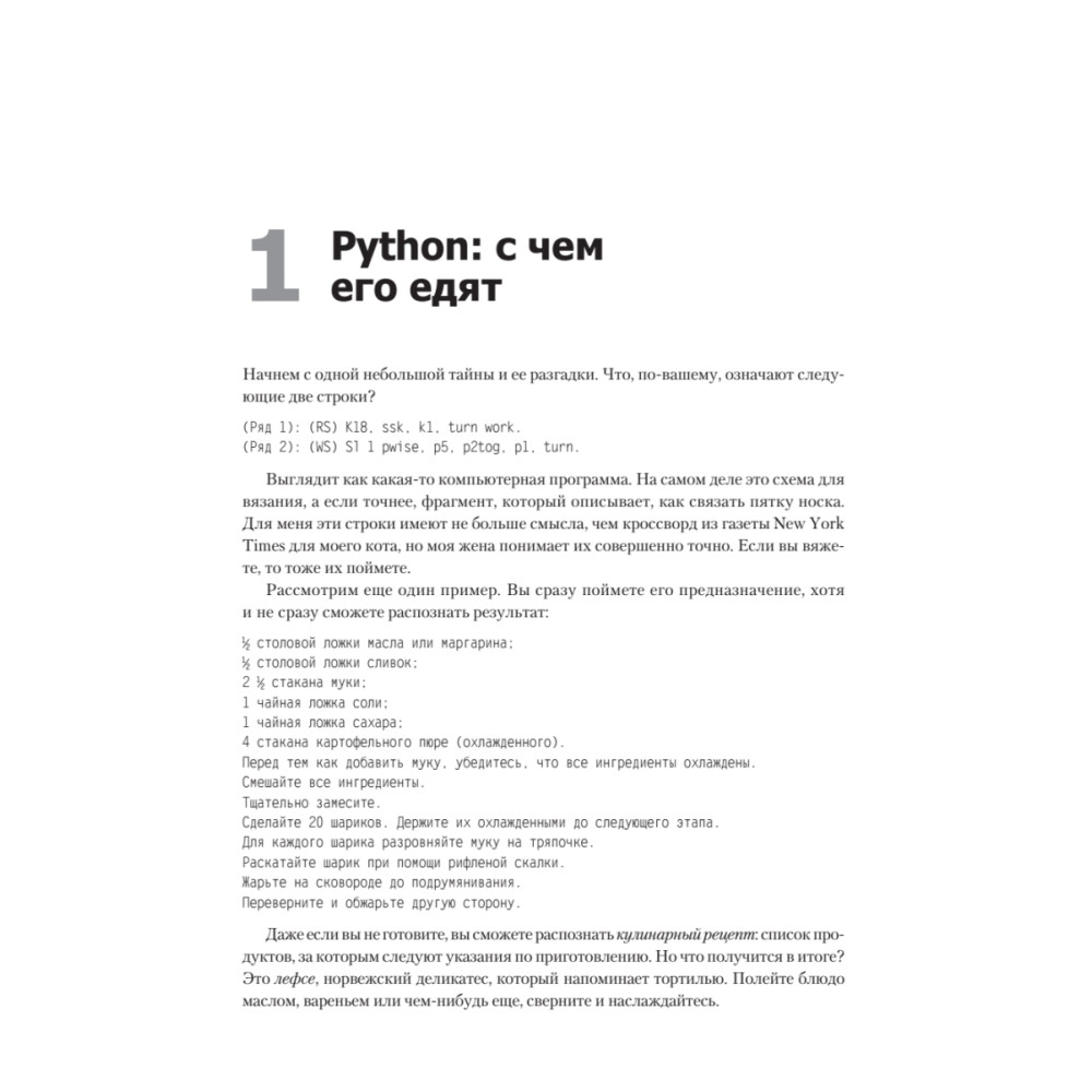 Прочитав эту книгу, вы не только убедитесь, что Python — это вкусно, но и освоите искусство тестирования, отладки, многократного использования кода, а также научитесь применять Python в различных предметных областях.