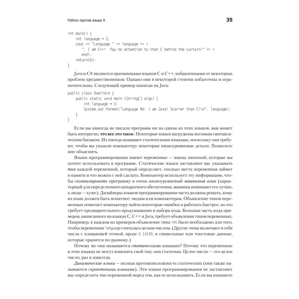 Эта книга идеально подходит как для начинающих программистов, так и для тех, кто только собирается осваивать Python, но уже имеет опыт программирования на других языках. В ней подробно рассматриваются самые современные пакеты и библиотеки Python. Стилистически издание напоминает руководство с вкраплениями кода, подробно объясняя различные концепции Python 3. Под обложкой вы найдете обширный материал от самых основ языка до сравнительно сложных и узких тем.