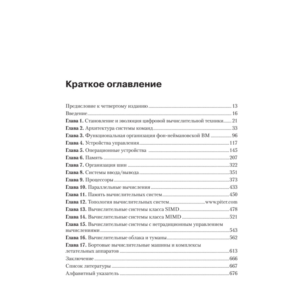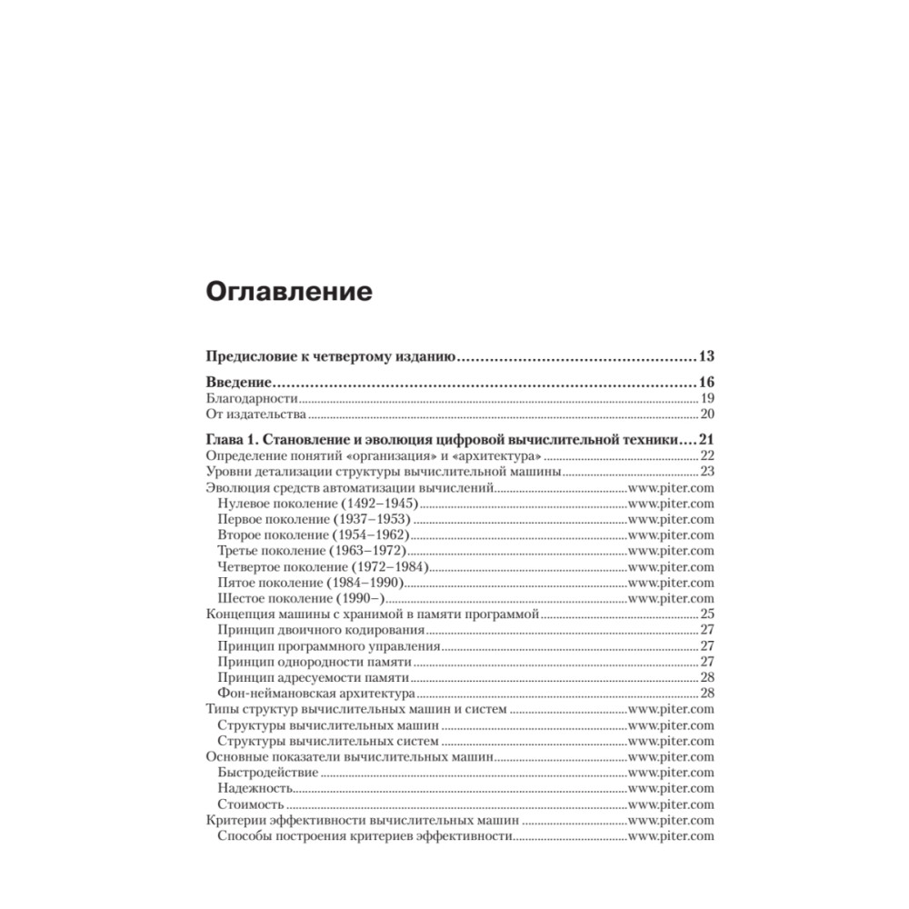 Основная задача данной книги — обучение основным принципам построения и функционирования современных вычислительных машин и вычислительных систем, привитие навыков их анализа и применения. Учебник рассматривает все аспекты, необходимые для понимания организации и архитектуры современных вычислительных машин и систем: основные характеристики, области применения ЭВМ различных классов; функциональную и структурную организацию процессора; управление памятью; основные стадии выполнения команд; прерывания; системы ввода-вывода; периферийные устройства; архитектурные особенности организации различных классов ЭВМ; параллельные системы; многомашинные и многопроцессорные вычислительные системы. В основу книги положен многолетний университетский опыт преподавания соответствующих дисциплин.
