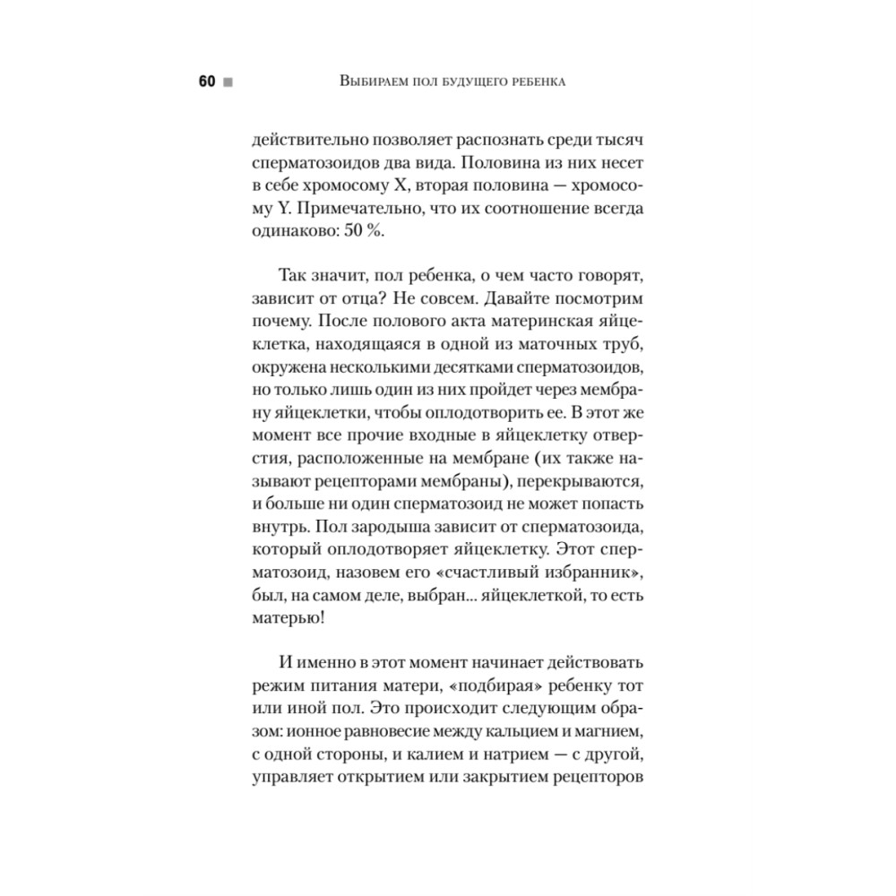 Современные международные исследования подтверждают, что соблюдая определенный режим питания и некоторые другие условия, можно с достаточно высокой степенью вероятности зачать ребенка желаемого пола. Французский акушер-гинеколог Франсуа Папа многие годы изучал эту методику на практике, помогая своим пациентам, и добился выдающихся результатов - почти 100% гарантии зачатия ребенка именно того пола, о котором мечтают будущие родители. Теперь вы тоже можете воспользоваться его рекомендациями, подробно описанными в этой книге, уже ставшей бестселлером во Франции и других странах.