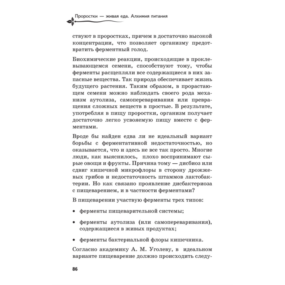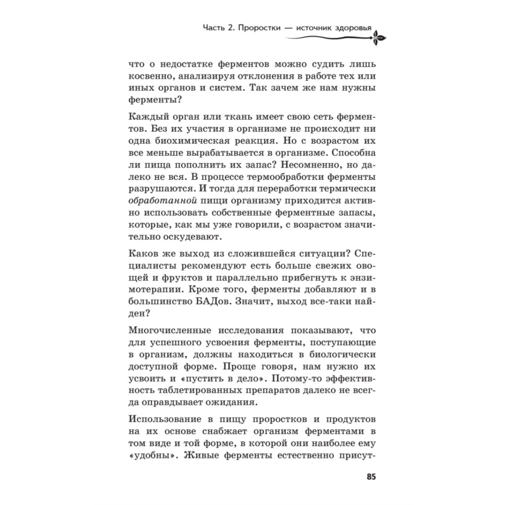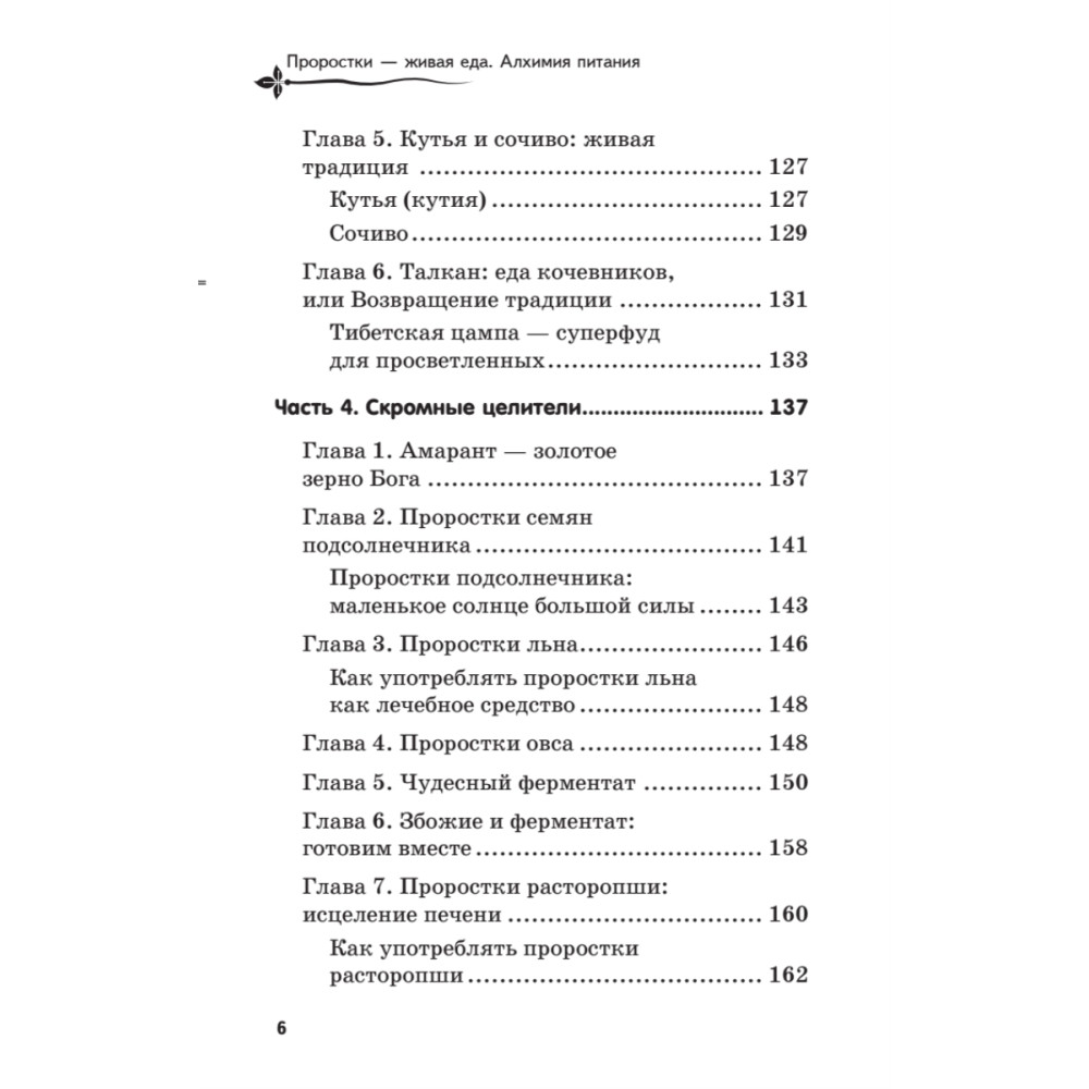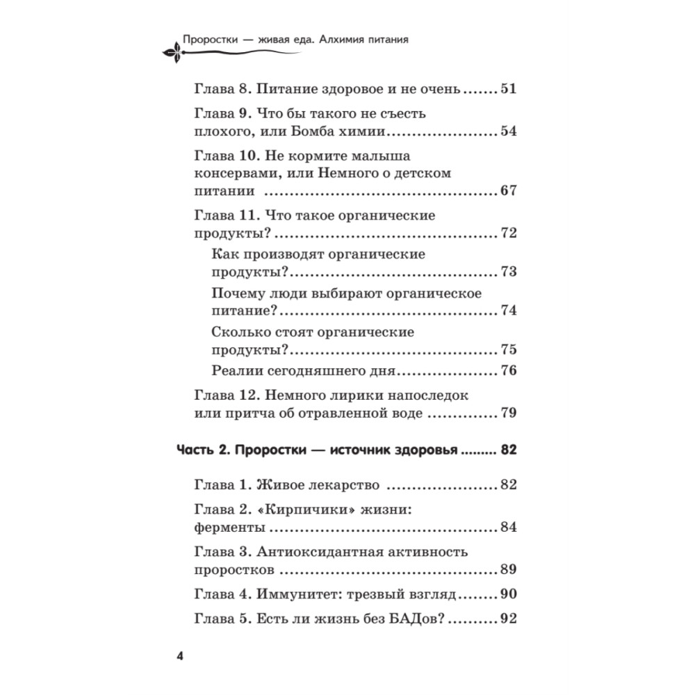 Проростки… Этот удивительный продукт в полной мере опровергает расхожее мнение о том, что полезное означает невкусное. Бездрожжевой хлеб сбожие, зеленые коктейли с проростками, целебный ферментат, живые сладости — все эти продукты исключительно полезны, вкусны и доступны людям с невысоким доходом. В книге вы найдете рекомендации, которые помогут легко, без лишних затрат времени ввести в свой рацион живую еду — продукты на основе проростков, или суперфуды. Книга приглашает приоткрыть завесу тайны над алхимией питания, рассказывает об информационных и частотно-волновых свойствах продуктов, помогает по-новому взглянуть на детское питание и пищевые добавки. Автор надеется, что слова Гиппократа «Пусть пища станет вашим лекарством, а лекарство — пищей» воплотятся в реальности.