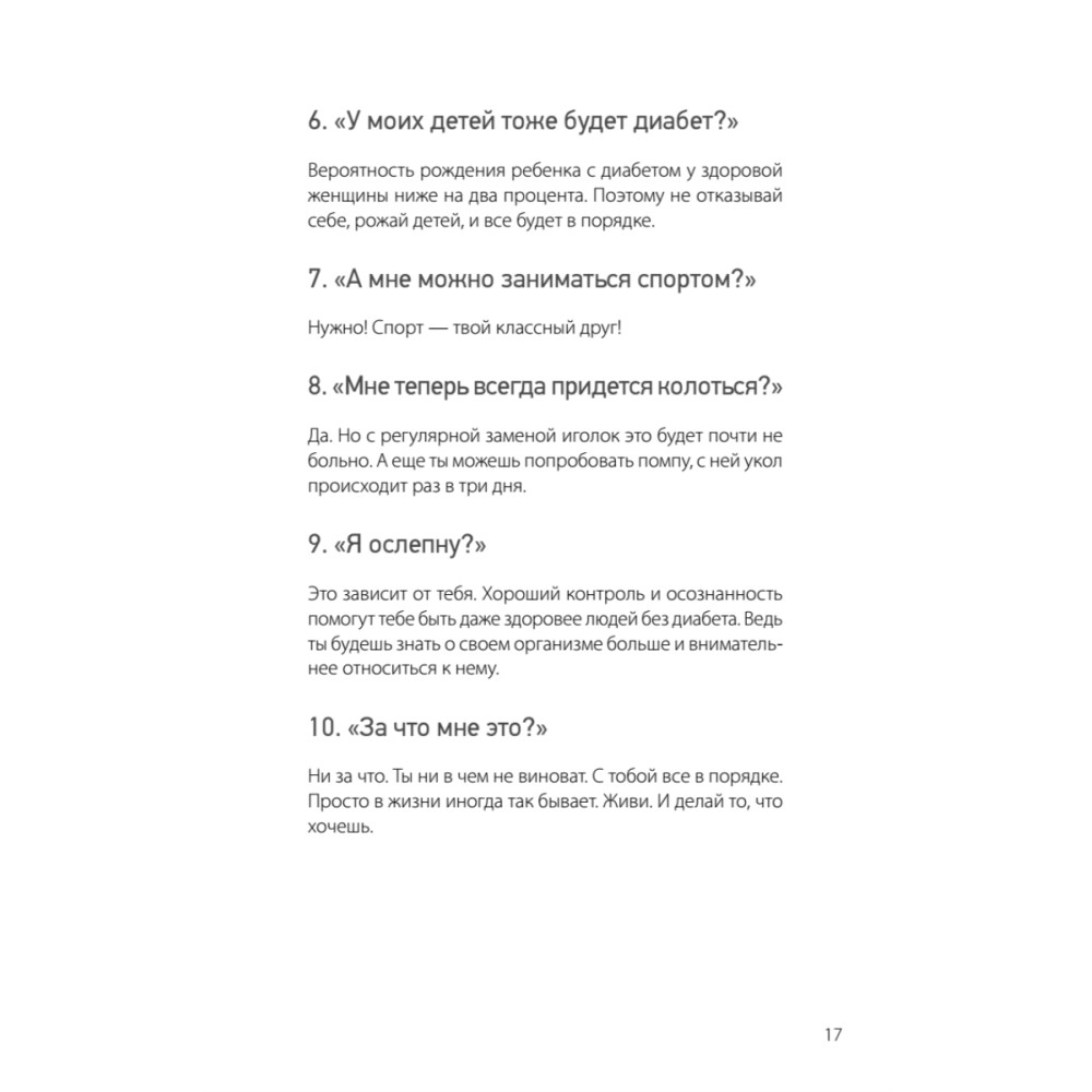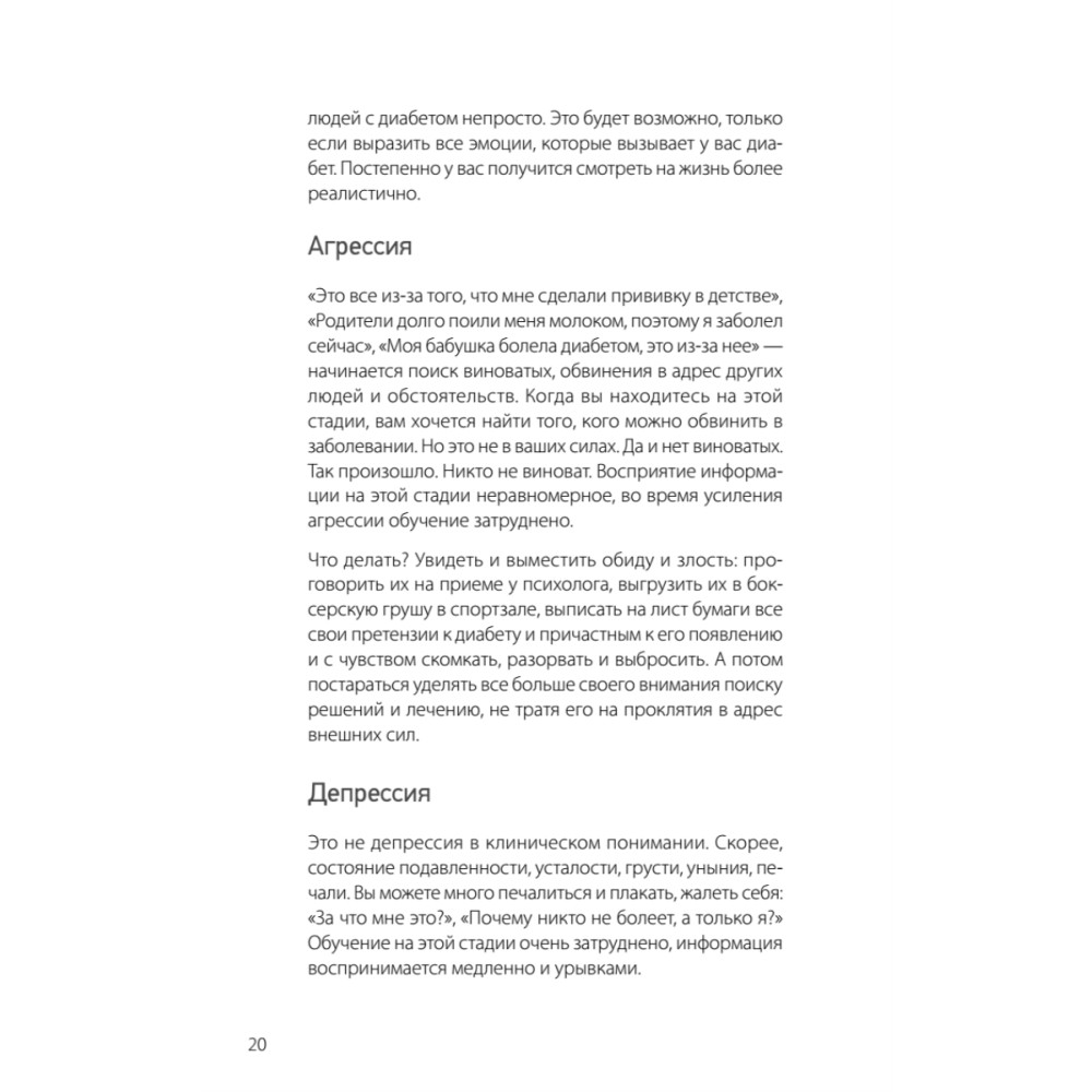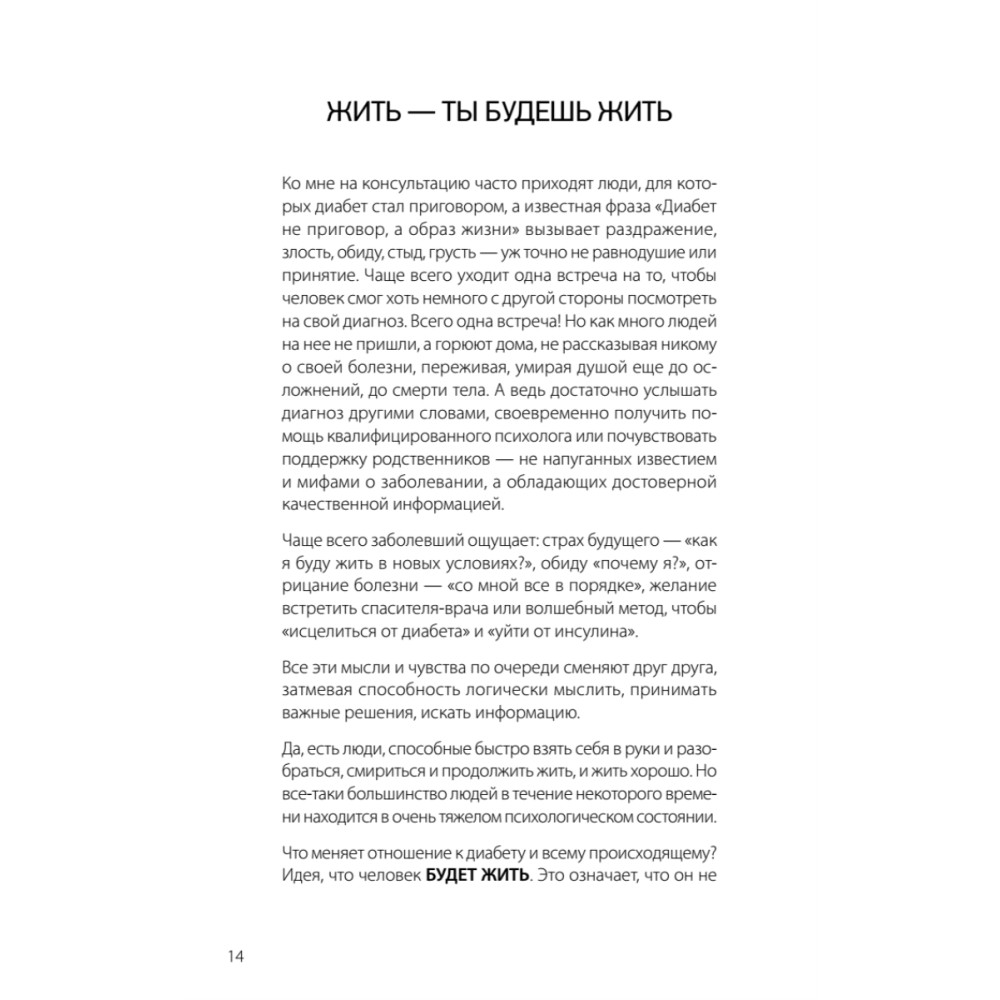 Татьяна Загоровская – психолог, гештальт-терапевт, соавтор книги "Сахарный человек", ведущая индивидуальных консультаций и групп поддержки для людей с диабетом и автор статей по психологии диабета — живет с этим диагнозом более 14 лет. В своей книге она постаралась дать ответы на все вопросы, которые мучают пациентов и их родных. Диагноз «сахарный диабет» — всегда тяжелое потрясение для человека, столкнувшегося с этой болезнью. Очень важно, чтобы в такой момент нашелся тот, кто поддержит, объяснит, что жизнь продолжается и нужно найти в себе силы двигаться дальше. Прочитав эту книгу, написанную психологом, человеком с диабетом, вы успокоите свои страхи и сомнения и поймете, что диабет не безжалостный разрушитель личного и семейного счастья. Если приручить этого зверя, можно развить много ценных качеств и полезных навыков, укрепить веру в себя и наслаждаться полноценной жизнью! Известно, что людям, живущим с хроническими заболеваниями, очень нужна разносторонняя поддержка. И сахарный диабет не является исключением, ведь всем, кто справляется с этой непростой болезнью, нужны советы не только врачей, но и психологов. К сожалению, профессиональная психологическая помощь в данной области до сих пор доступна далеко не всем. Именно поэтому так важно появление книги о психологических аспектах жизни с сахарным диабетом. Читайте ее и живите в мире с собой! Евгения Патракеева, врач-эндокринолог, ассистент кафедры факультетской терапии ПСПбГМУ им. акад. И. П. Павлова, основатель проекта «Правило 15» «Правило 15» — проект, объединяющий неравнодушных людей, вовлеченных в проблему сахарного диабета: врачей, работающих в различных медицинских учреждениях, психологов, самих людей, живущих с этой болезнью. Цель этого объединения — поддержка тех, кто не знает, куда обратиться за помощью по поводу сахарного диабета: медицинской, психологической, информационной или социальной.