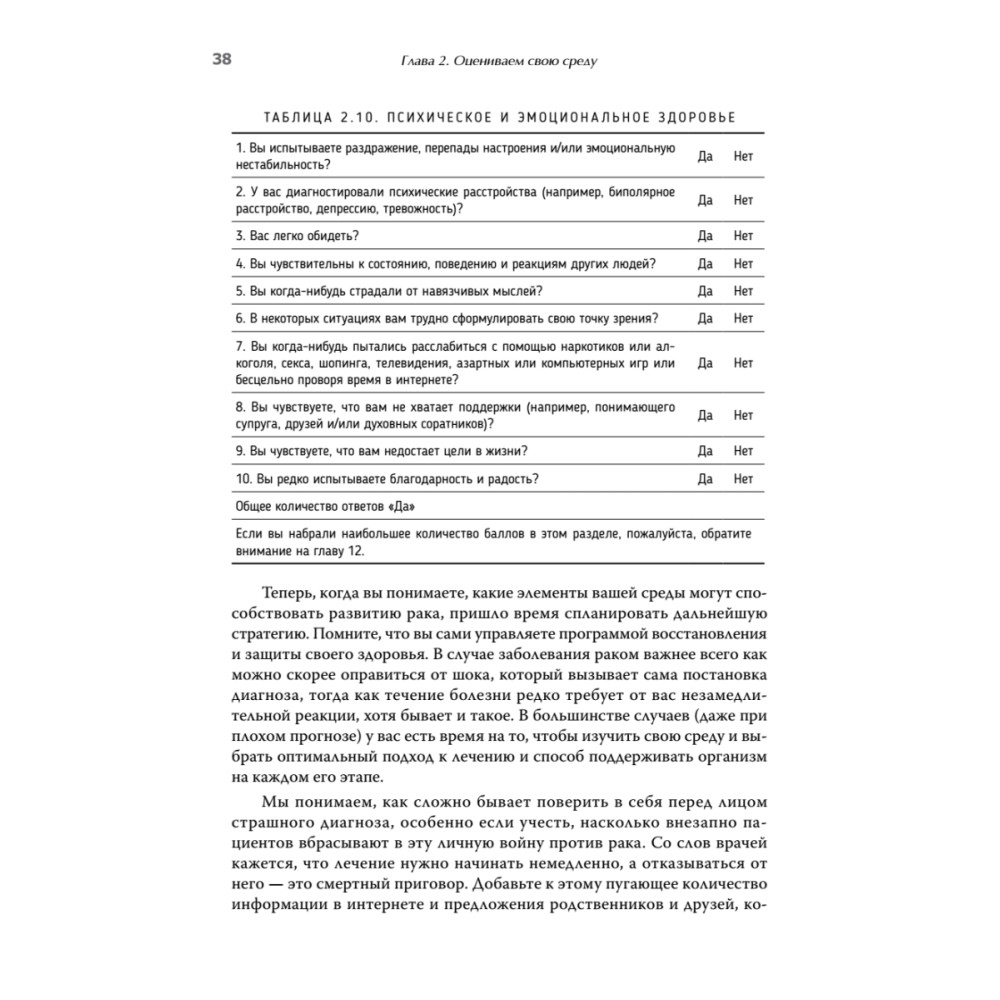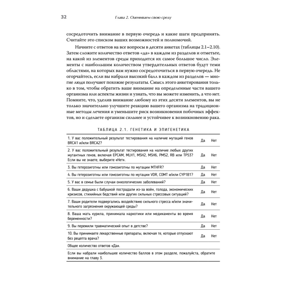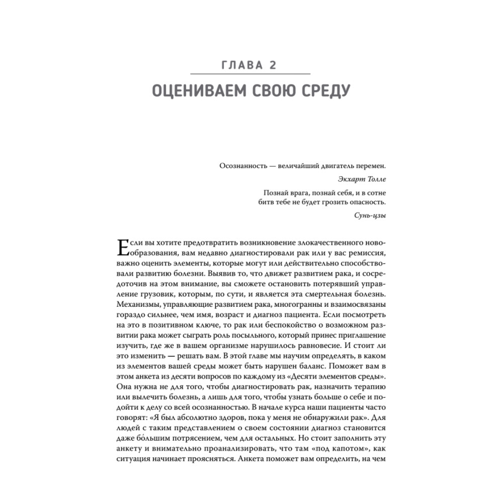 Авторы книги — натуропат, практик восточной медицины и онколог Наша Уинтерс, победившая рак IV стадии, и специалист по диетотерапии Джесс Хиггинс Келли. Они подробно рассказывают о механизмах и причинах возникновения рака и дают рекомендации, как нужно изменить образ жизни и питание, чтобы предотвратить возникновение болезни или преодолеть ее.
