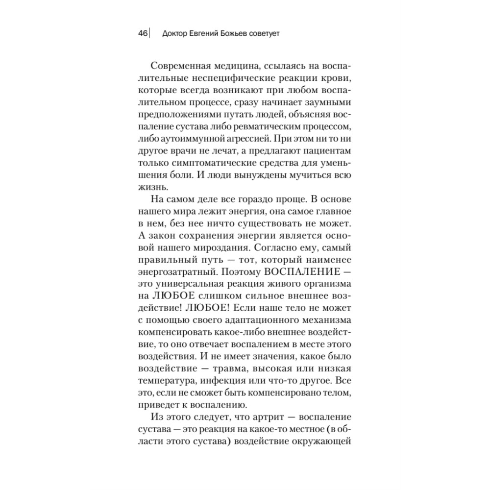 Евгений Божьев — невролог, мануальный терапевт, сторонник альтернативной медицины — учит исцелению без лекарств и докторов. Его уникальные оздоровительные методики проверены годами медицинской практики, его авторские видео на канале YouTube набирают миллионы просмотров. Доктор Божьев убежден: любое заболевание можно легко вылечить. Эта книга открывает секреты того, как жить без боли. Регулярно выполняя простые упражнения, вы навсегда забудете о боли в суставах и вернете себе радость движений!