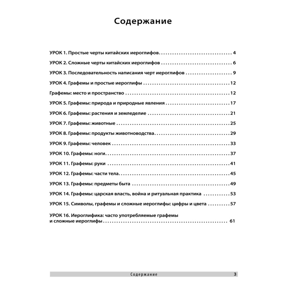 В этих обучающих прописях даны основы иероглифики китайского языка. В книге 16 уроков, каждый из которых состоит из теоретической части и прописей для отработки пройденной темы. Материал изложен от простого к сложному: сначала мы учимся писать иероглифические черты, затем осваиваем правила написания иероглифов, после этого переходим к изучению базовых иероглифических элементов — графем и заканчиваем сложными иероглифами. Прописи помогут вам: • быстро разобраться в иероглифической системе китайского языка; • освоить навыки китайского письма; • выучить основные иероглифические элементы, что сделает ваше дальнейшее обучение гораздо более легким и эффективным; • научиться понимать, как устроены сложные иероглифы, что в дальнейшем значительно сократит время их запоминания и сделает процесс обучения более увлекательным. Книга может использоваться самостоятельно и как дополнение к учебному пособию «Самоучитель. Китайский язык для начинающих».