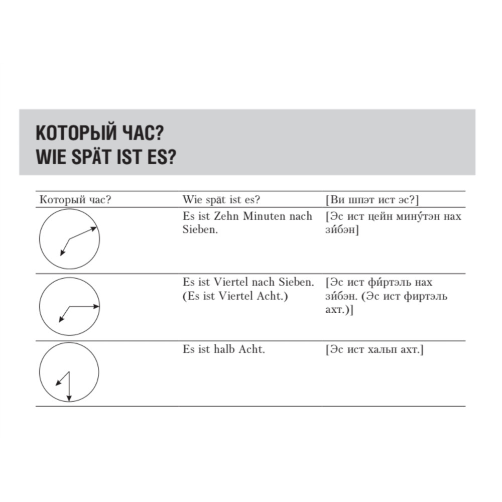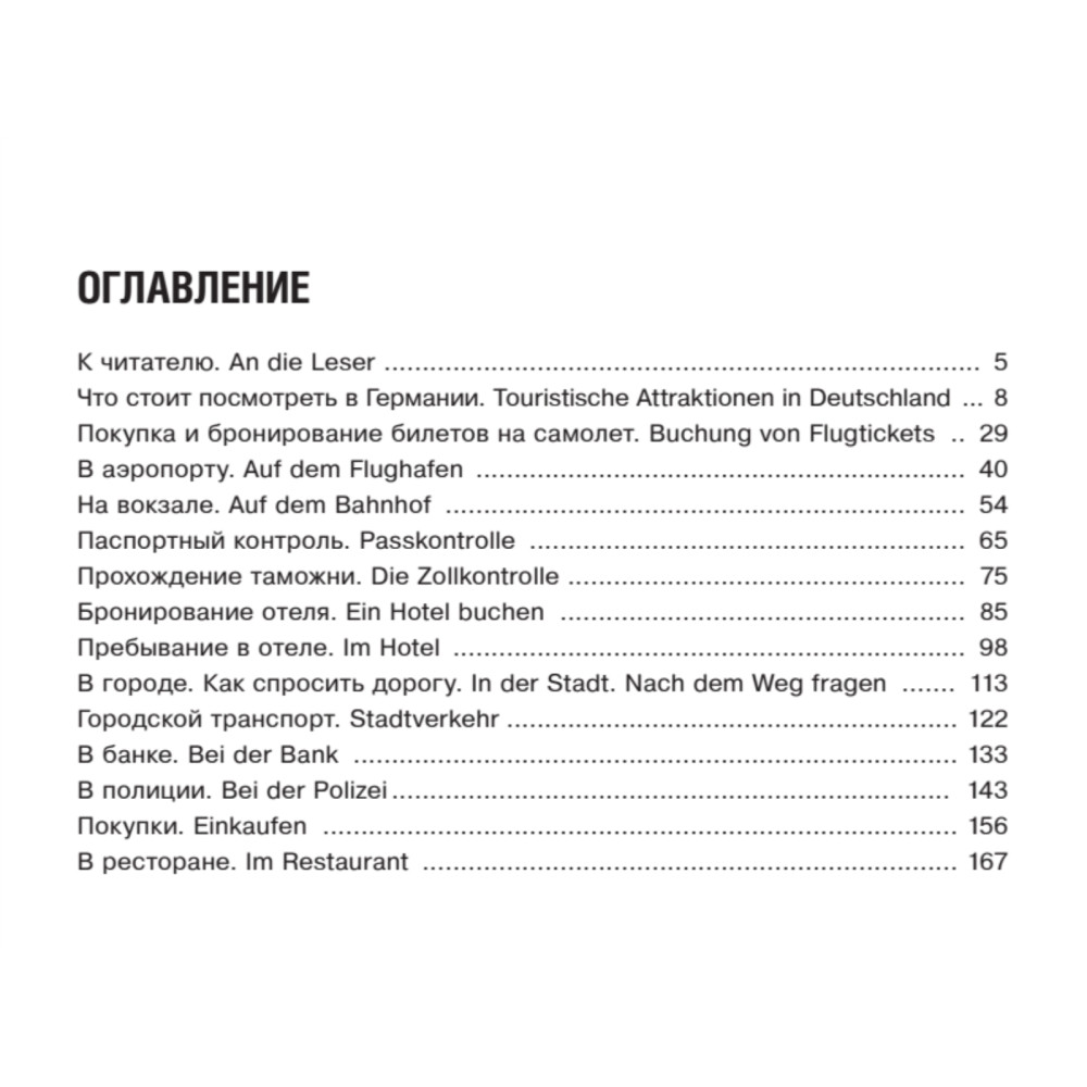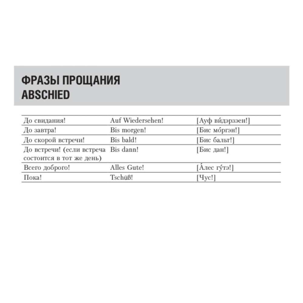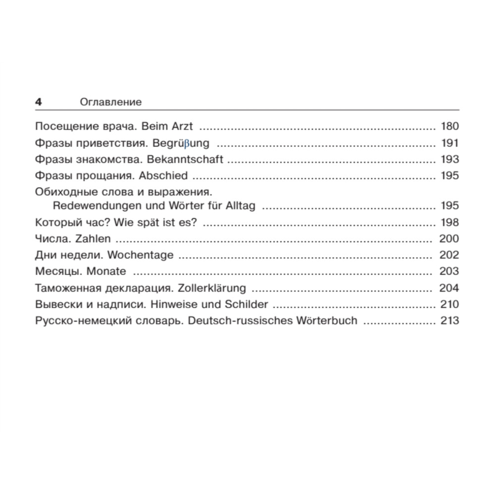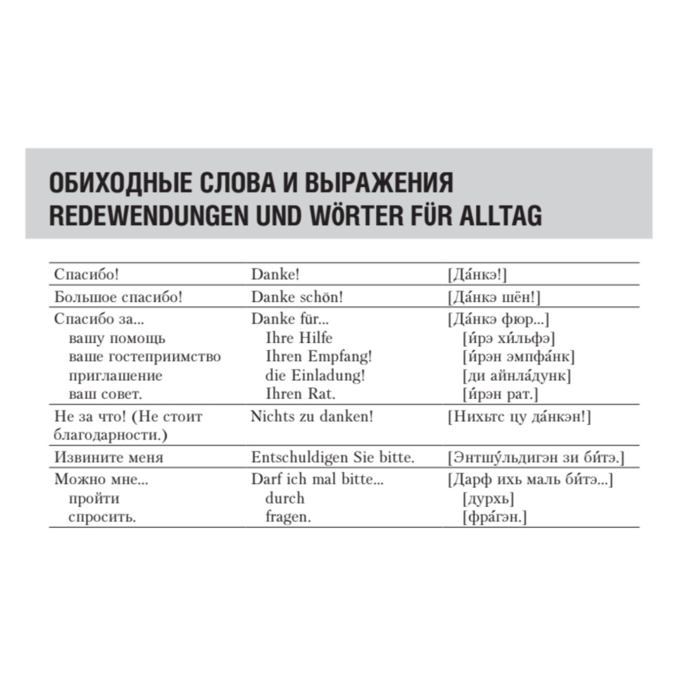 Разговорник составлен опытными путешественниками, гидом-переводчиком, а также носителем немецкого языка, и включает в себя все основные фразы, необходимые в различных ситуациях за границей. Вы легко сможете объясниться в отеле, в магазине, ресторане, при заказе билетов на поезд и самолет, в беседе с врачом, полицейским и так далее. Кроме того, в разговорник включены полезные сведения для туристов и простые фразы для общения. Для вашего удобства все фразы снабжены русской транскрипцией, а диалоги будут особенно полезны изучающим немецкий язык. Путешествуйте и общайтесь с удовольствием!