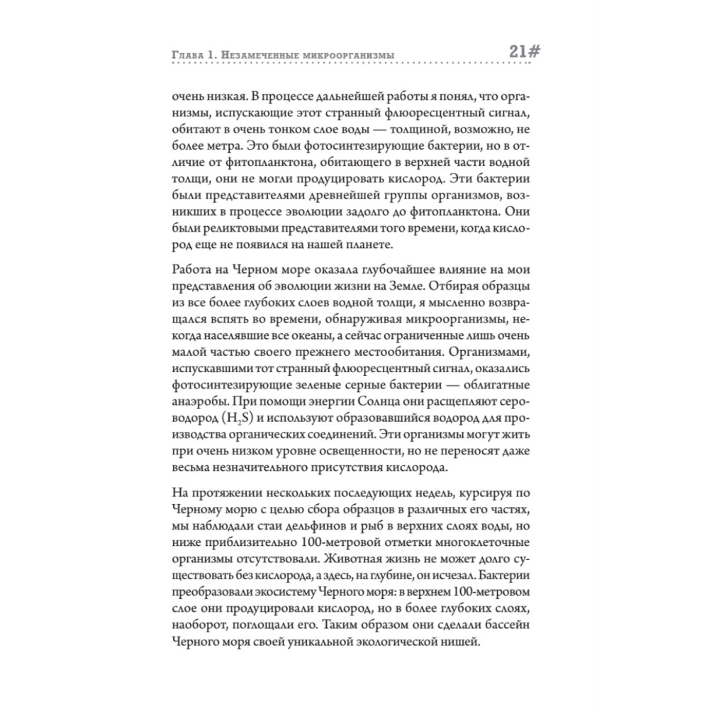 Известный американский биолог-океанограф Пол Фальковски, член Американского геофизического союза, Американской академии наук и искусств, рассказывает, как и почему бактерии смогли пережить все катаклизмы и приспособиться к меняющейся среде, а также демонстрирует читателю, что всё наше существование стало возможным только благодаря их эволюции, и они — наши истинные предки и настоящие двигатели жизни на Земле.