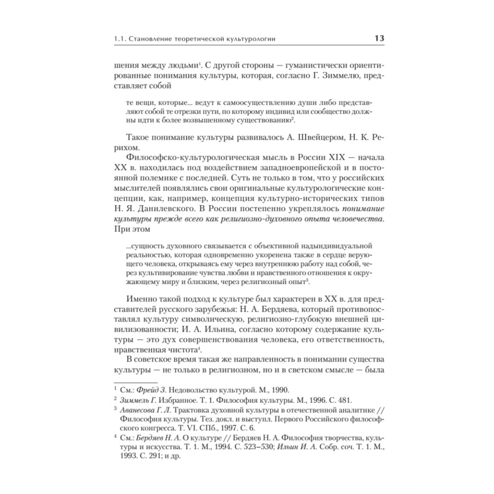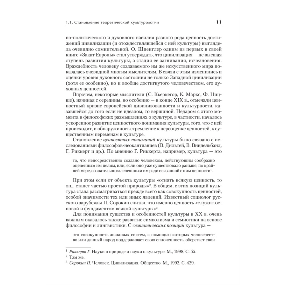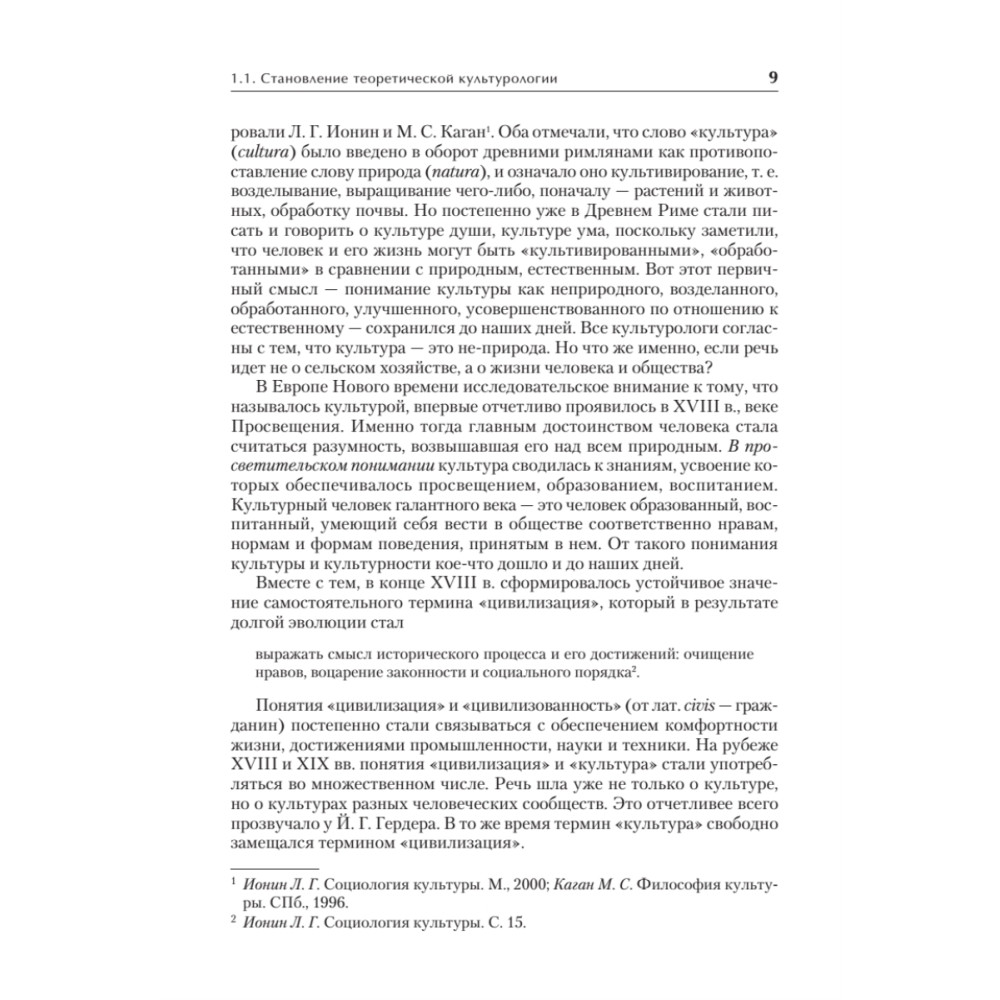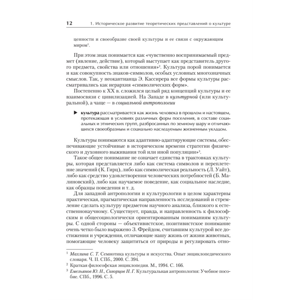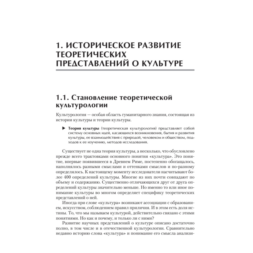 Учебное пособие создано коллективом высококвалифицированных специалистов кафедры теории и истории культуры Санкт-Петербургского государственного университета культуры и искусств. В нем изложены теоретические представления о культуре, ее сущности, становлении и развитии, особенностях и методах изучения. В книге также рассматриваются такие вопросы, как преемственность и новаторство в культуре, культура повседневности, семиотика культуры и межкультурных коммуникаций. Большое место в издании уделено специфике современной, в том числе постмодернистской, культуры, векторам дальнейшего развития культурологии. Учебное пособие полностью соответствует Государственному образовательному стандарту по предмету «Теория культуры» и предназначено для студентов, обучающихся по направлению «Культурология», и преподавателей культурологических дисциплин. Написанное ярко и доходчиво, оно будет интересно также историкам, философам, искусствоведам и всем тем, кого привлекают проблемы развития культуры.