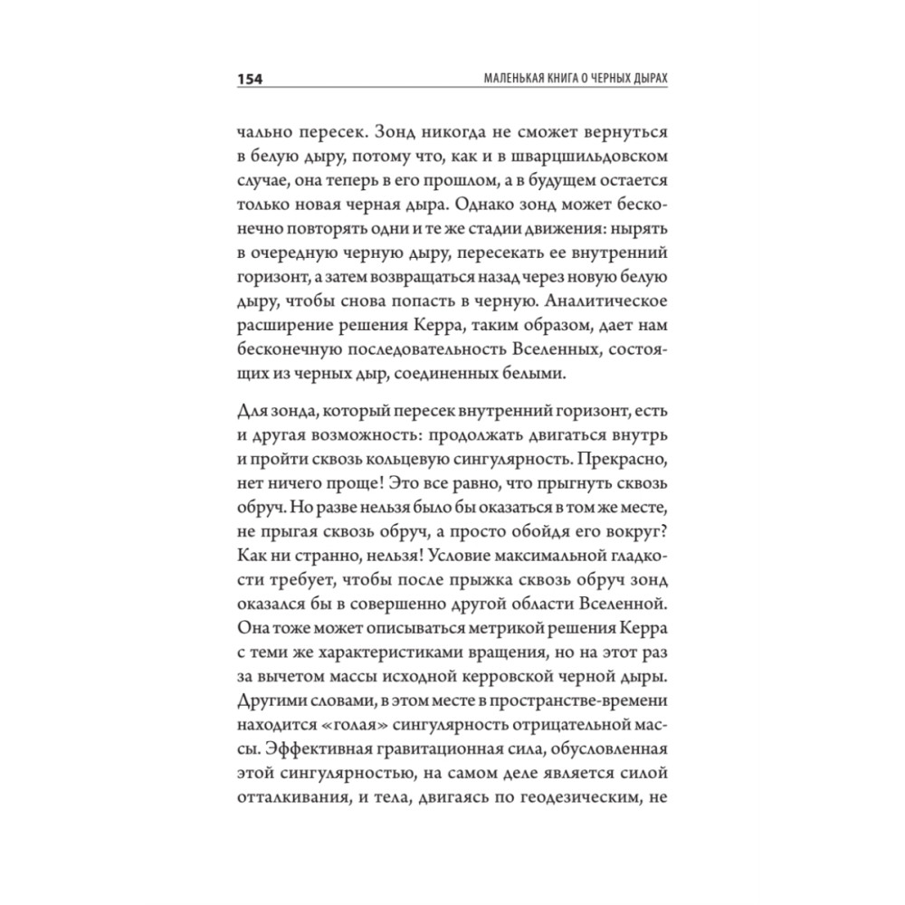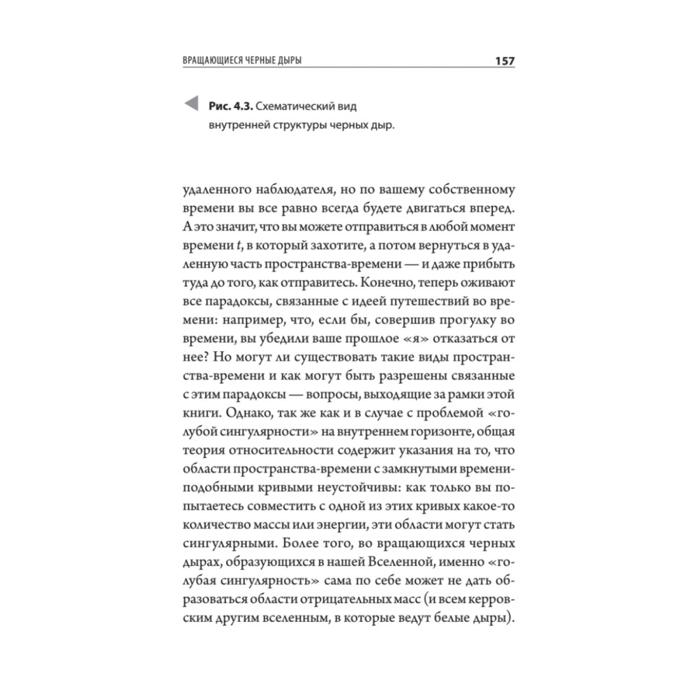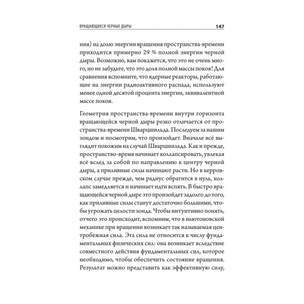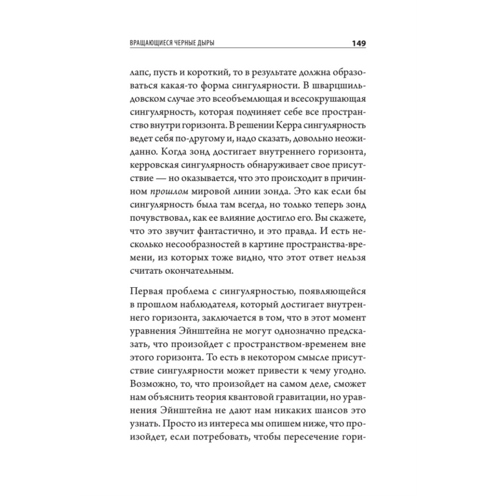 Несмотря на сложность рассматриваемой темы, профессор Принстонского университета Стивен Габсер предлагает емкое, доступное и занимательное введение в эту одну из наиболее обсуждаемых сегодня областей физики. Черные дыры — это реальные объекты, а не просто мысленный эксперимент! Черные дыры исключительно удобны с точки зрения теории, так как математически они гораздо проще большинства астрофизических объектов, например звезд. Странности начинаются, когда выясняется, что черные дыры в действительности не такие уж черные. Что же в действительности находится внутри них? Как можно представить себе падение в черную дыру? А может быть, мы уже падаем в нее и просто еще не знаем об этом?
