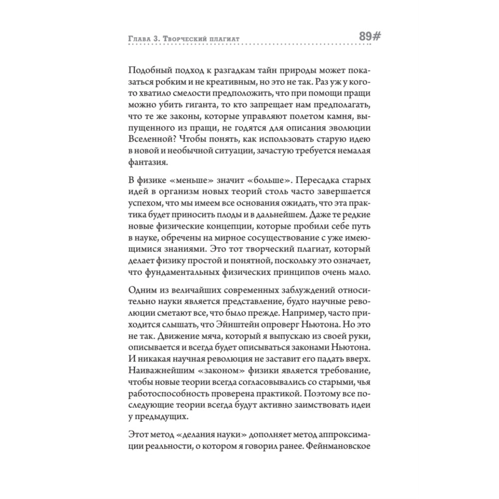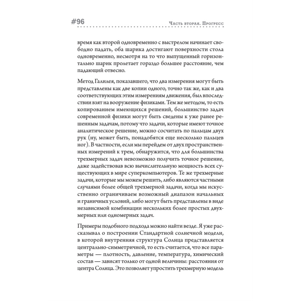 Задача пока далека от окончательного решения, — ответил физик, — мне необходимо еще десять лет, пятьдесят миллионов долларов, команда аспирантов и экспериментальная лаборатория. Но я уже построил модель движения сферического коня в вакууме… Бородатый анекдот Часто физика представляется людям сложной, недоступной для понимания тайной, открытой лишь посвященным. Но каждый из нас, даже тот кто ненавидел физику в школе и постарался забыть навсегда об этом предмете, с огромным удовольствием слушает рассказы о мистических явлениях, происходящих на переднем крае науки. Способен ли обычный человек, преодолев предубеждения, получить насладиться физикой? Надеемся, что да. Решая любую задачу мы каждый раз пытаемся определить, что будет для нас важно, а что нет. Мы постоянно пытаемся заставить адаптировать то, что уже работает, к новым ситуациям. Поступая таким образом, мы обнаруживаем замечательную скрытую Вселенную, существующую за пределами наших чувств, гораздо более простую и симметричную чем та, которая дана нам в ощущениях. И всюду, куда мы ни бросим взгляд, нас по-прежнему окружает табун сферических коней.