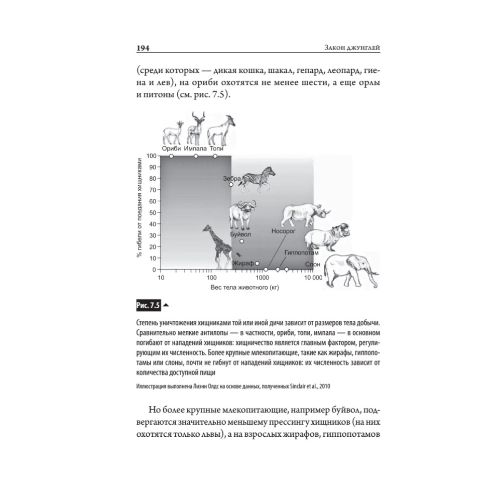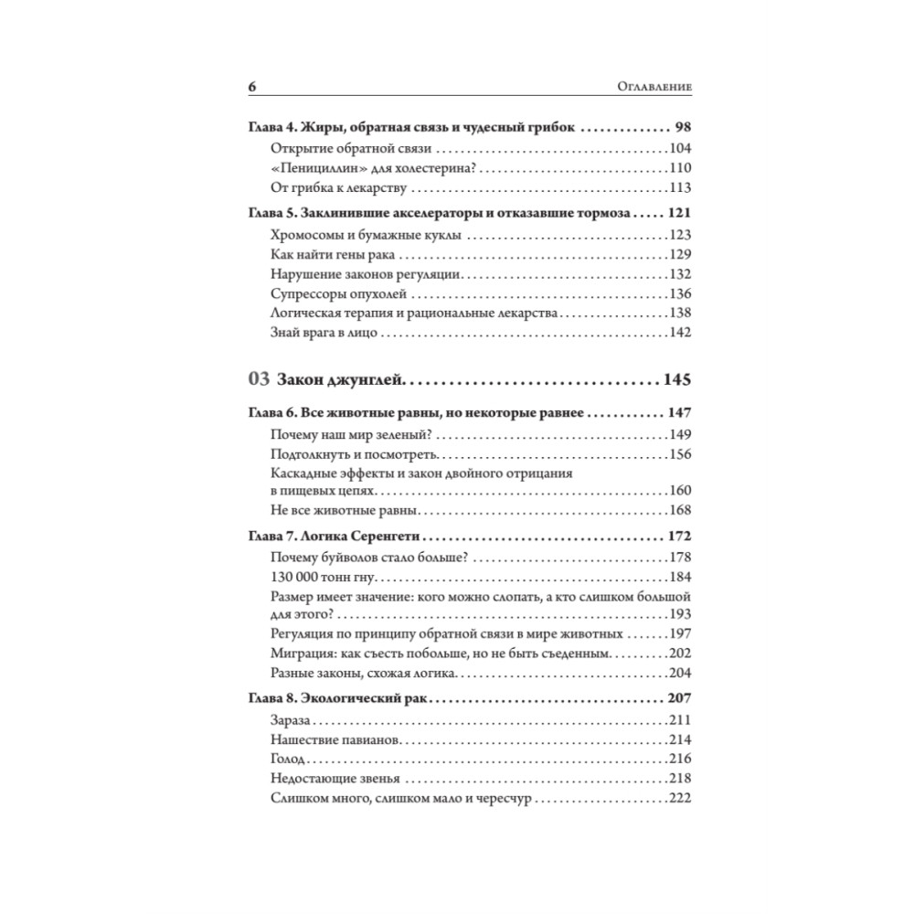 Как работает жизнь? Как природа знает сколько зебр и львов должно жить в саванне или сколько рыб должно плавать в океане? Откуда наш организм знает сколько эритроцитов должно быть в крови? Шон Кэрролл — американский биолог, ведущий специалист в области эво-дево — рассказывает нам невероятно интересную историю открытий. Сокровенные тайны природы — законы, которые управляют количеством клеток в наших телах, животных и растений в дикой природе. Самое удивительно в этих правилах то, что они похожи и подчиняются одной логике — логике жизни. Кэрролл рассказывает о том, как знания законов функционирования человеческого тела стимулировали появление лекарств и подводит нас к мысли, что настало время использовать Законы джунглей, чтобы исцелить нашу больную планету. Смелый и вдохновляющий труд одного из самых знаменитых биологов и одаренных популяризаторов науки, рассказывает про законы жизни во всех формах, проявлениях и масштабах. Прочитайте эту книгу и ваш взгляд на мир изменится.