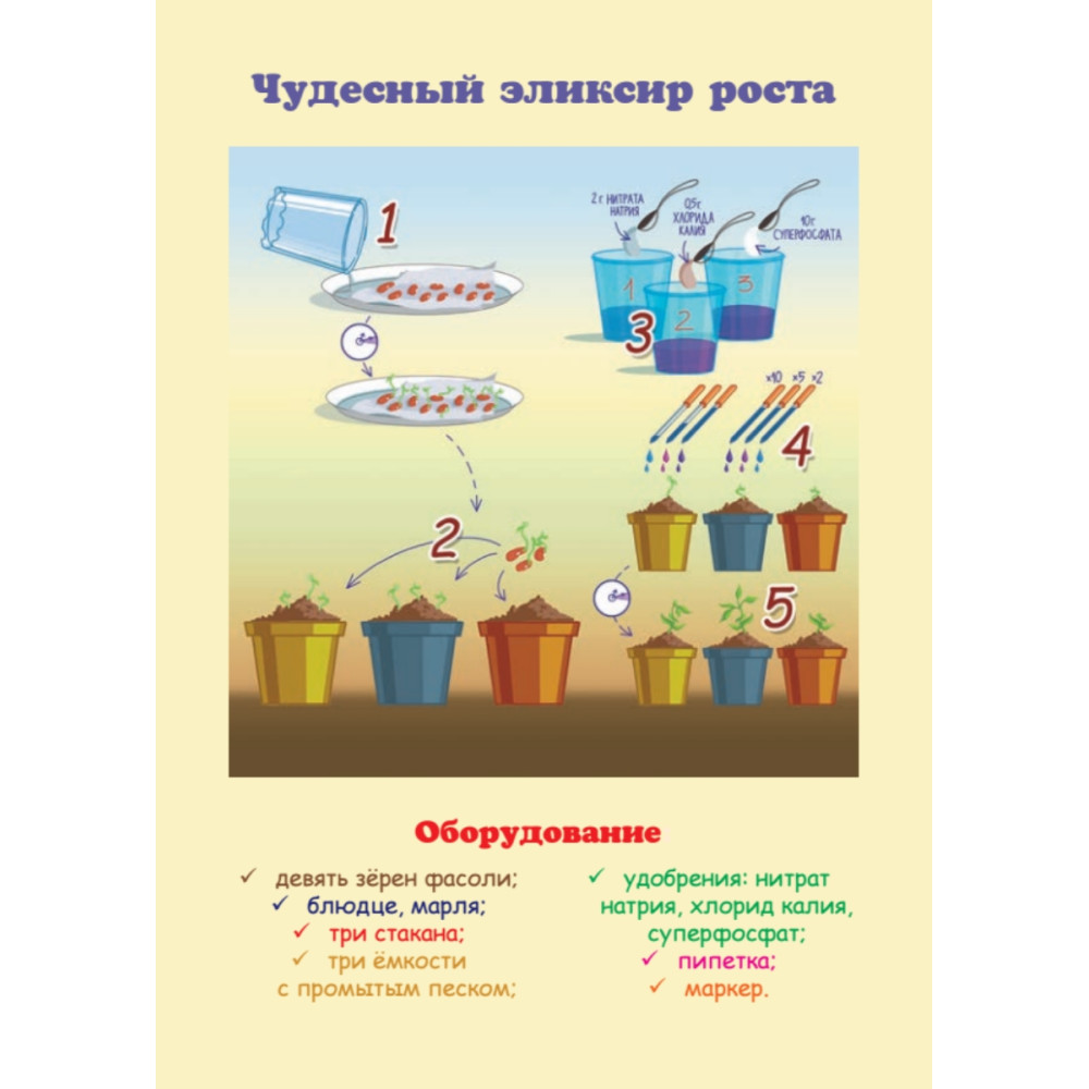 Хотите устроить дома настоящую научную лабораторию? Для этого совершенно не обязательно приобретать дорогостоящее оборудование и реактивы, достаточно будет подручного материала. В комплекте из 25 карточек представлены любопытные эксперименты по биологии, которые можно провести в домашних условиях. На каждой карточке вы найдете пошаговое описание опыта, научное объяснение и веселую иллюстрацию! Для детей дошкольного и младшего школьного возраста
