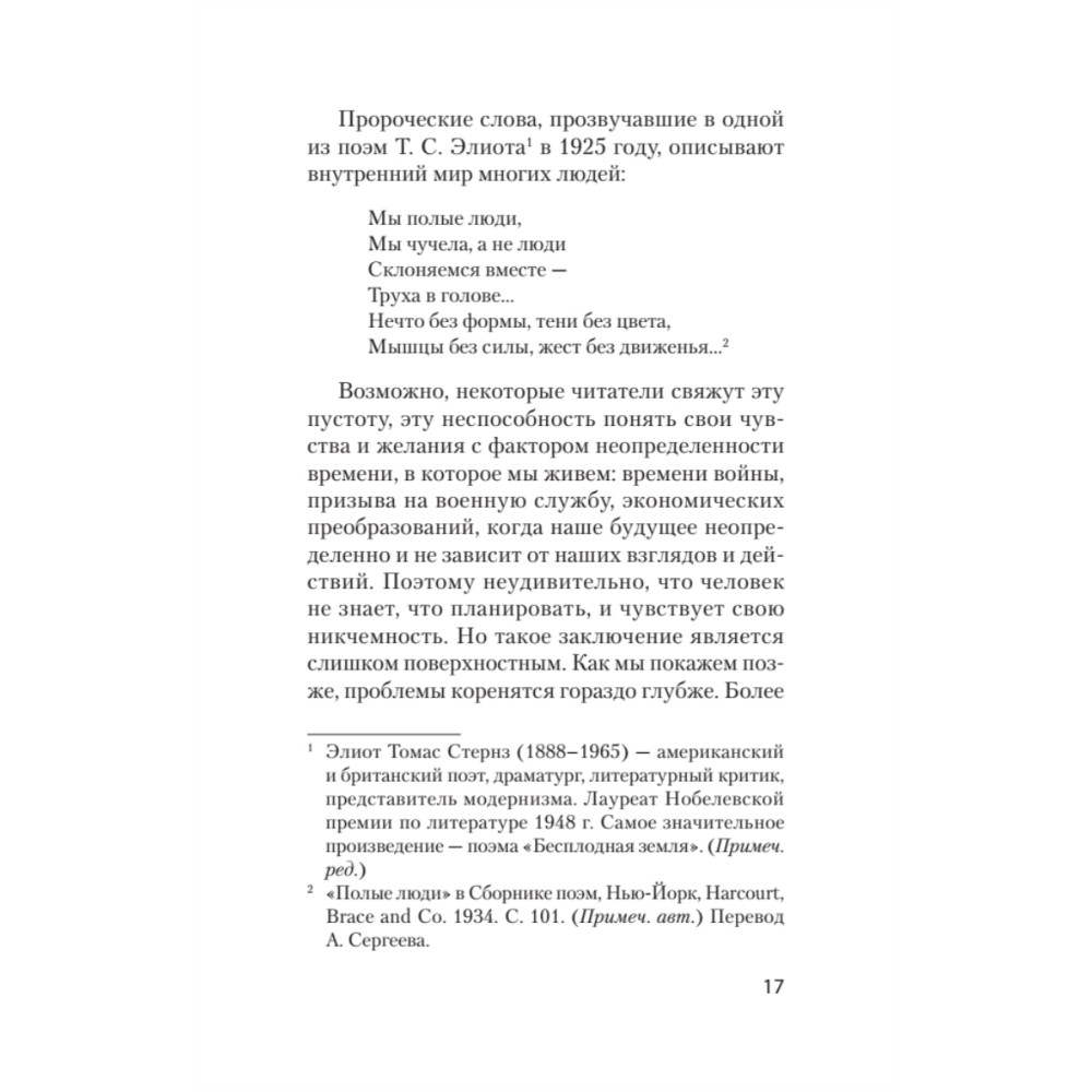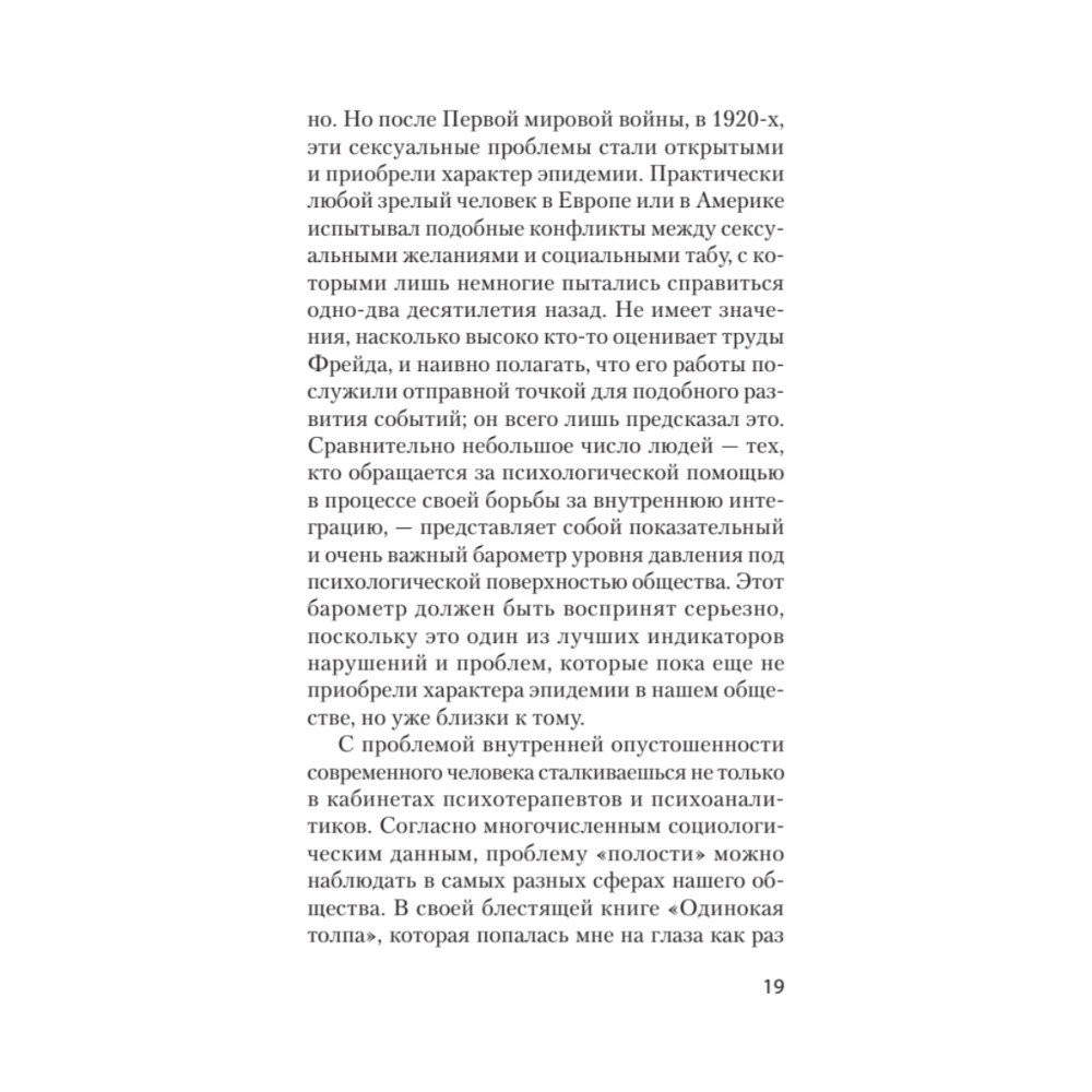 «Человек в поисках себя» – самая актуальная сегодня работа Ролло Мэя. Написанная талантливым ученым и блестящим рассказчиком, обладателем Пулитцеровской премии, человеком с невероятным опытом – художником, пастором, преподавателем Гарварда и Принстона, эта книга о том, как обрести внутреннюю гармонию и целостность в эпоху тревожных перемен, когда главными проблемами человека стали усталость, опустошенность и одиночество. Ролло Мэй дотягивается до самых глубинных пластов сознания, чтобы открыть каждому из нас путь к его подлинному "я", помочь обрести смелость и силу быть собой, творить свою жизнь по своим правилам, согласно своим смыслам, целям и желаниям.