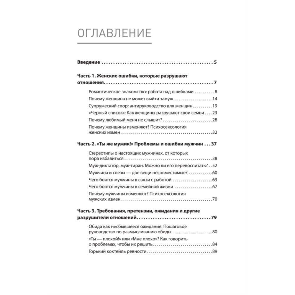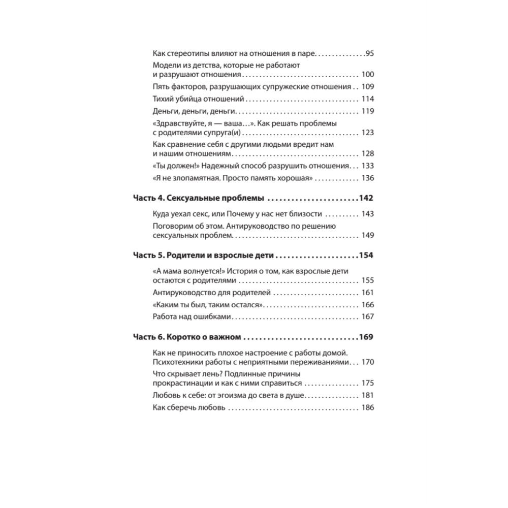 Ты опять не помыл посуду? Когда ты начнешь нормально зарабатывать? Когда ты прекратишь болтать с подружками? Супруги ежедневно обмениваются претензиями, но это только портит их союз. В этой книге рассказывается о самых серьезных проблемах, из-за которых разрушаются отношения, о причинах конфликтов, непонимания и ссор, о тех ошибках, которые мы совершаем чаще всего, и, конечно, о том, как их не совершать. Прочитав эту книгу, вы сможете самостоятельно анализировать трудности в общении и в дальнейшем обходить их.